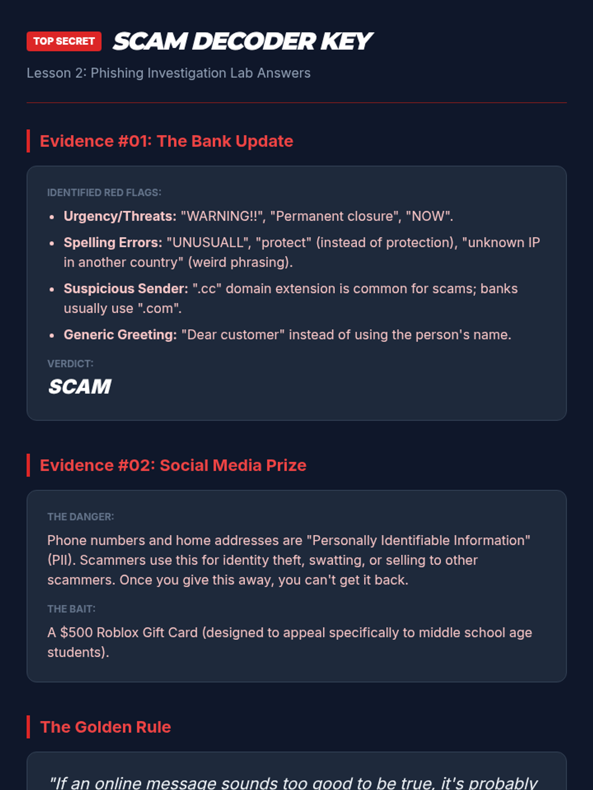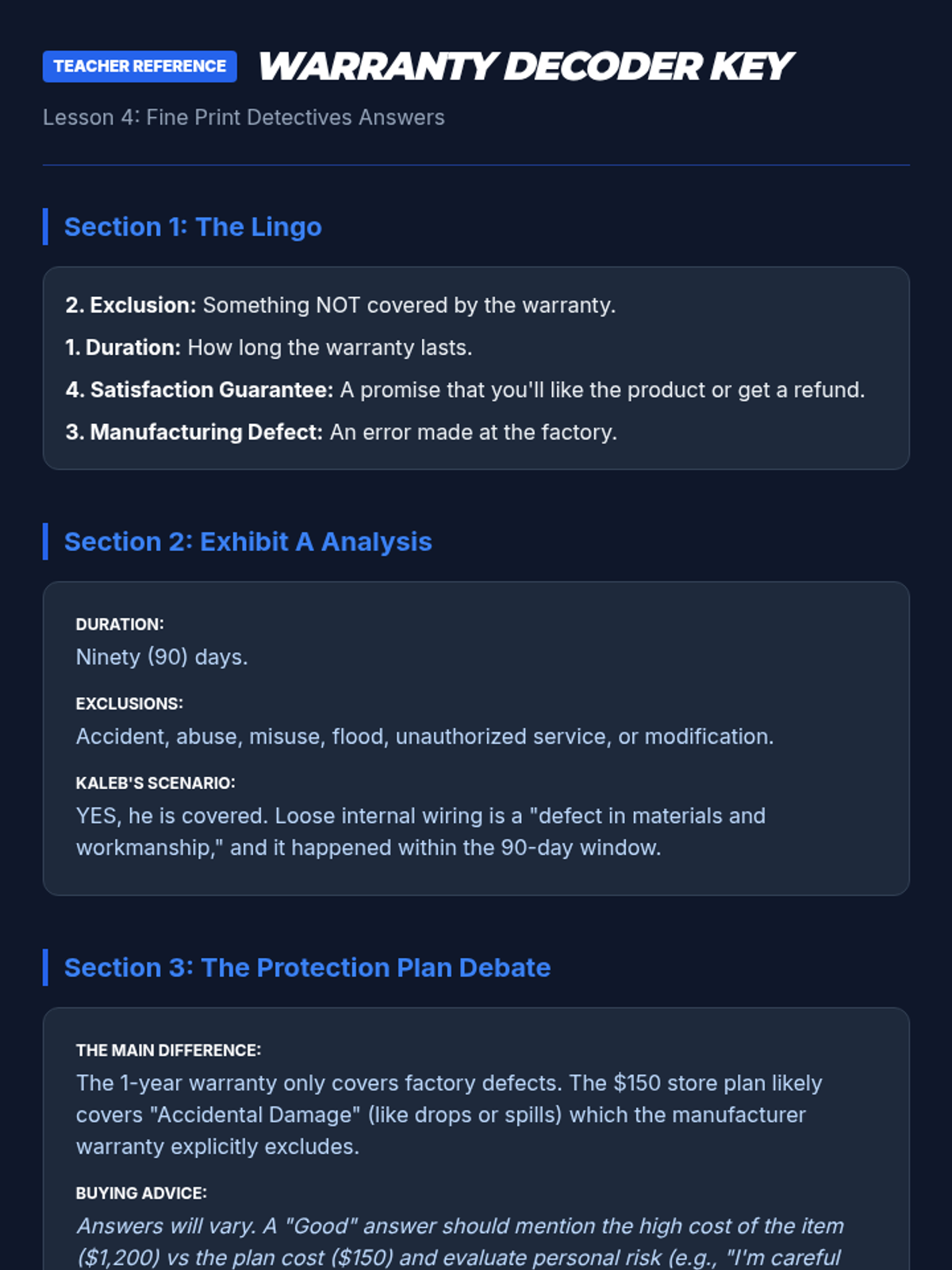A comprehensive financial literacy sequence for 6th graders focused on consumer protection. Students learn about their rights, how to identify online scams and phishing, the importance of data privacy, how to interpret warranties, and the professional way to resolve consumer complaints.