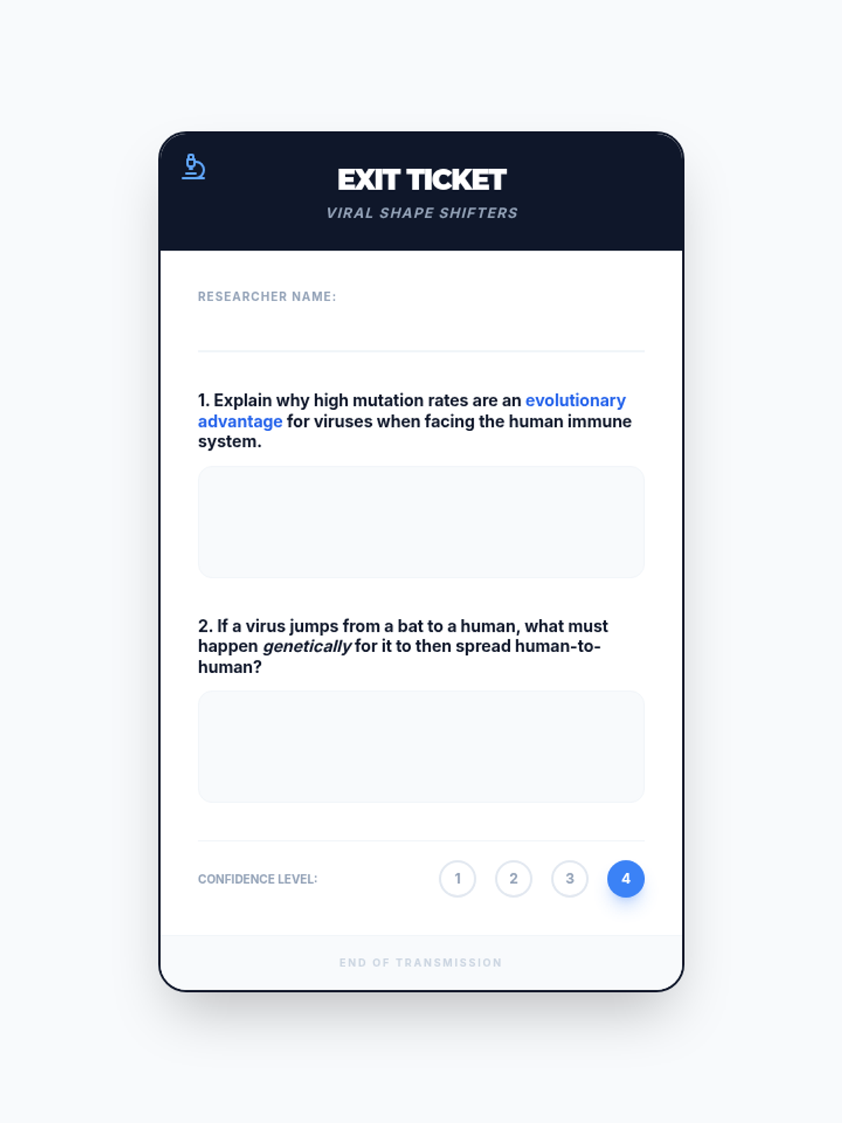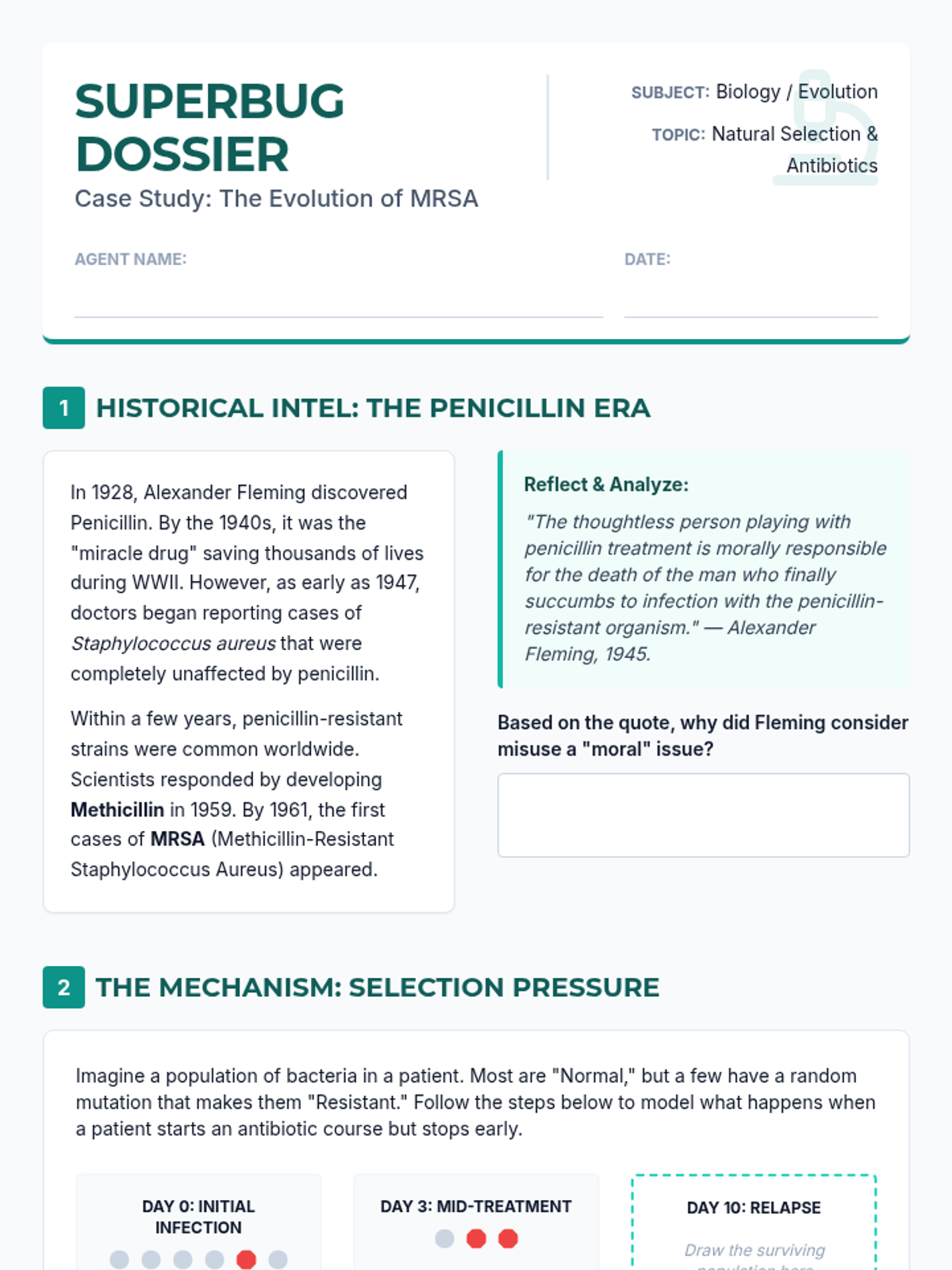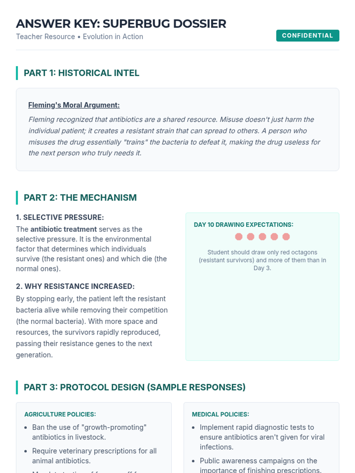 A high school biology sequence exploring evolution as a dynamic, ongoing process. Students investigate antibiotic resistance, coevolutionary arms races, viral mutation, artificial selection, and the ethical implications of CRISPR and gene editing.