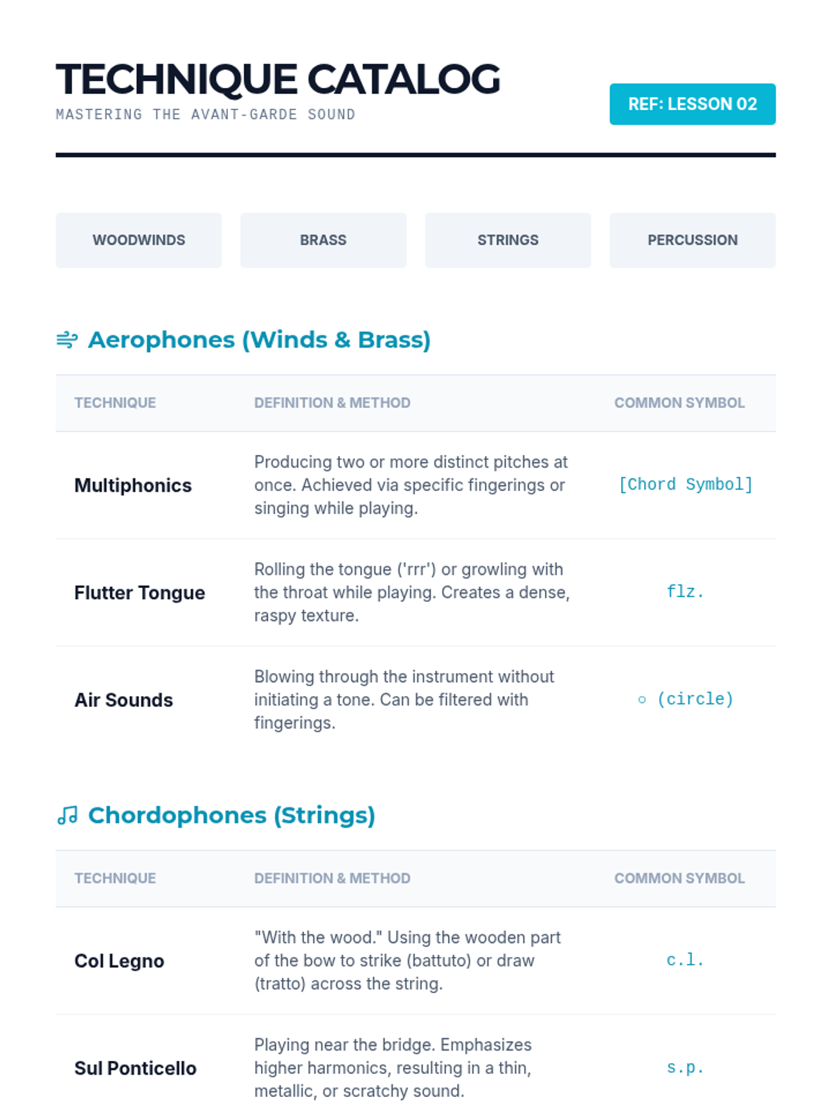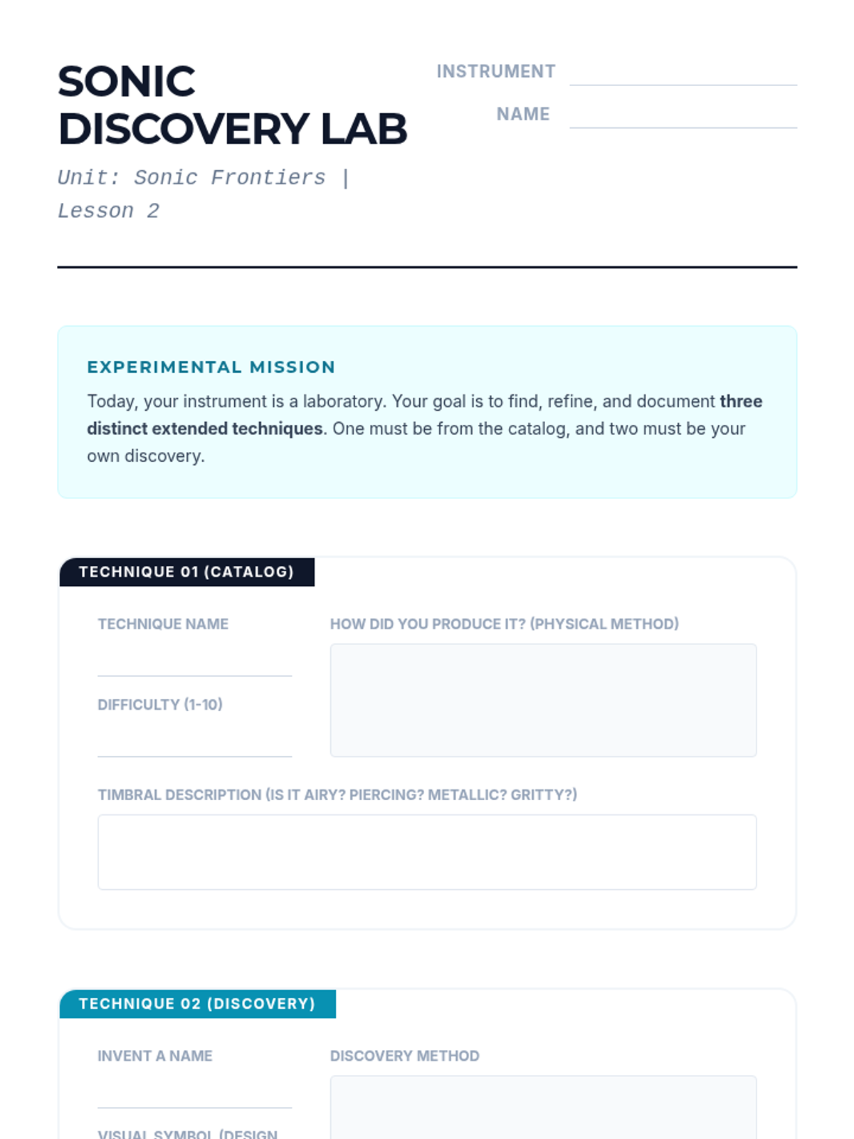 Students explore the evolution of instrumental music into the 20th and 21st centuries, focusing on non-traditional notation and extended techniques. The sequence covers major movements like serialism and minimalism, practical workshops on multiphonics and percussive effects, and project-based work with graphic scores.