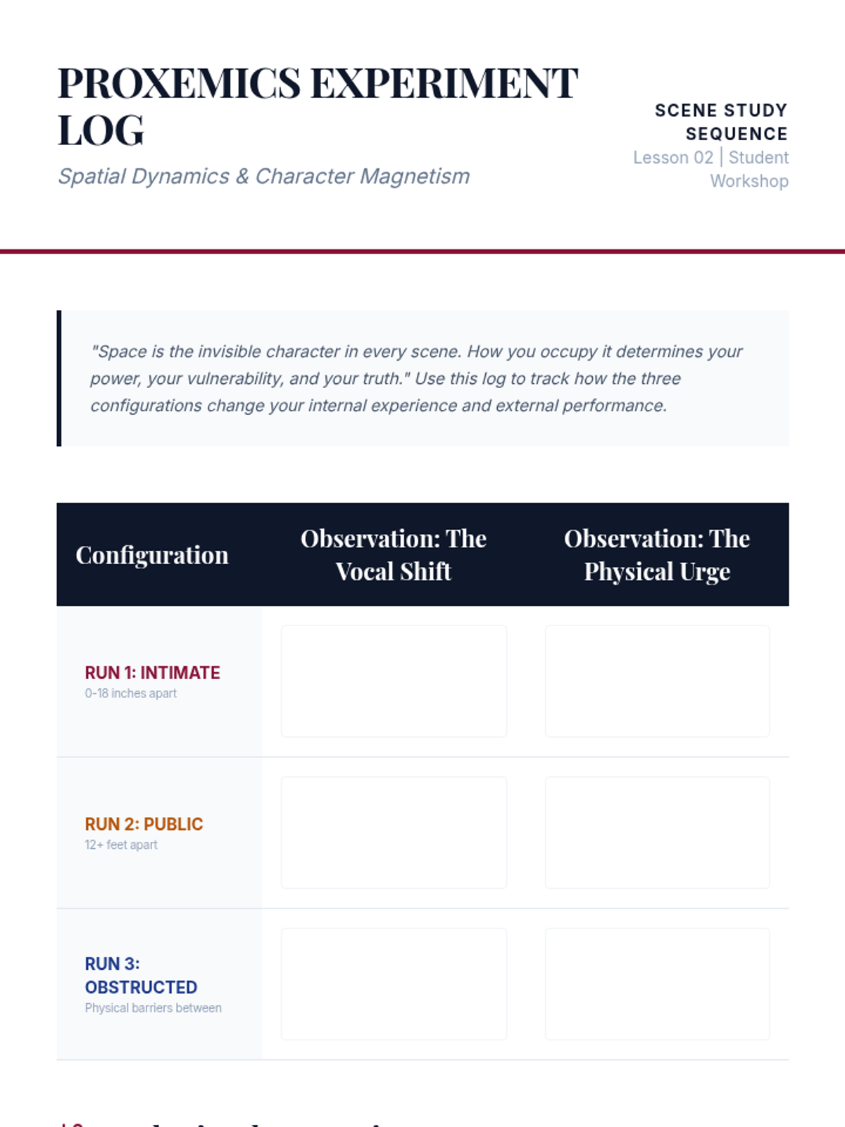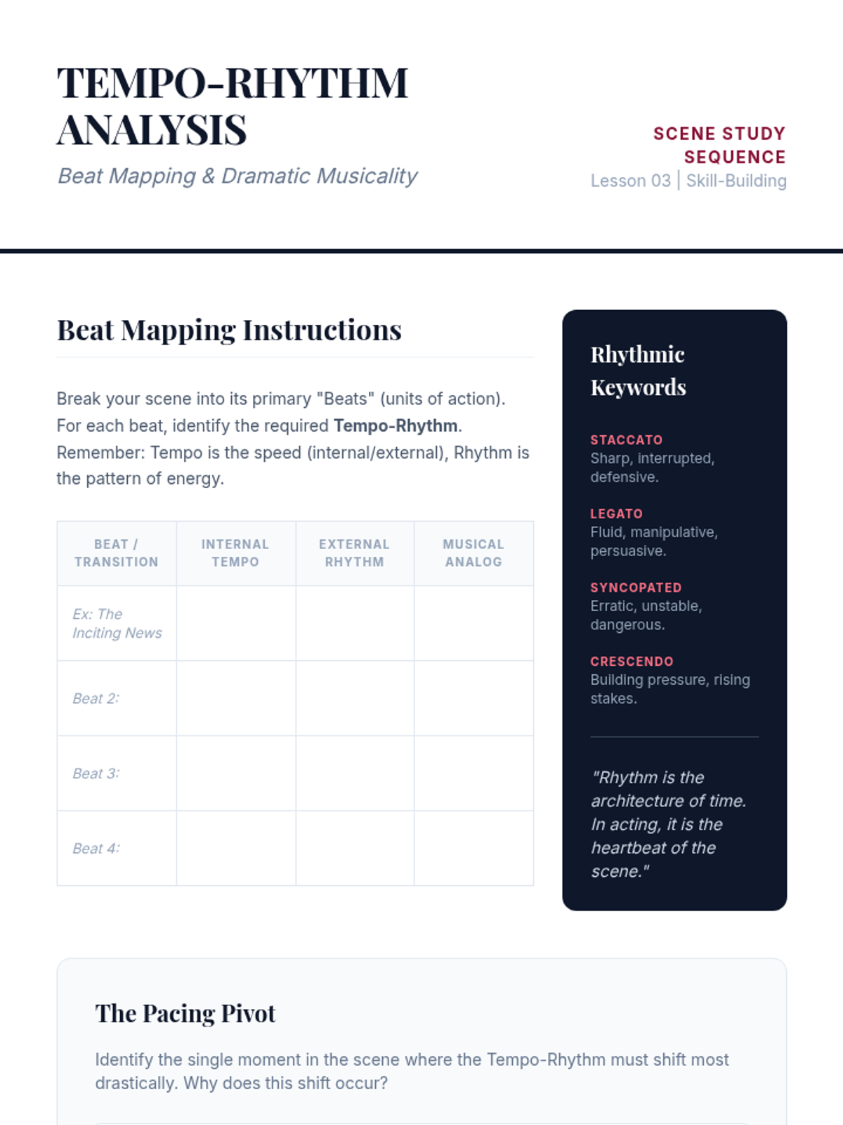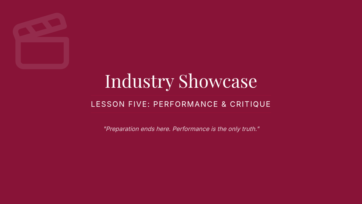 A graduate-level sequence focused on the professional rehearsal process, synthesizing character analysis, physical blocking, and rhythmic precision into a showcase-ready contemporary scene. Students move from deep textual analysis to technical mastery and industry-style critique.