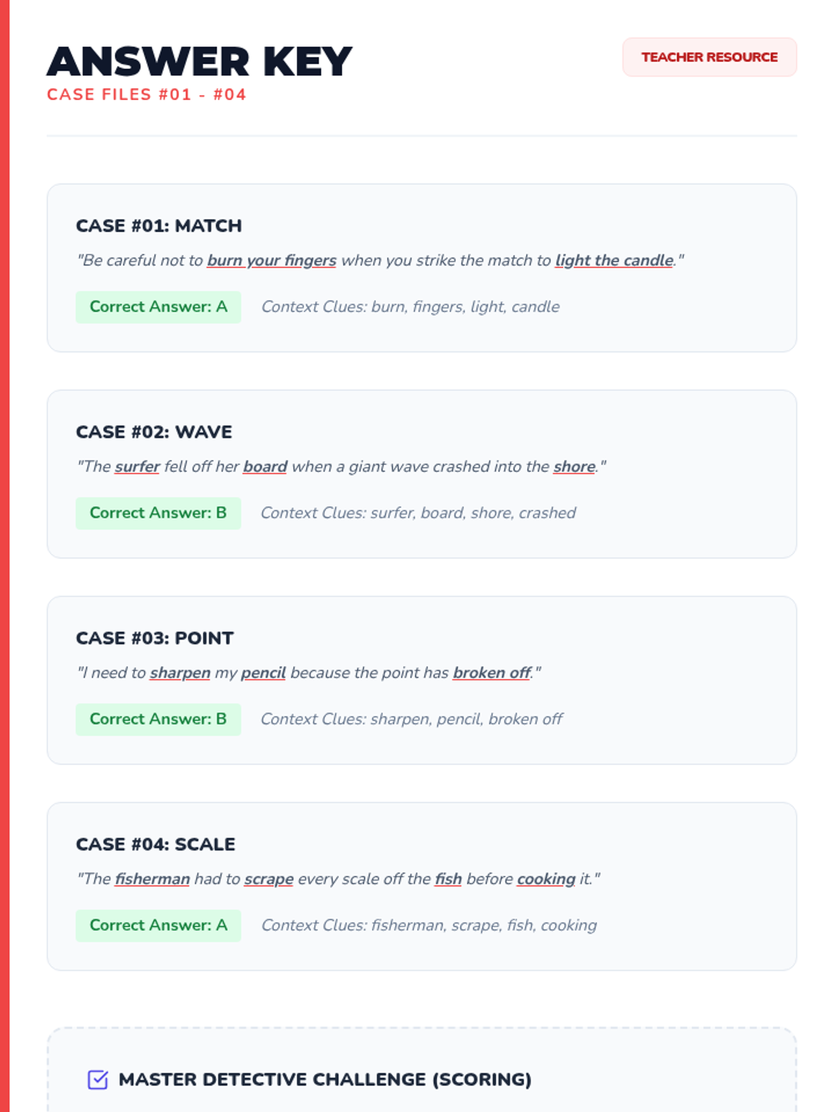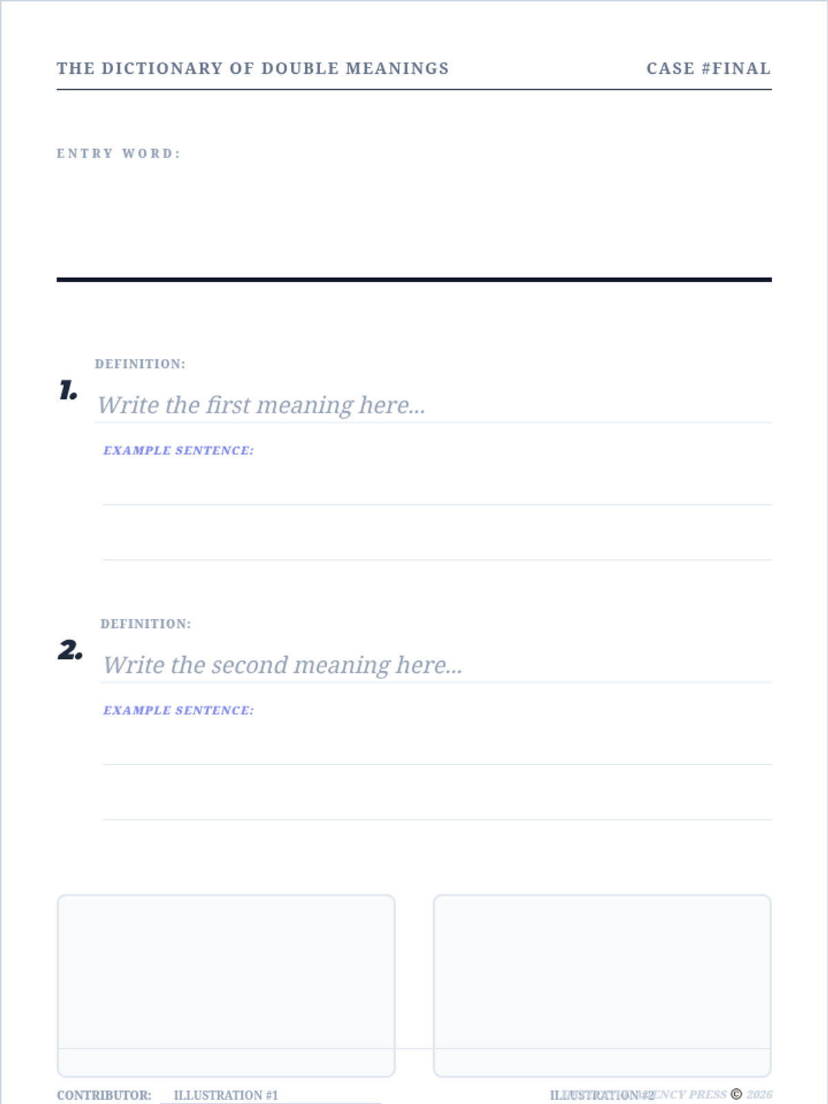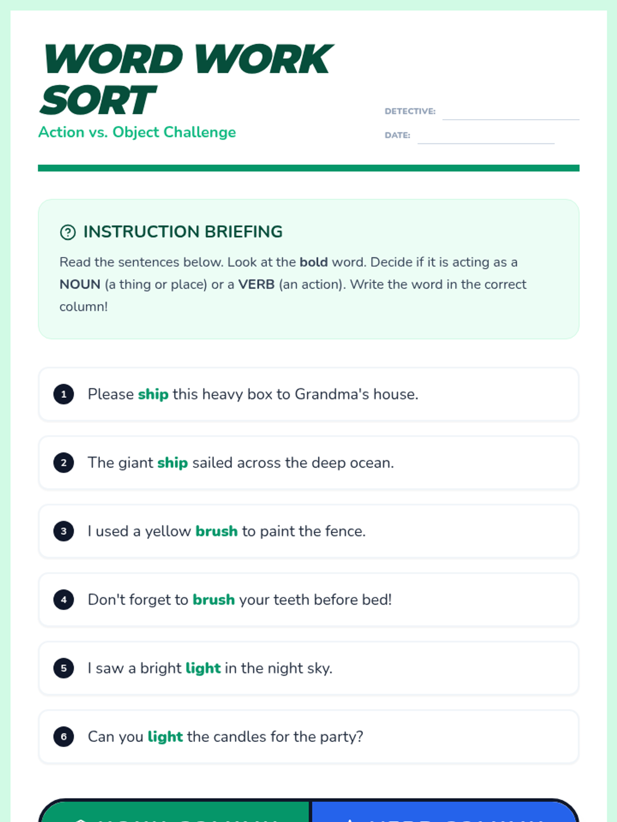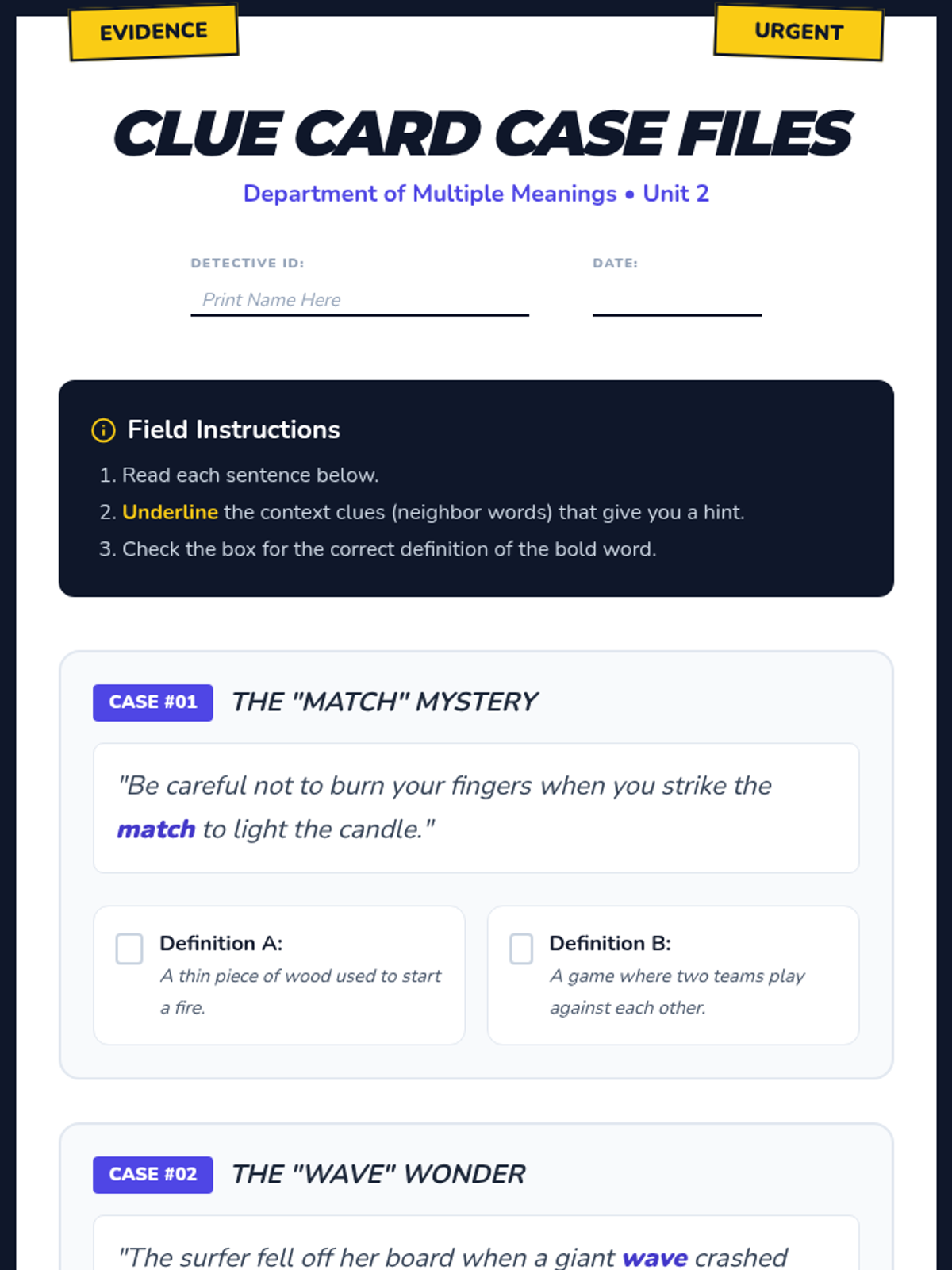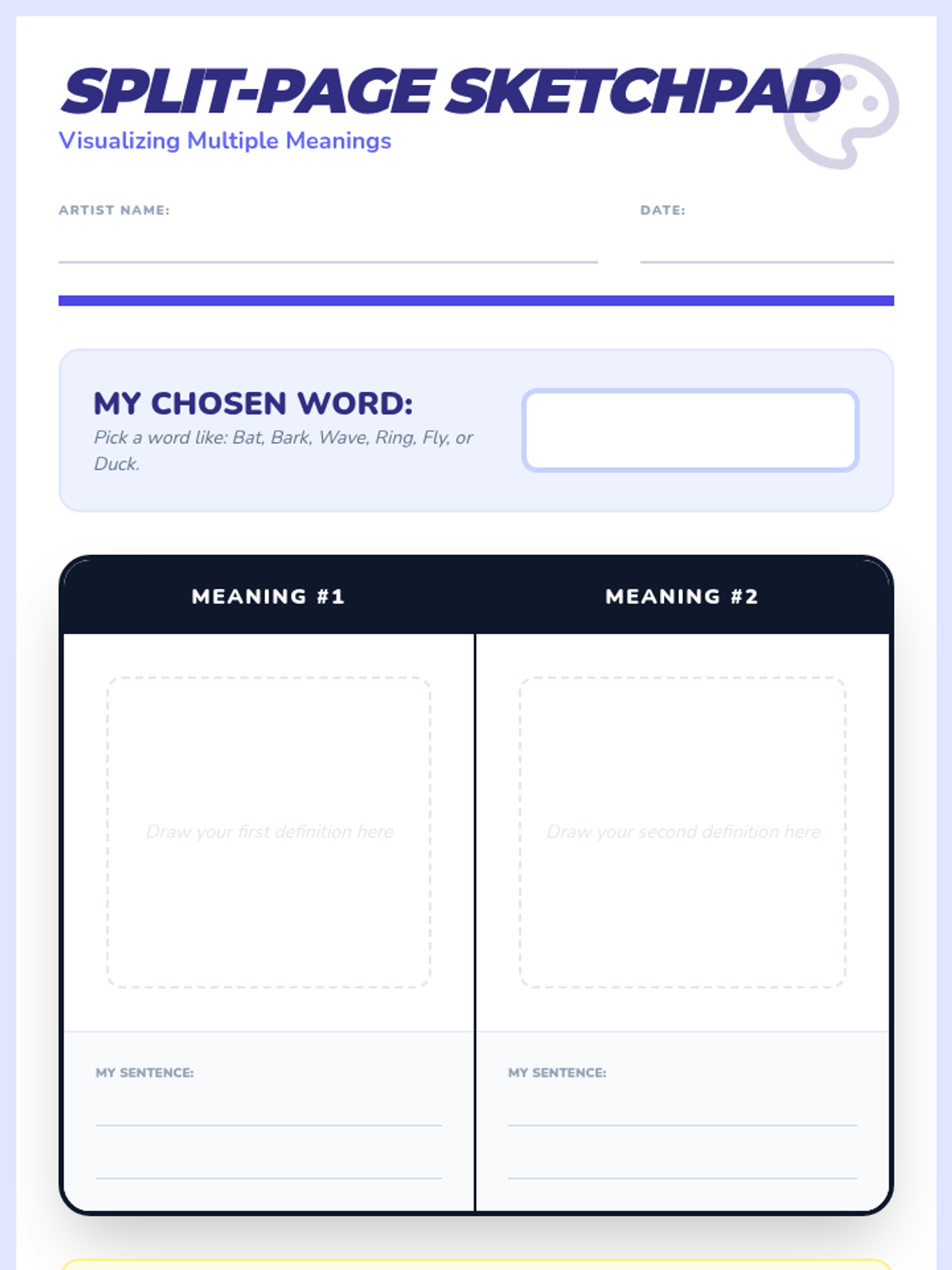This sequence explores multiple-meaning words (homonyms) to strengthen reading comprehension and vocabulary flexibility. Students adopt the role of 'word detectives' to investigate how a single word like 'bat' or 'bark' can represent entirely different things depending on the sentence.