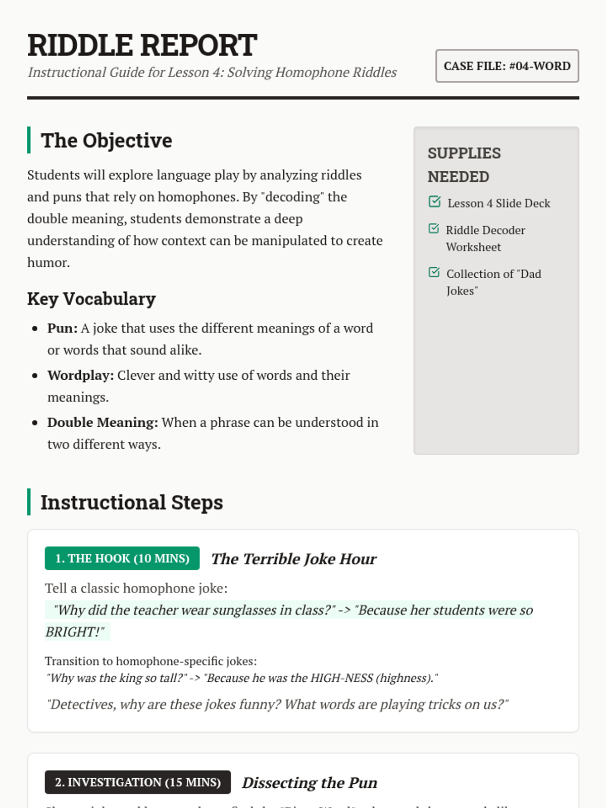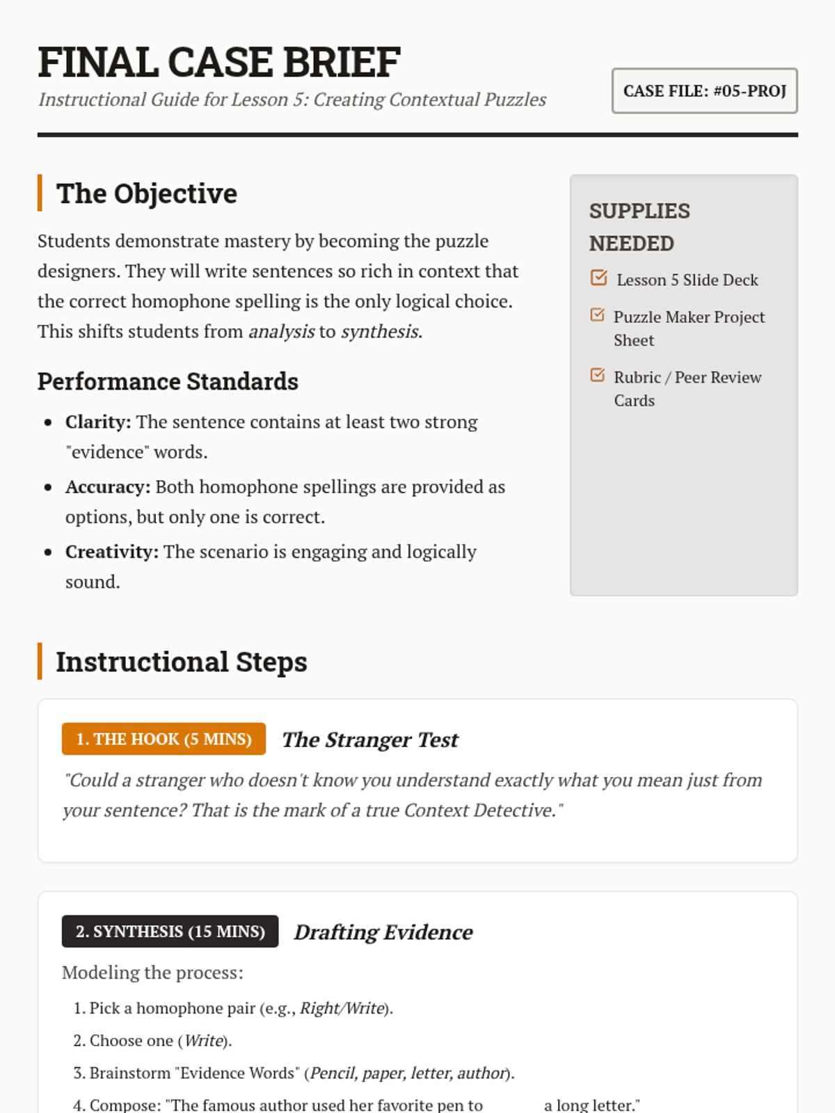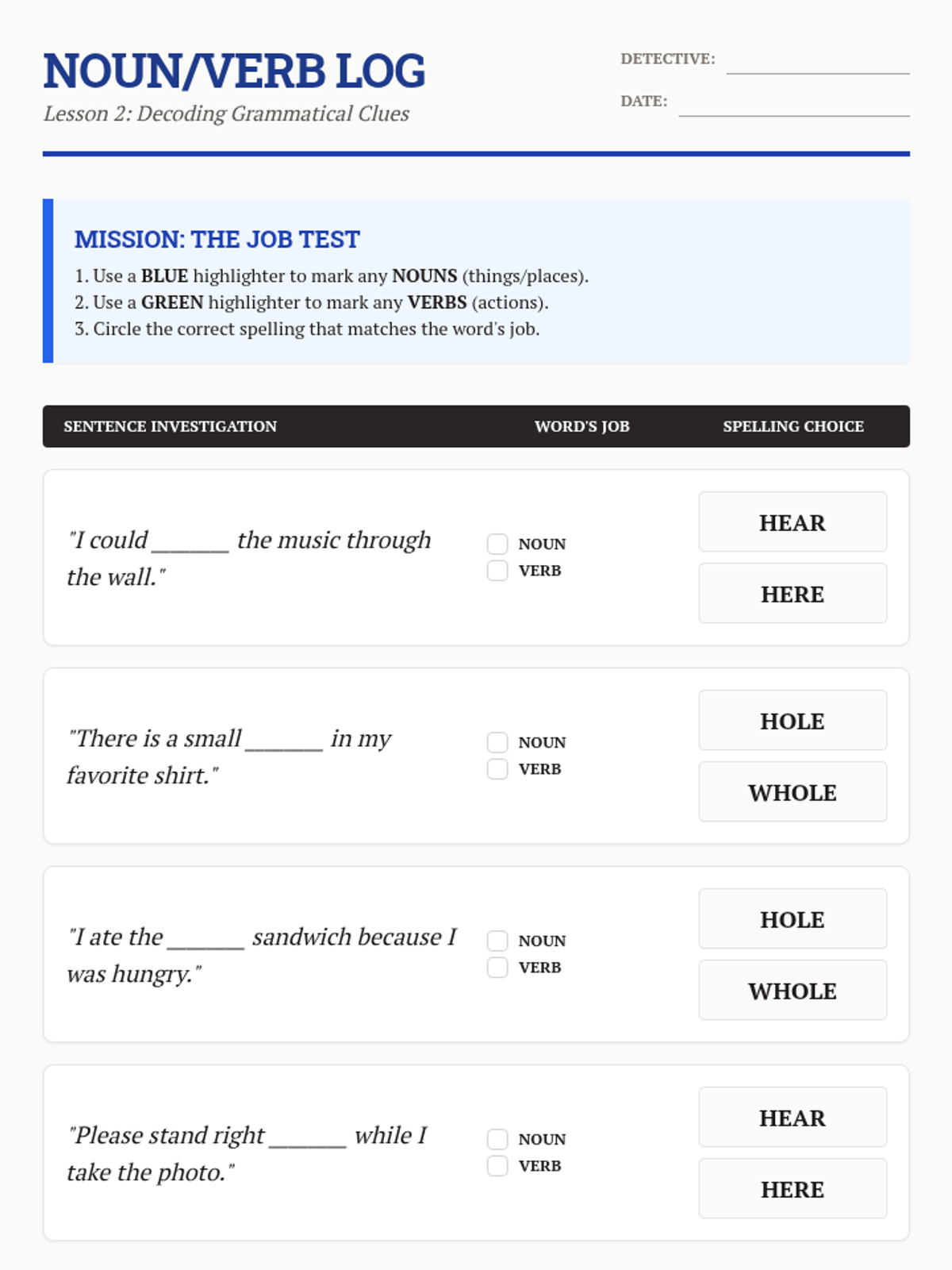 A 4th Grade ELA sequence where students become 'Context Detectives' to master homophones. Instead of rote memorization, students use contextual evidence and grammatical clues to solve linguistic puzzles and create their own wordplay.