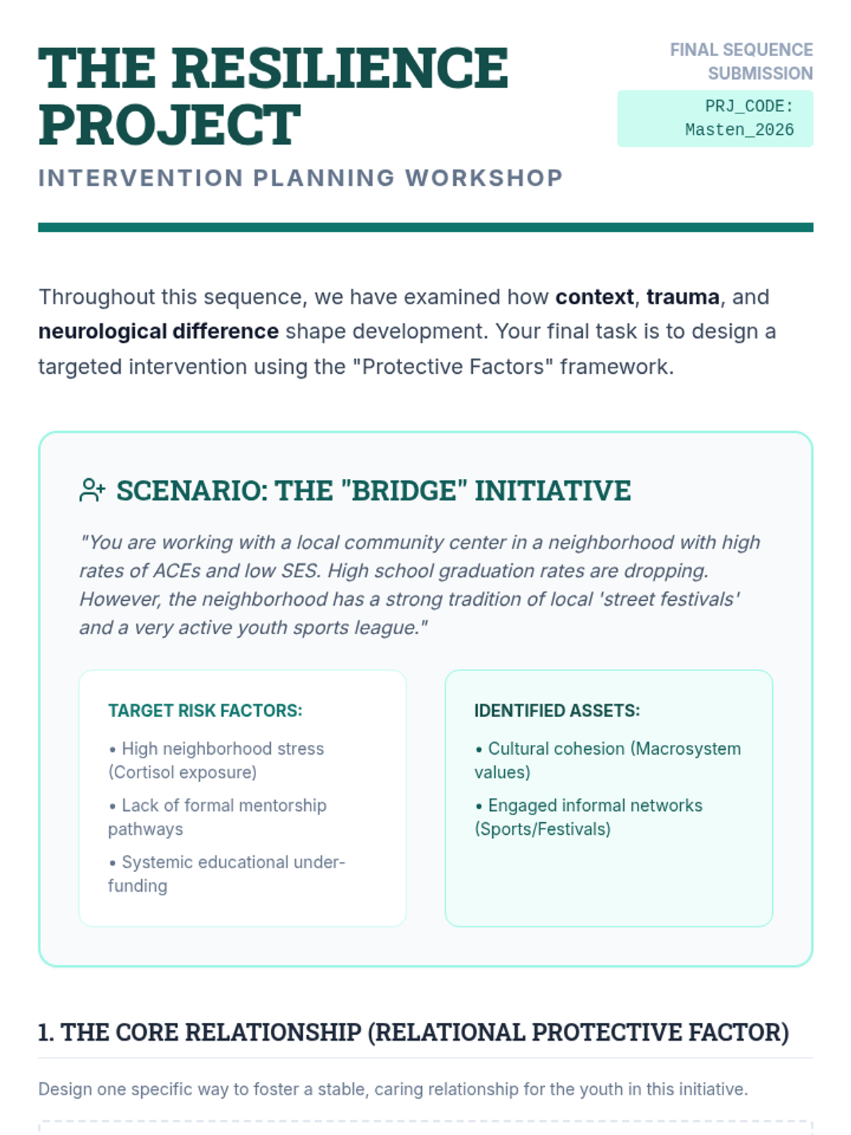 An undergraduate-level sequence exploring the systemic, socioeconomic, and neurobiological factors that influence childhood development, utilizing the Bronfenbrenner framework and a strengths-based neurodiversity model.