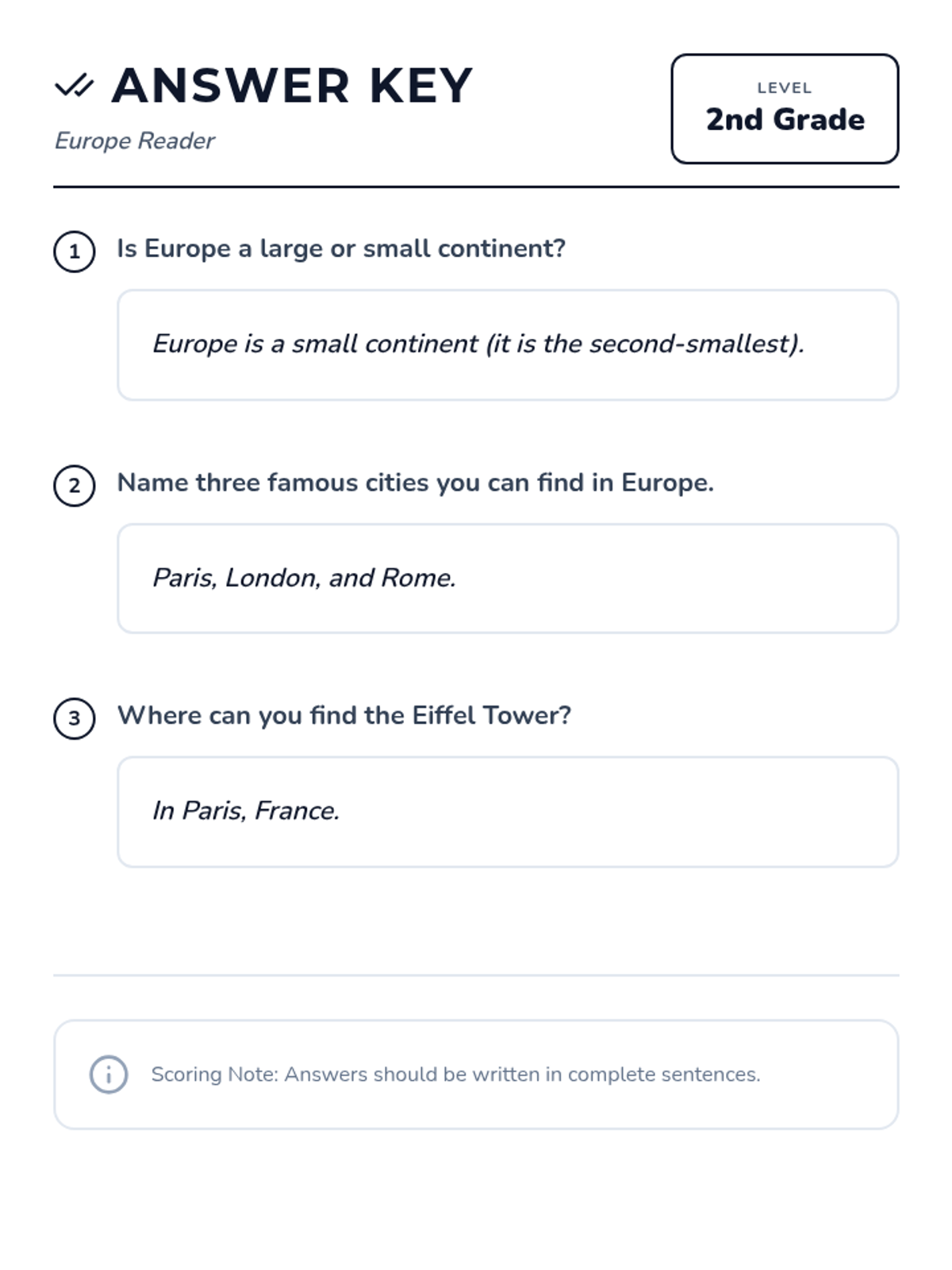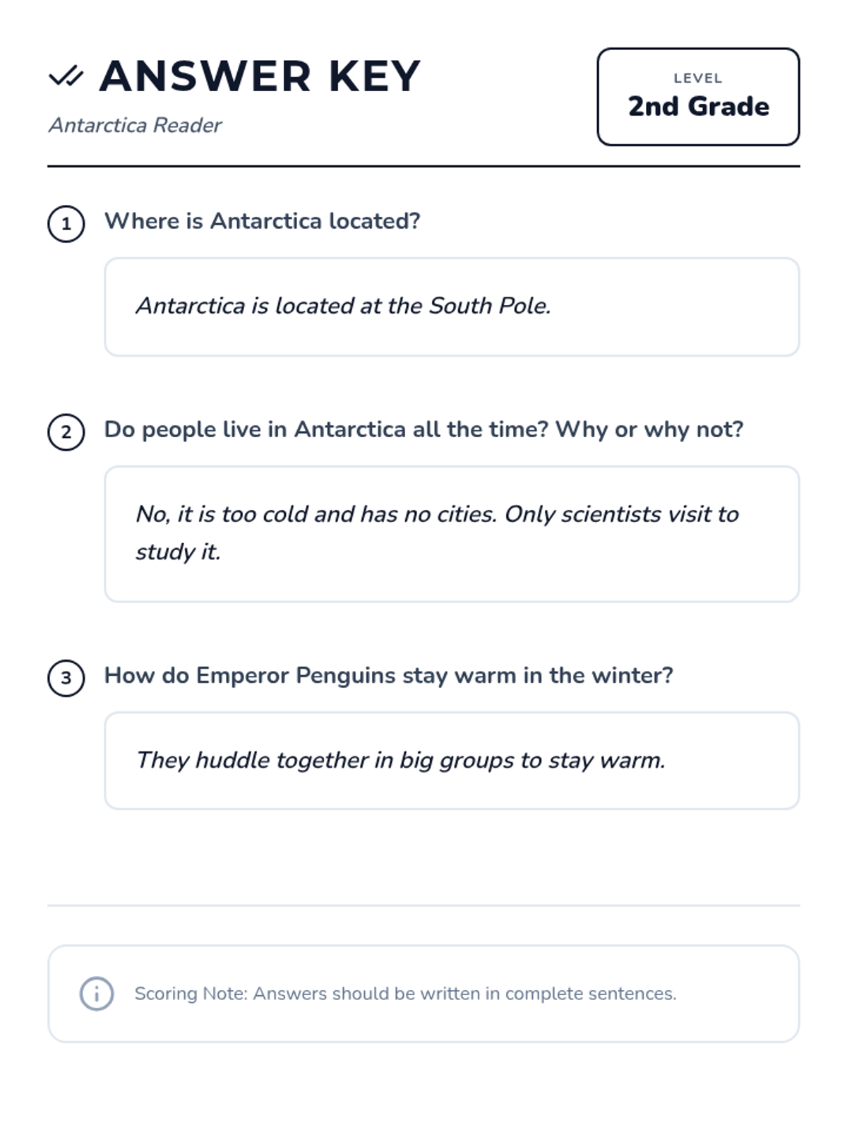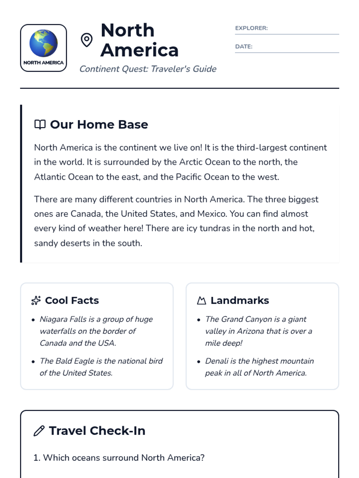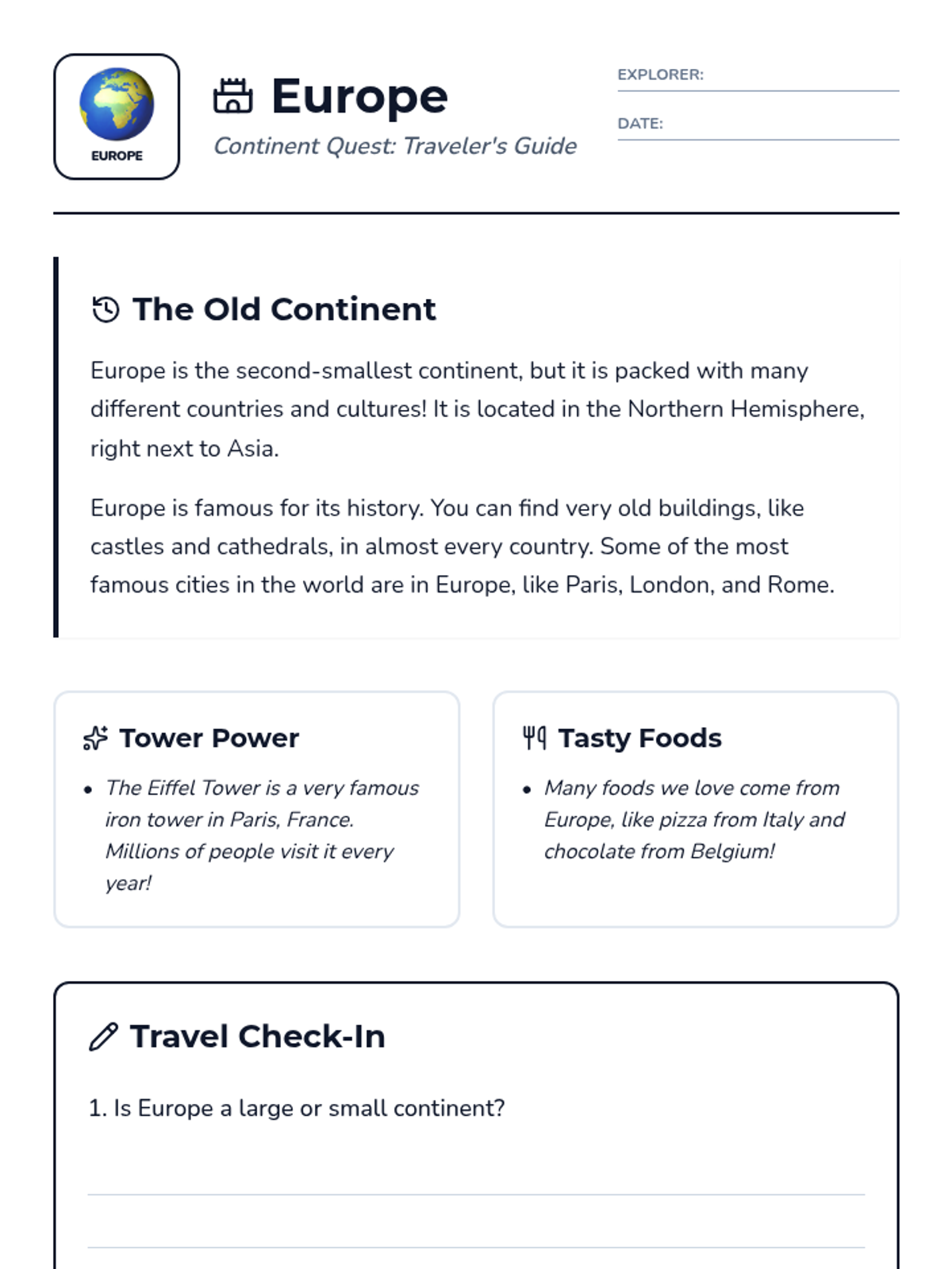 A comprehensive series of reading and comprehension activities covering each of the seven continents, designed for second-grade students to build global awareness.