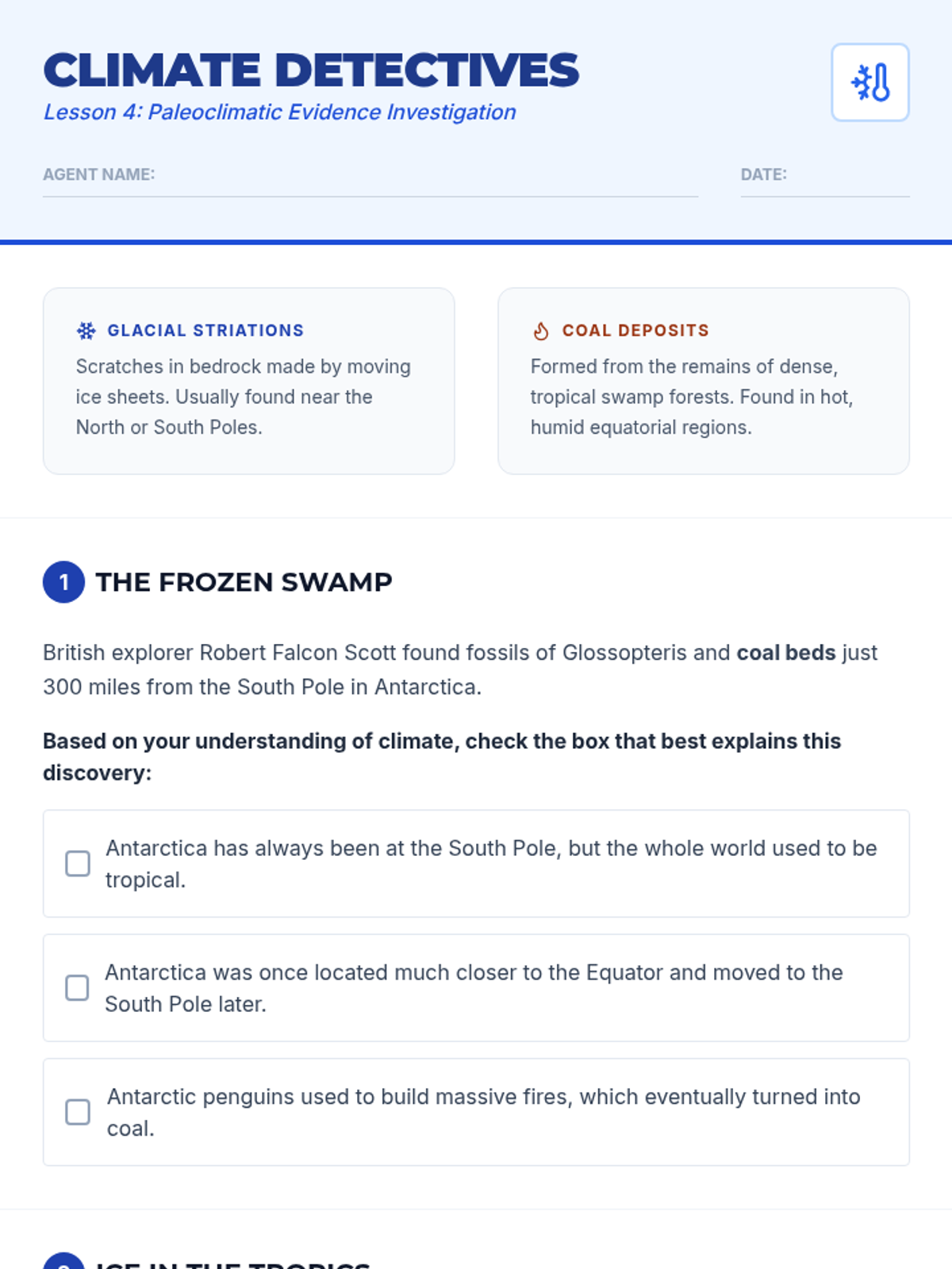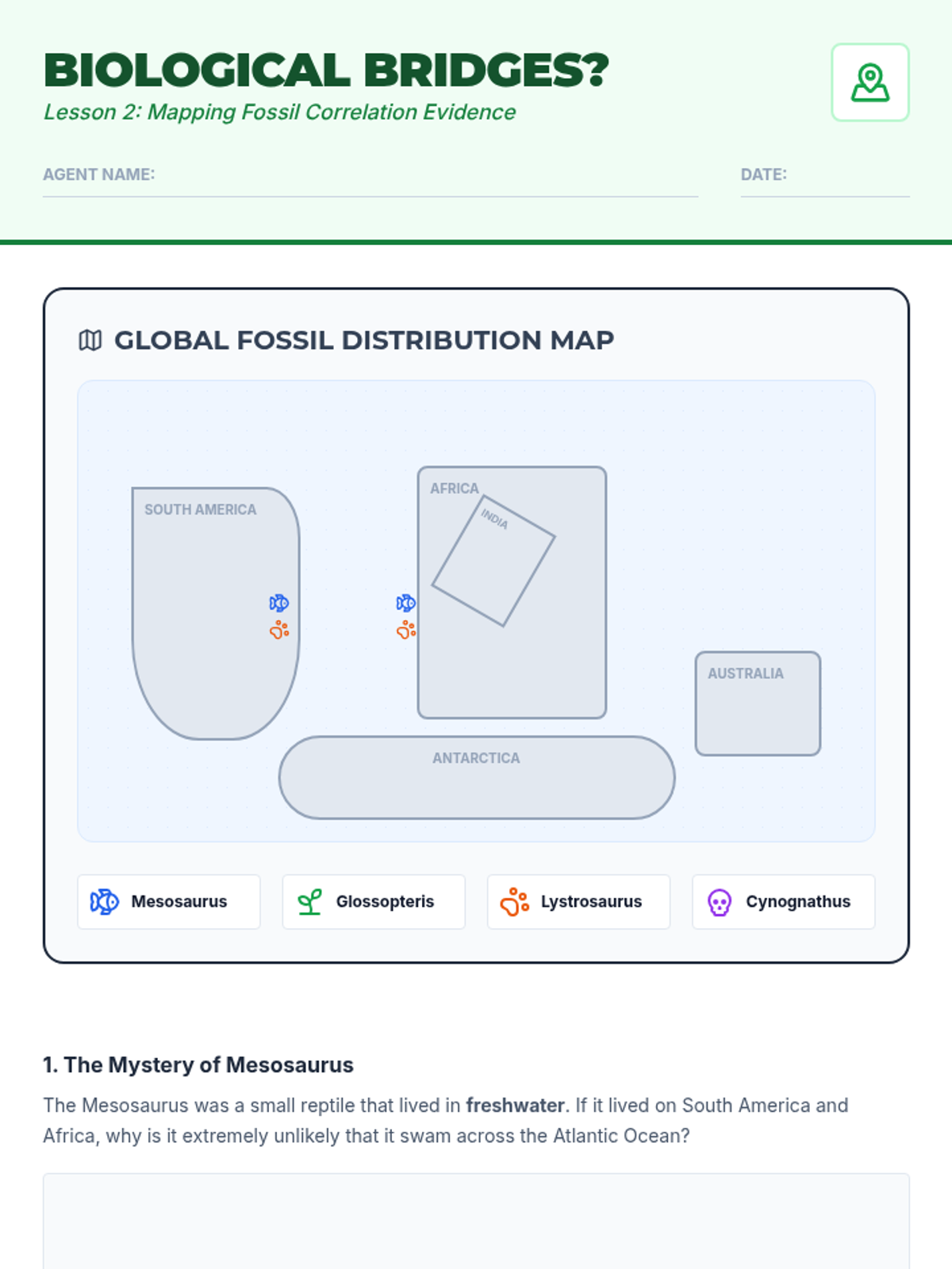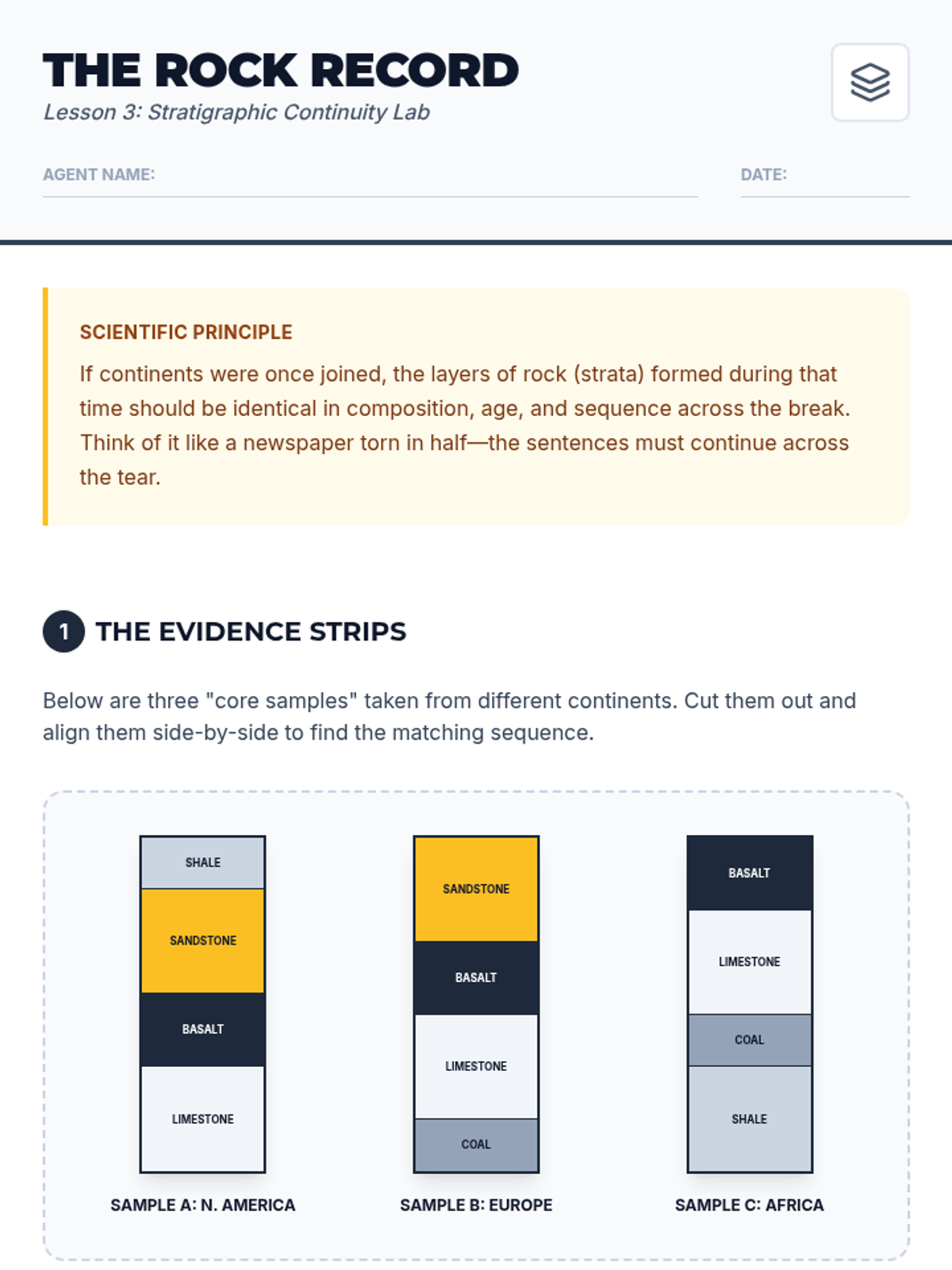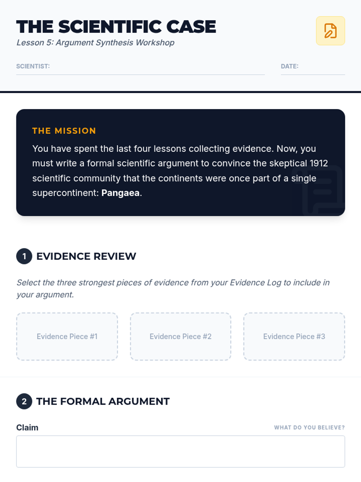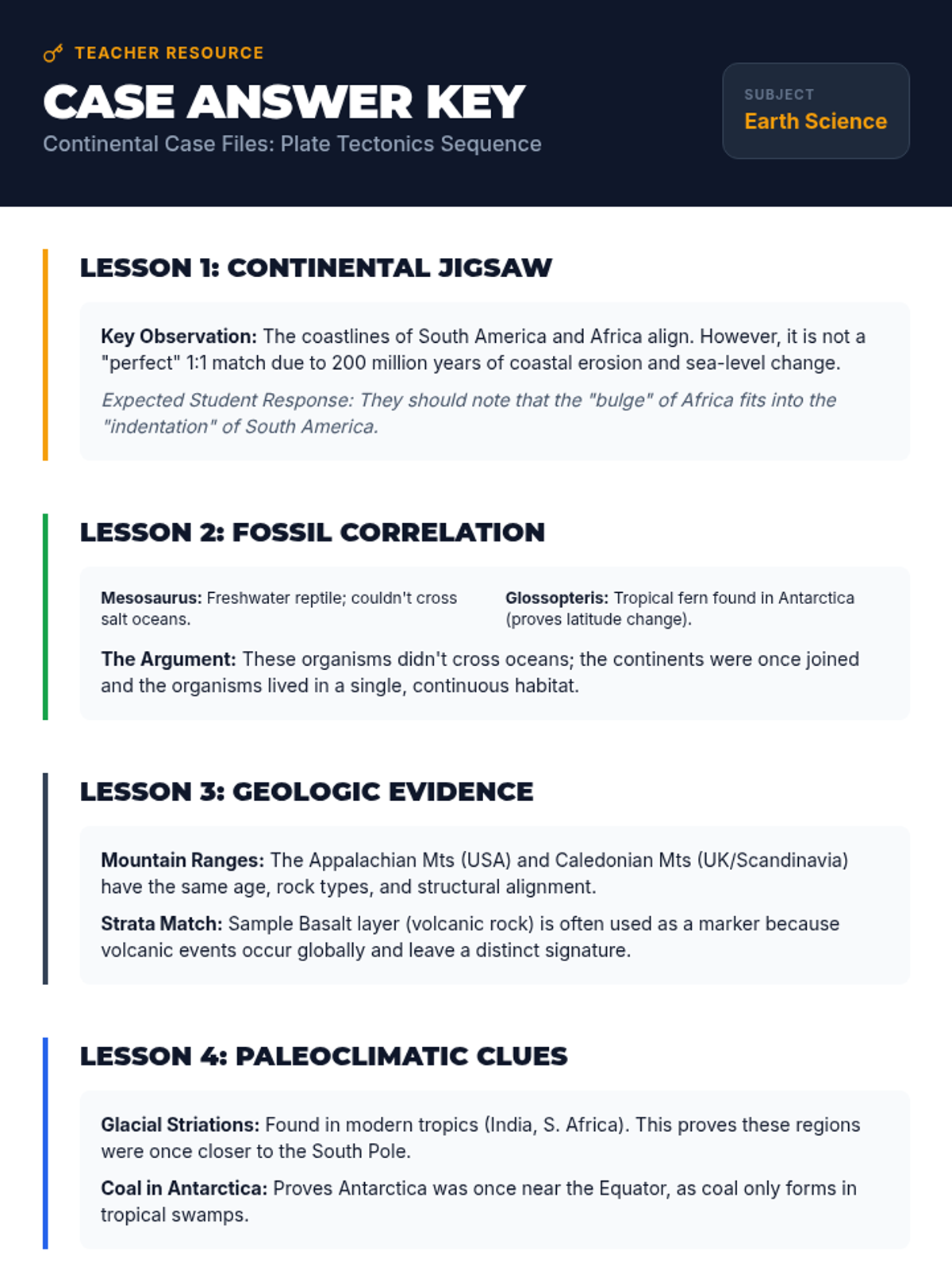 A multi-day inquiry-driven investigation where students act as scientific detectives, layering evidence from geometry, fossils, geology, and paleoclimatology to reconstruct the supercontinent Pangaea and evaluate the theory of Continental Drift.