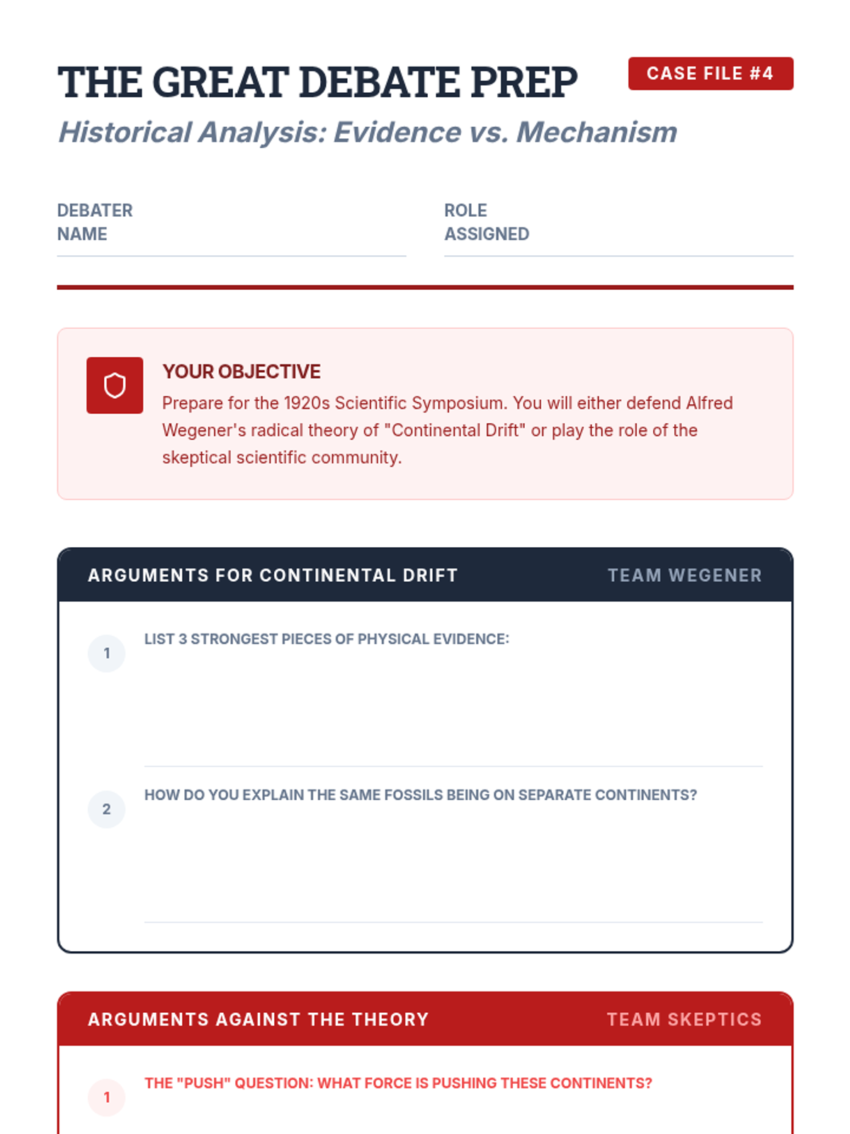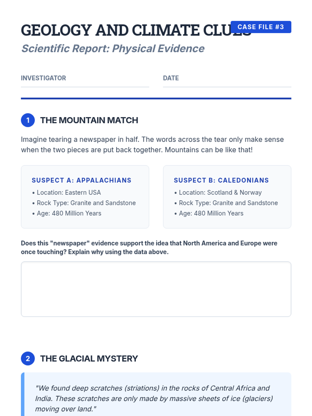 A 5-lesson inquiry-based sequence where students act as scientific detectives to evaluate the evidence for Alfred Wegener's theory of Continental Drift, culminating in a synthesis of fossil, geological, and climatic data.