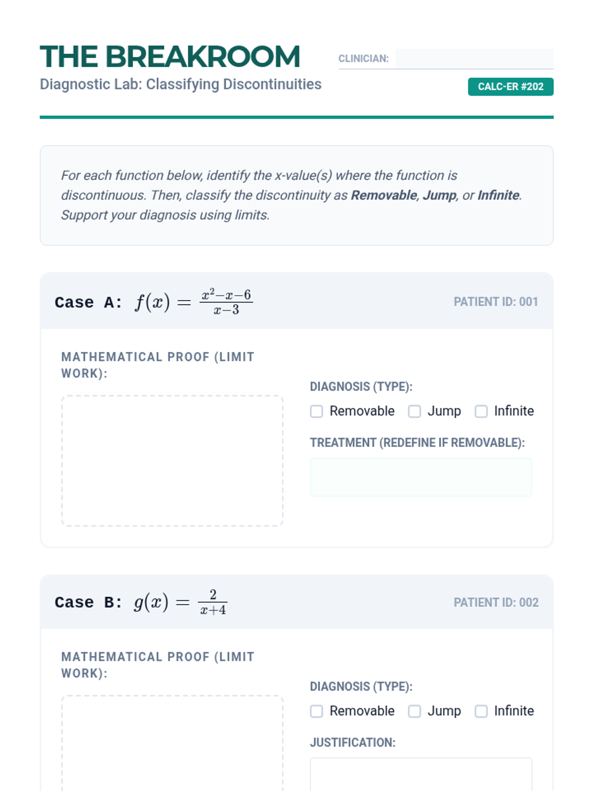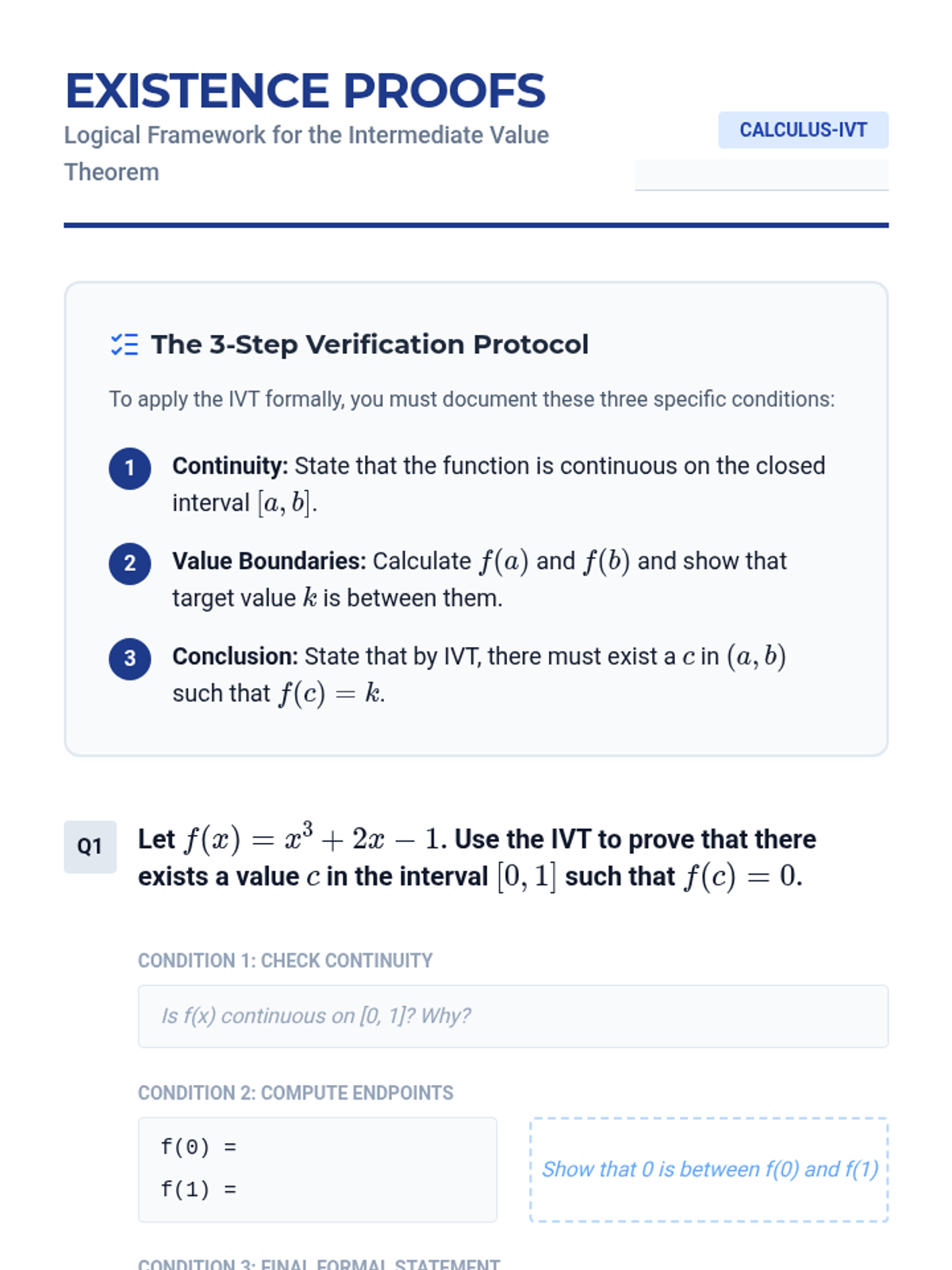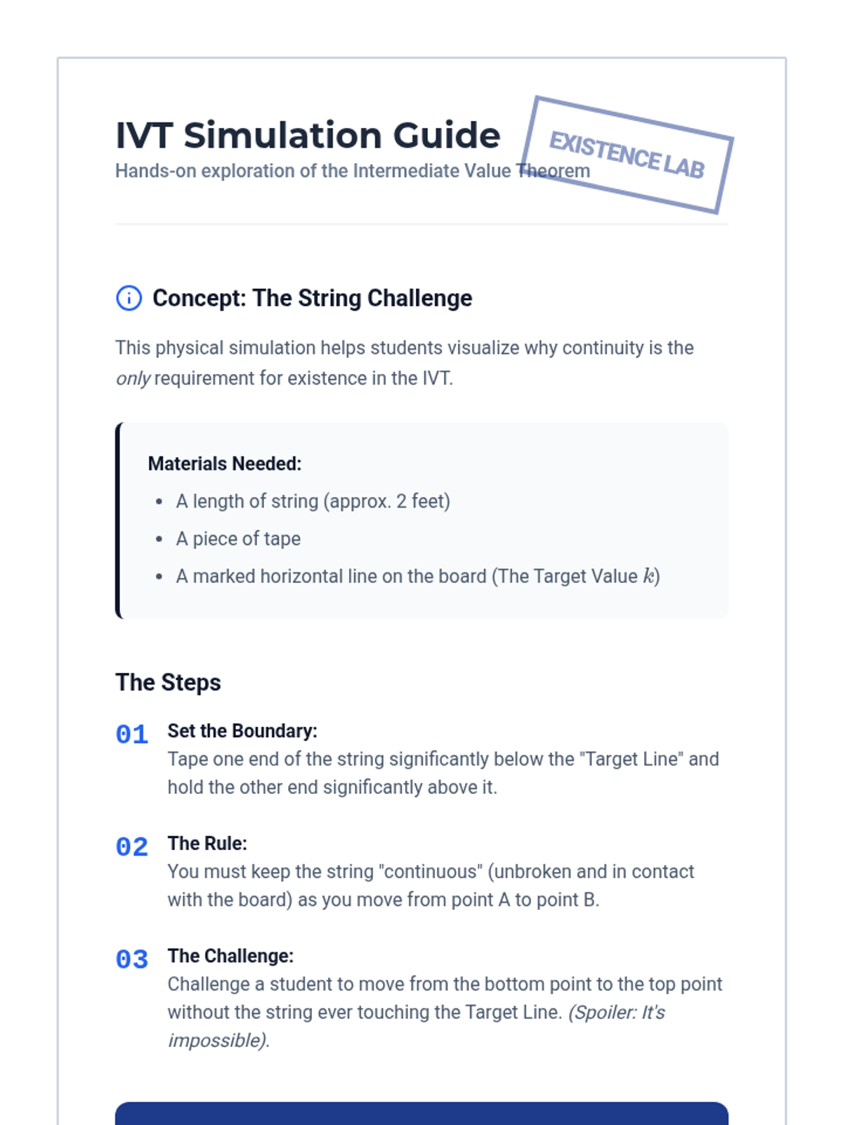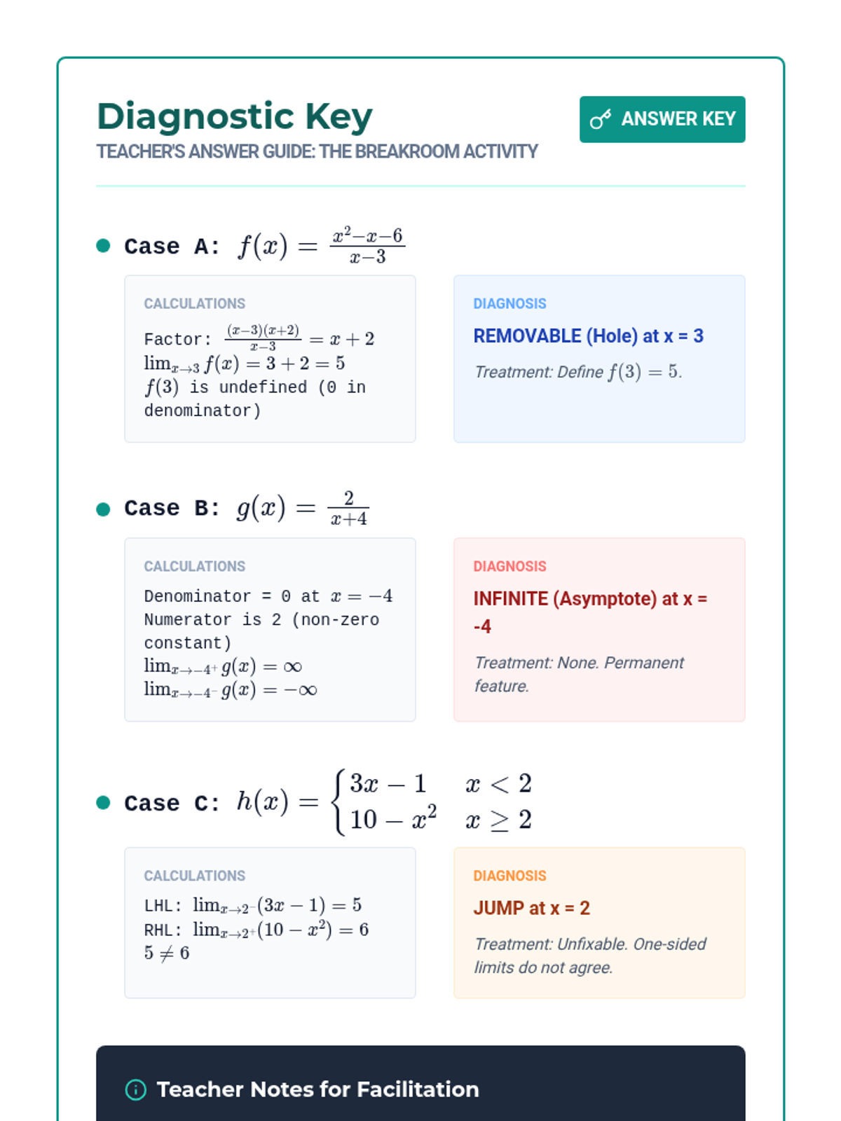 A comprehensive 11th-grade Calculus sequence focusing on the formal definition of continuity, classification of discontinuities, and the application of the Intermediate Value Theorem (IVT). Students transition from intuitive understanding to rigorous mathematical justification.
