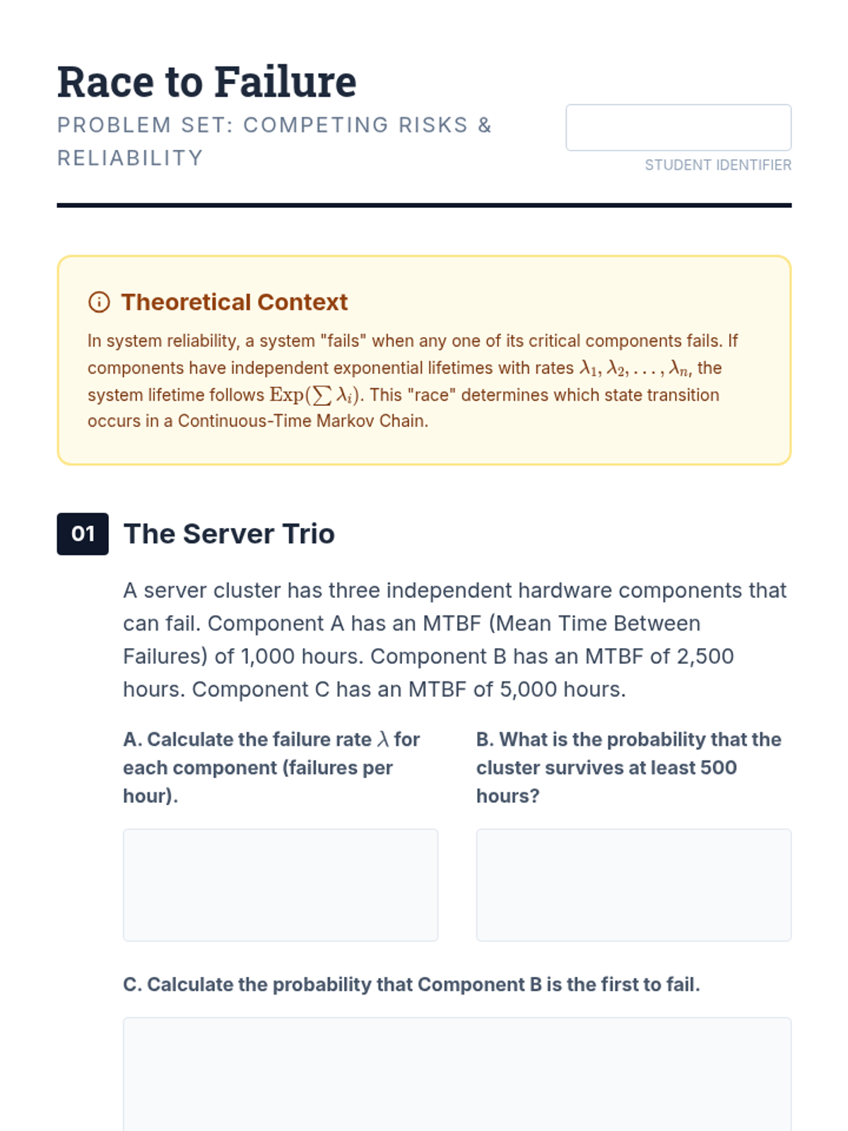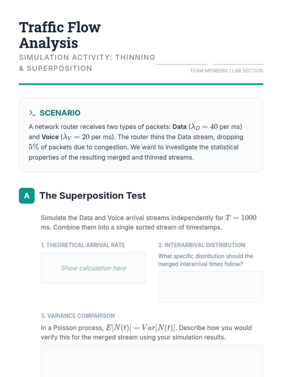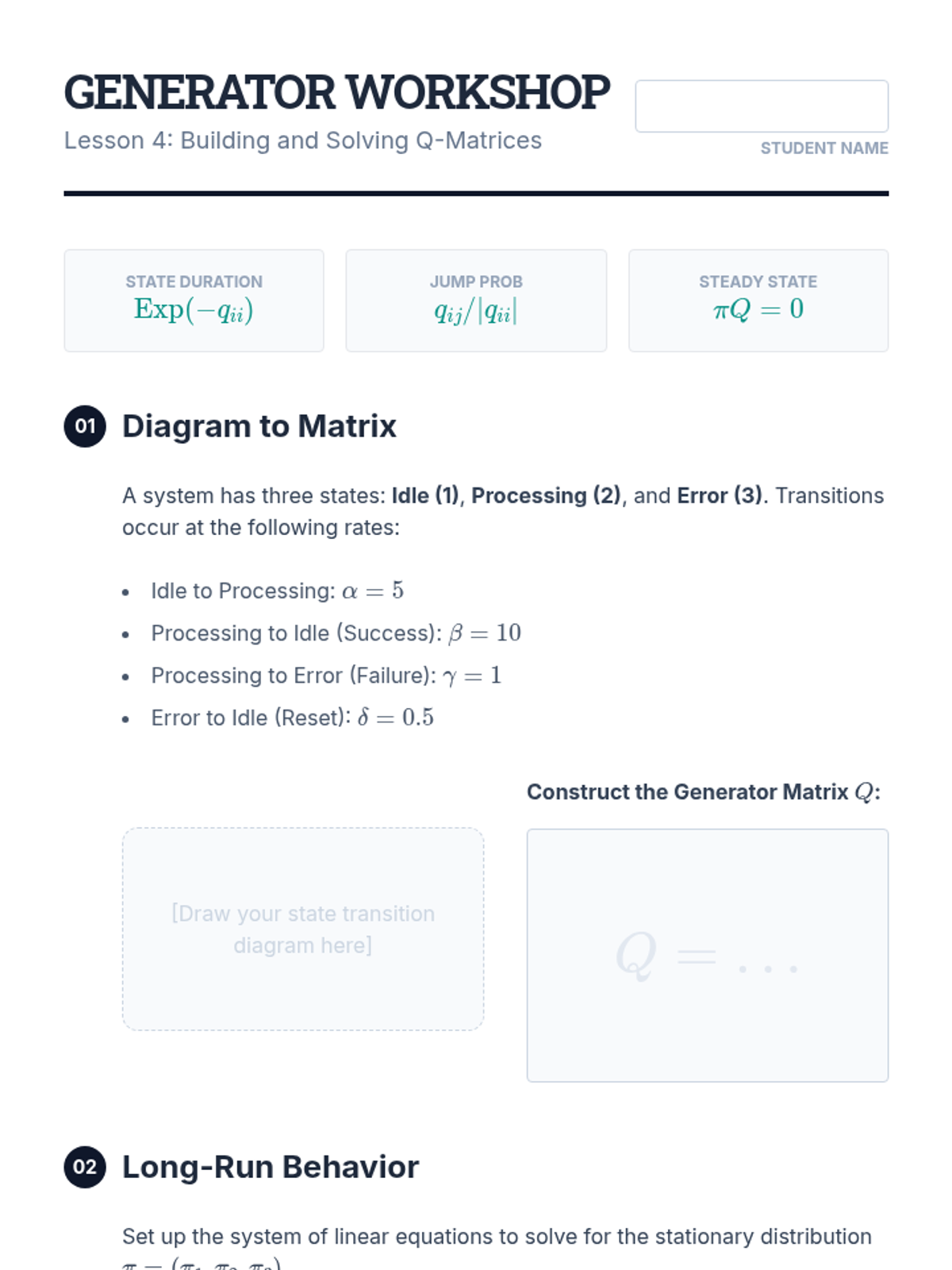 A graduate-level sequence exploring continuous-time stochastic processes through the lens of computational simulation. Students transition from discrete to continuous time models, focusing on Poisson processes, CTMCs, and queuing theory with a strong emphasis on empirical validation and theoretical rigor.