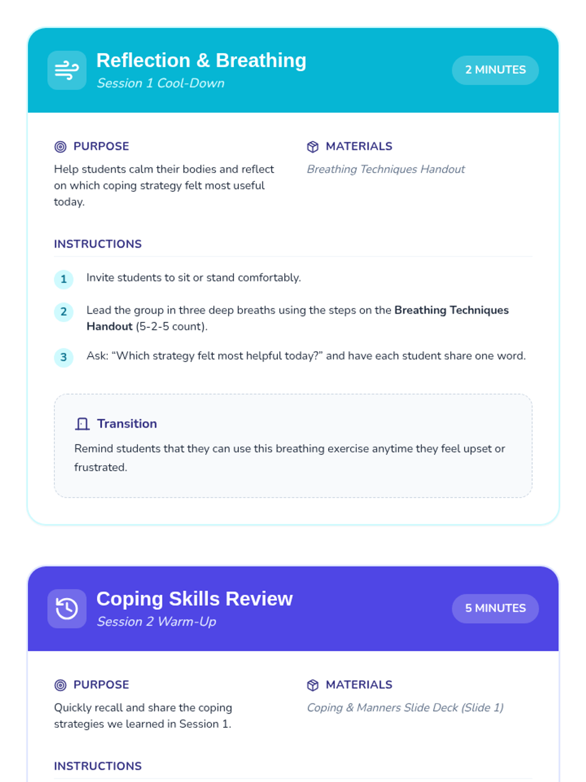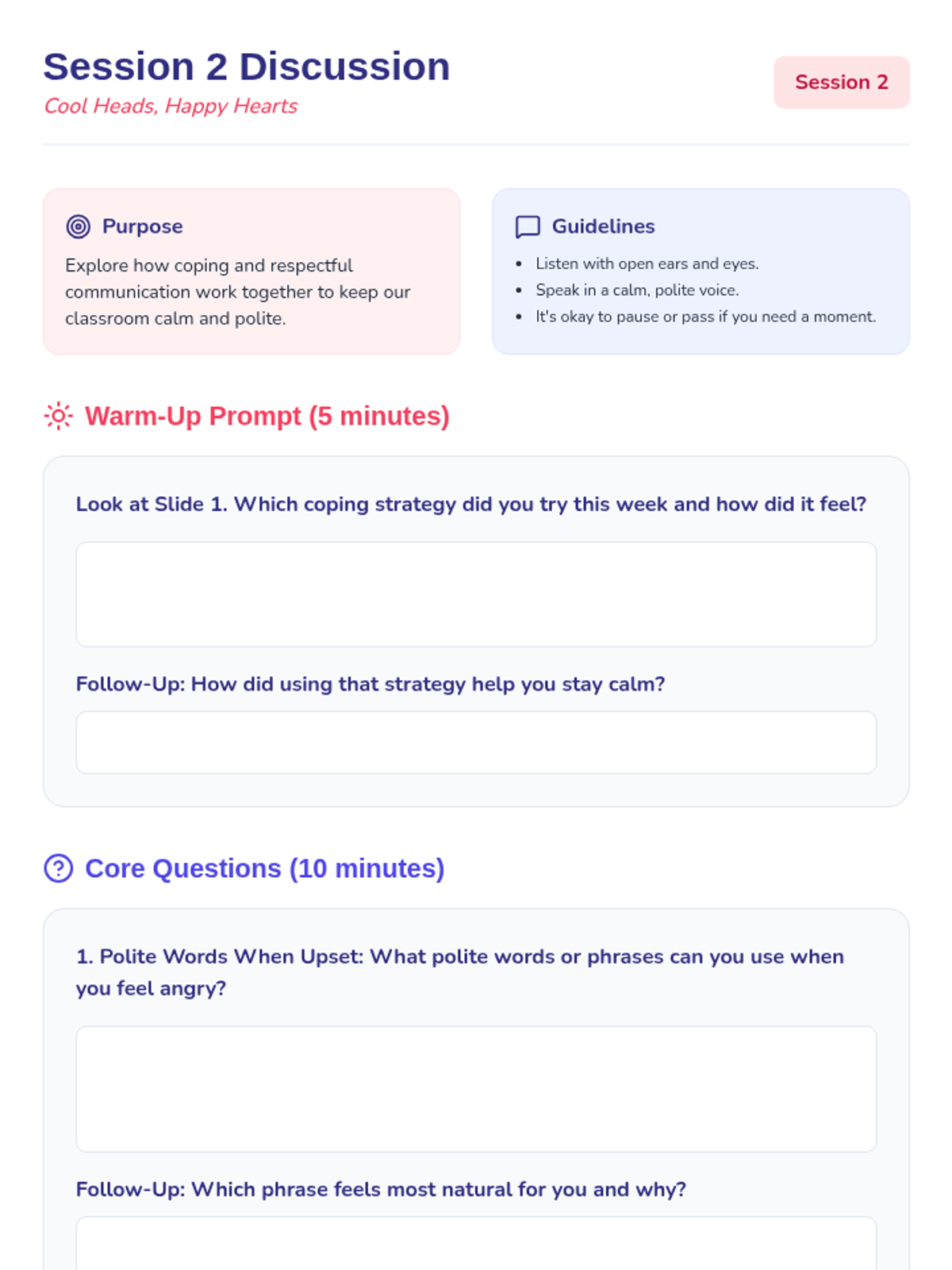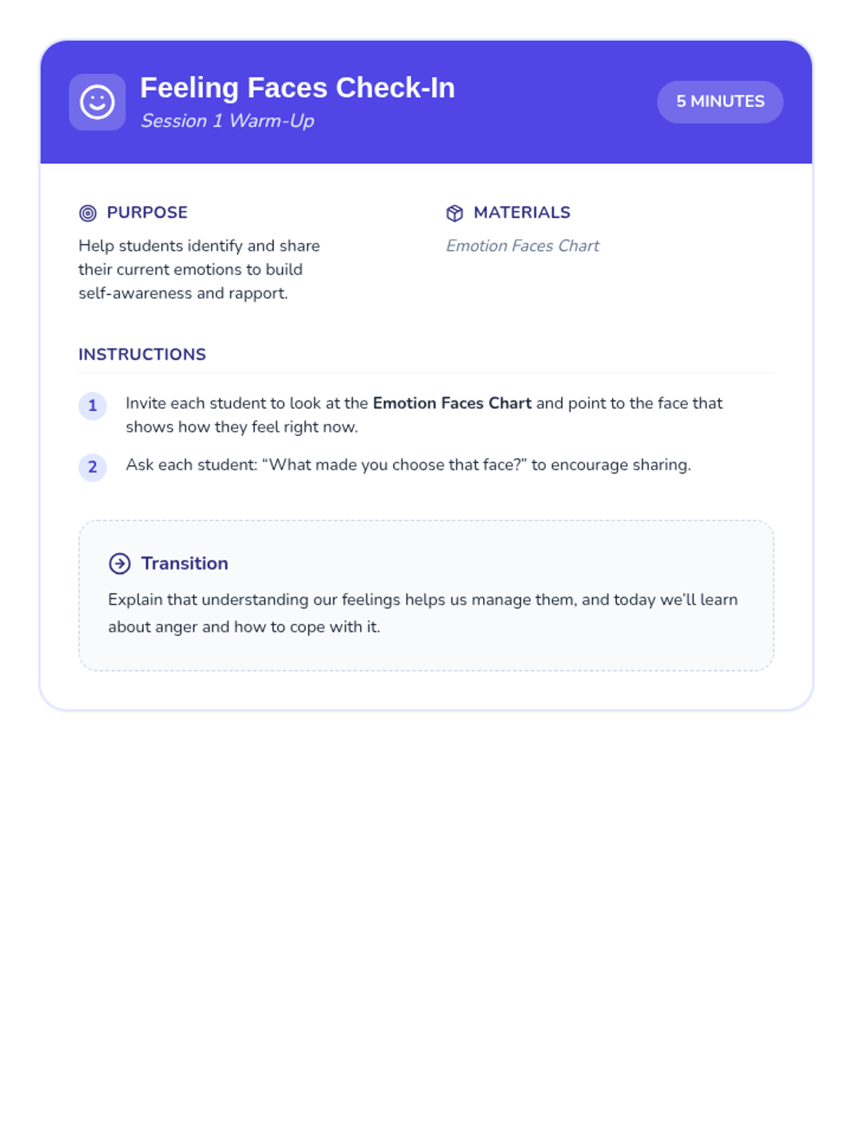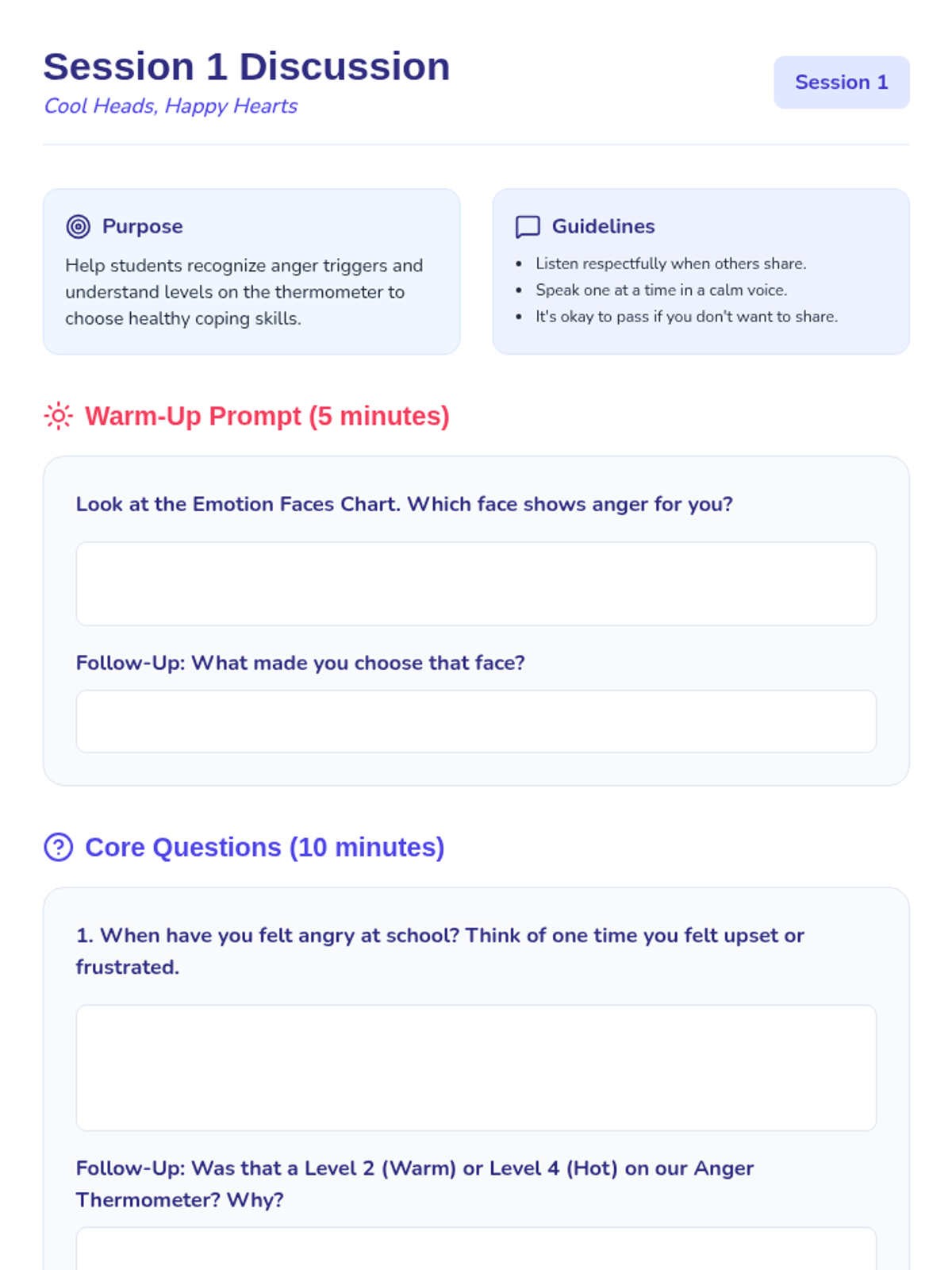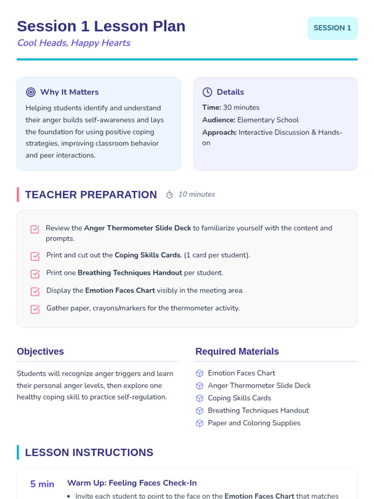 A 4-week small group series for 6th graders focused on identifying frustration triggers and implementing healthy coping strategies for academic, athletic, and home-based stress.