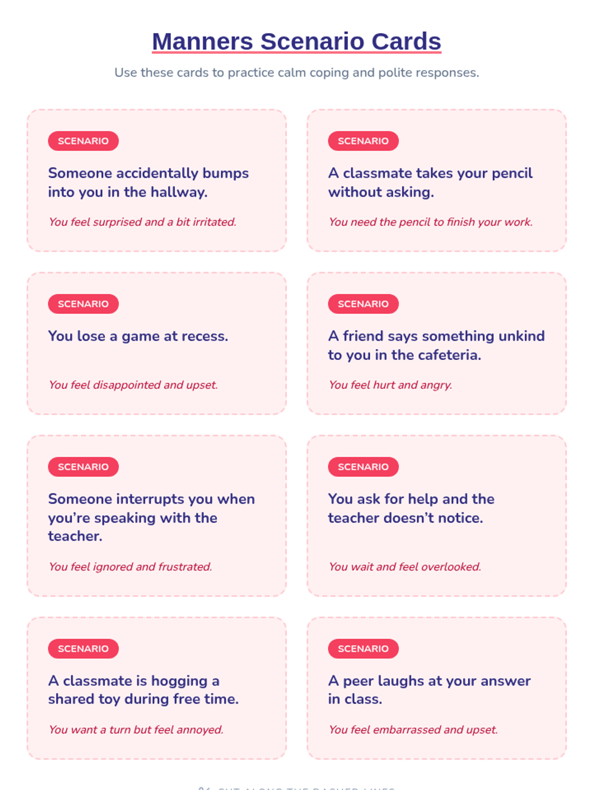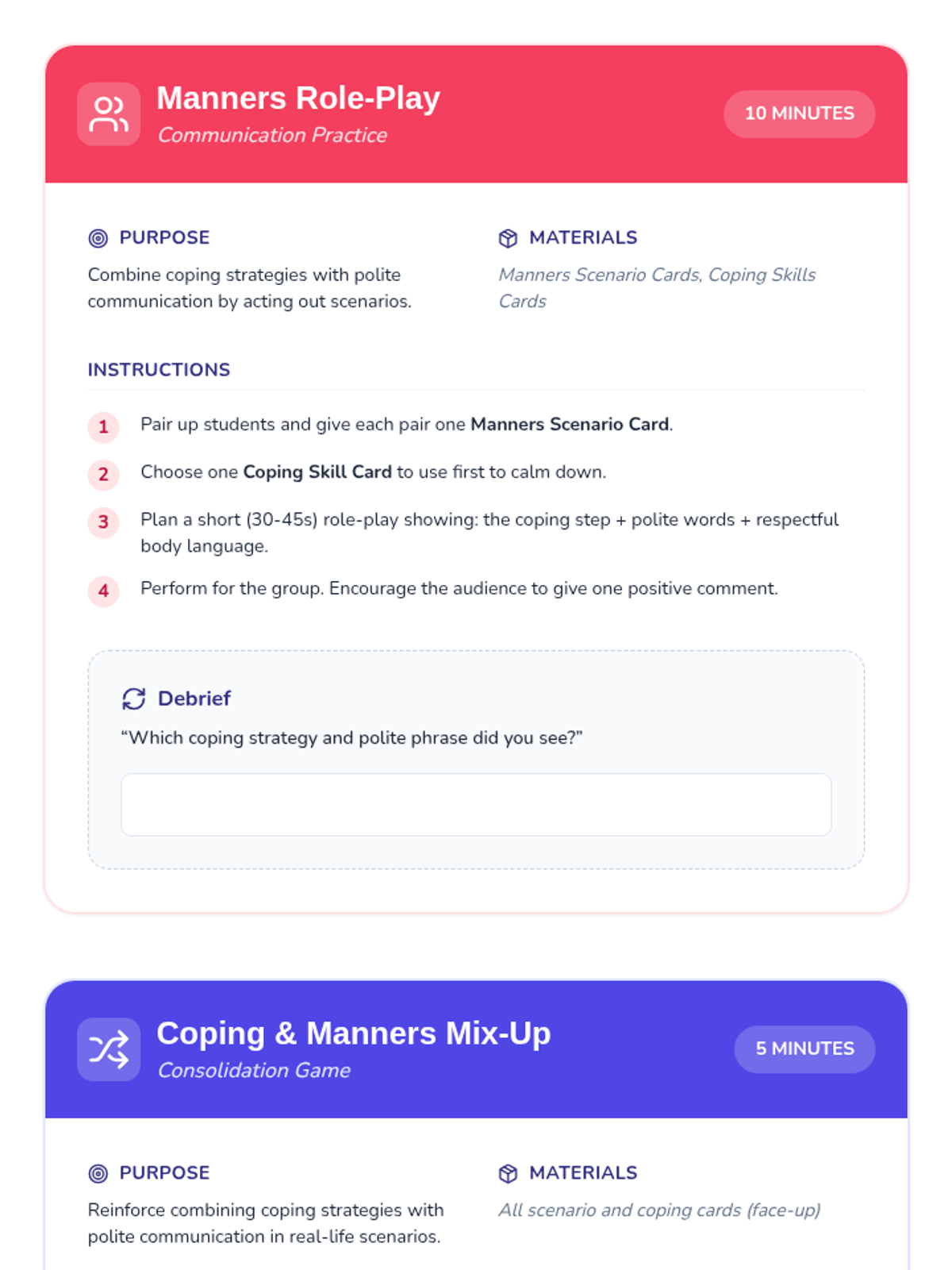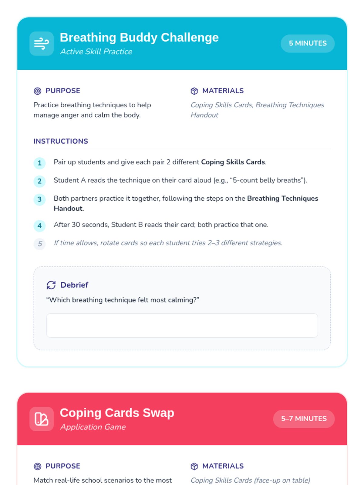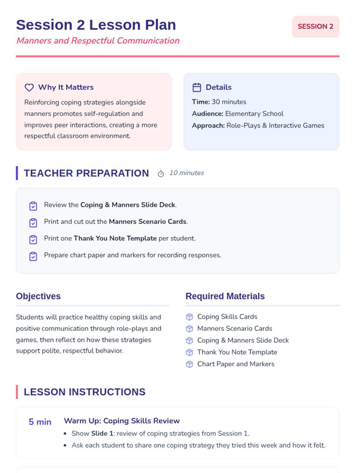 A two-session small-group counseling sequence for elementary students to develop anger management, self-regulation, and respectful communication skills.