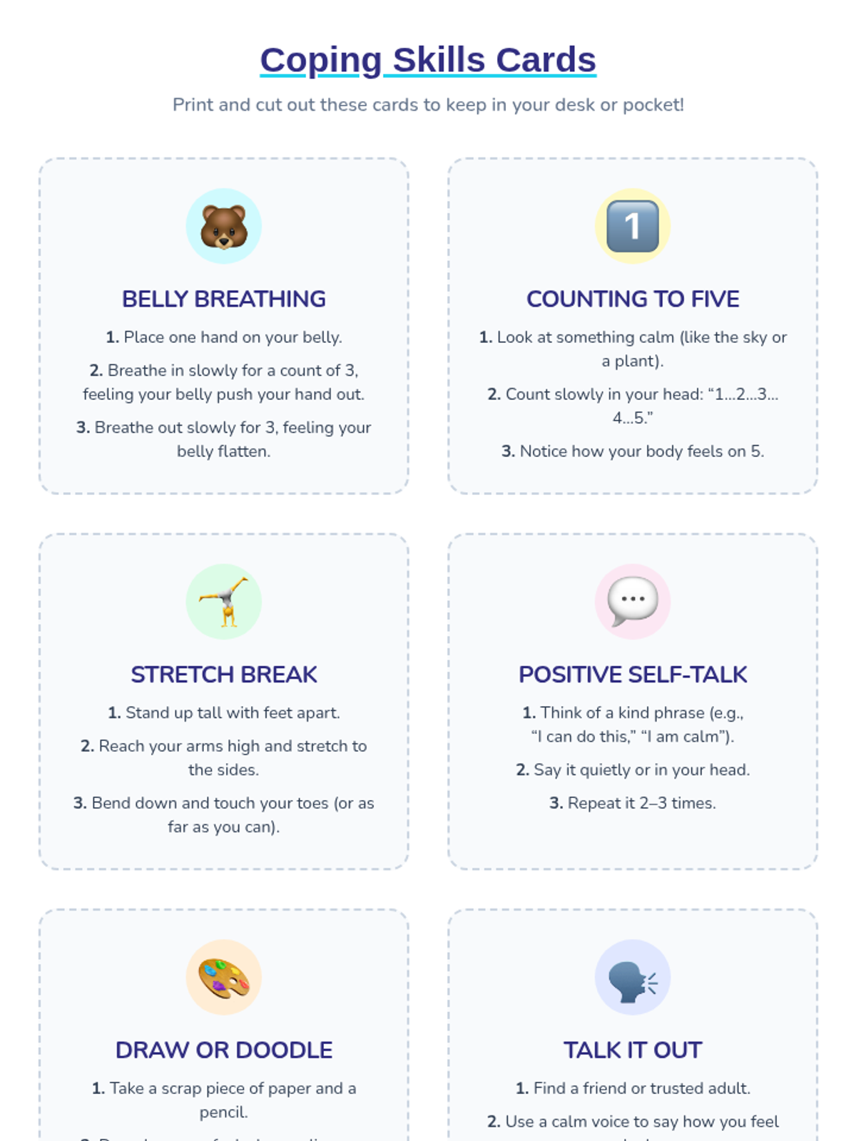 A 6-session counseling group designed to help students identify triggers, understand physical symptoms of anxiety, and build a personalized toolkit of coping strategies through a 'Calm Explorer' theme.