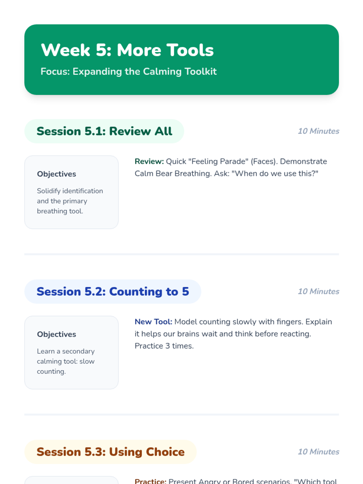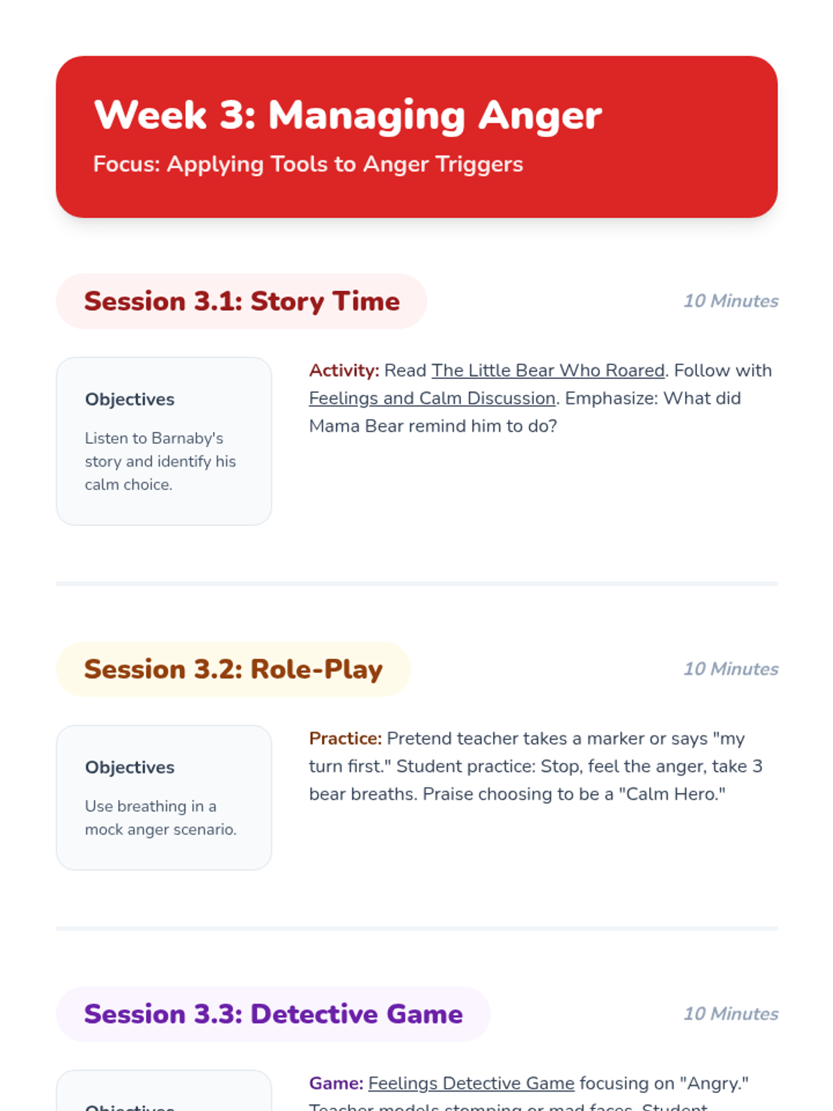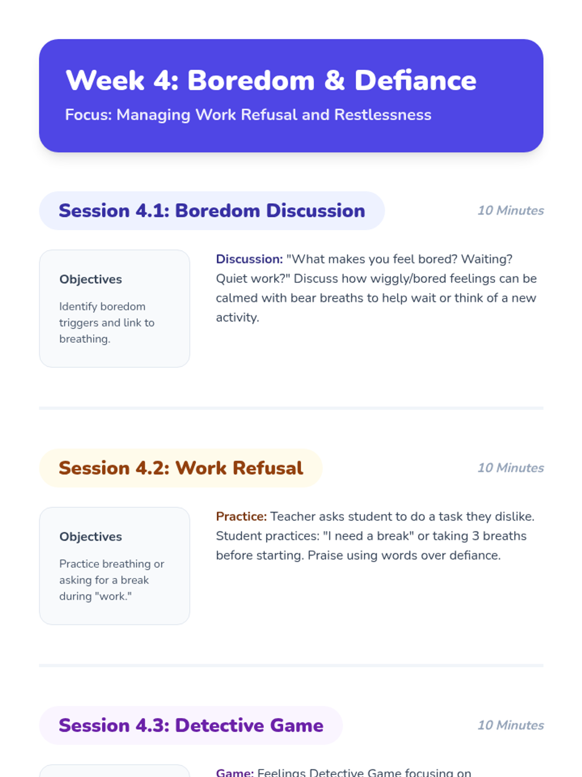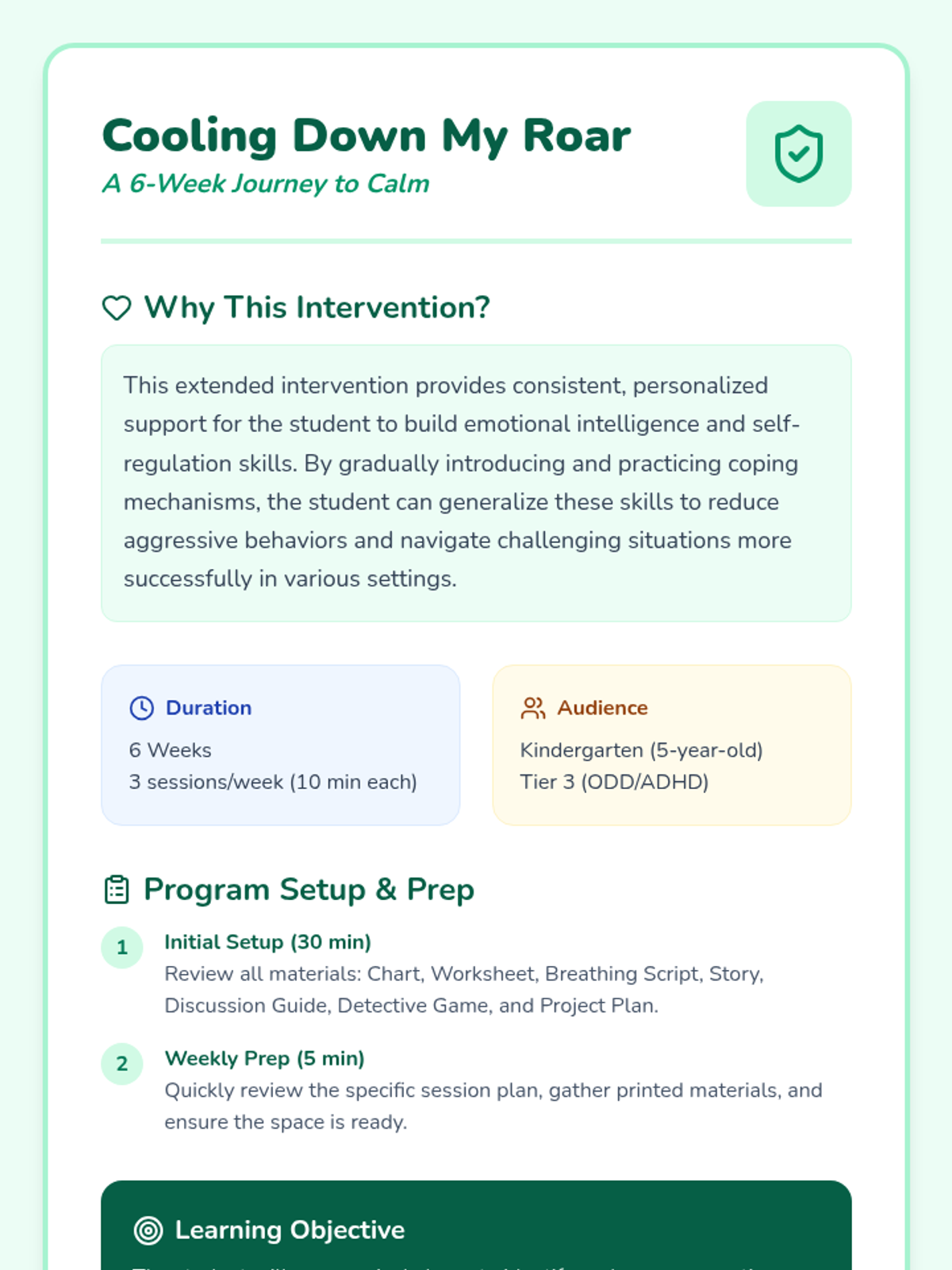 A 6-week Tier 3 intervention for kindergarteners with ODD and ADHD, focusing on emotional identification and calming strategies to replace physical aggression.
