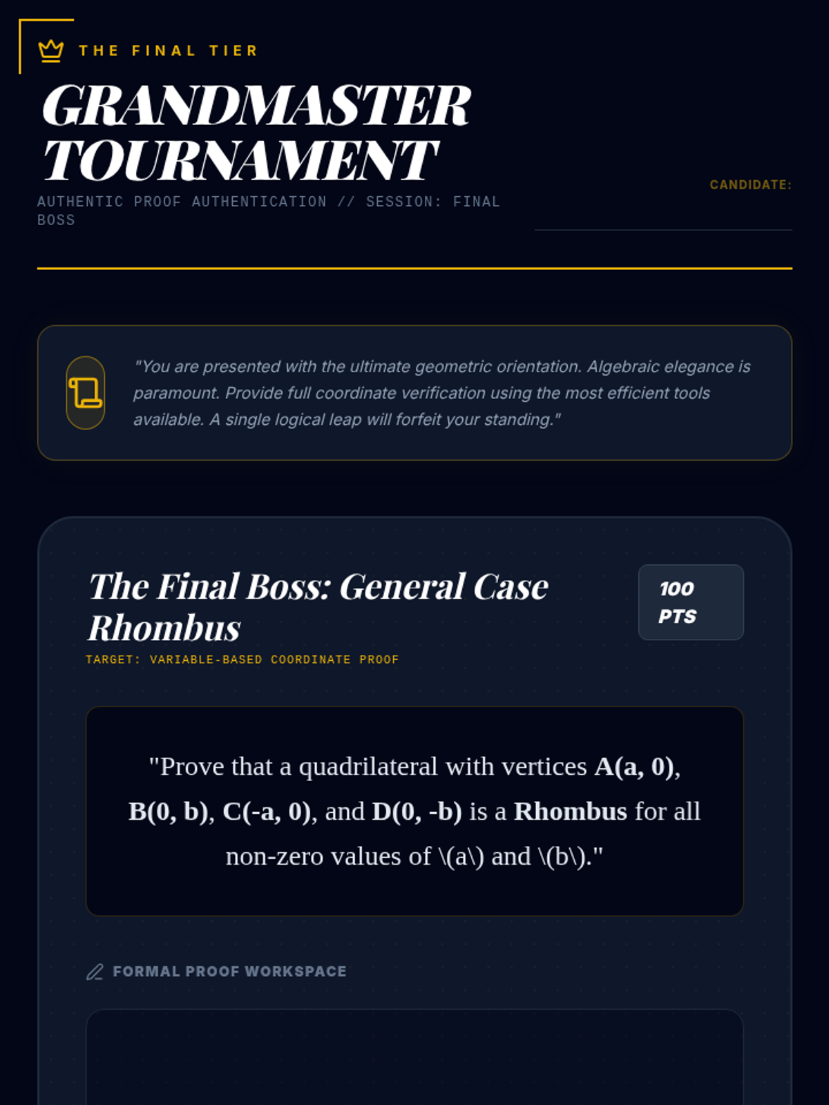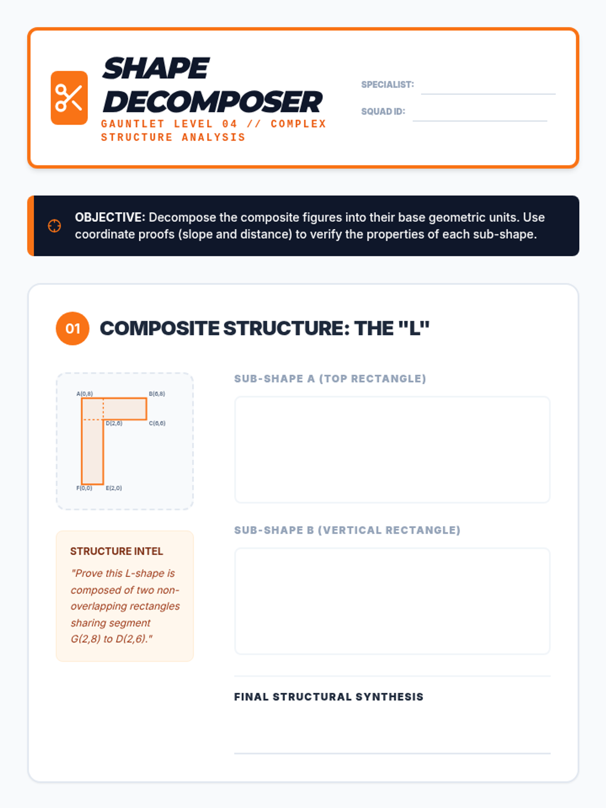 A game-based 9th Grade geometry unit where students master coordinate proofs through competitive challenges, error analysis, and complex shape decomposition. Students progress from procedural speed to strategic mastery of slope, distance, and midpoint formulas.