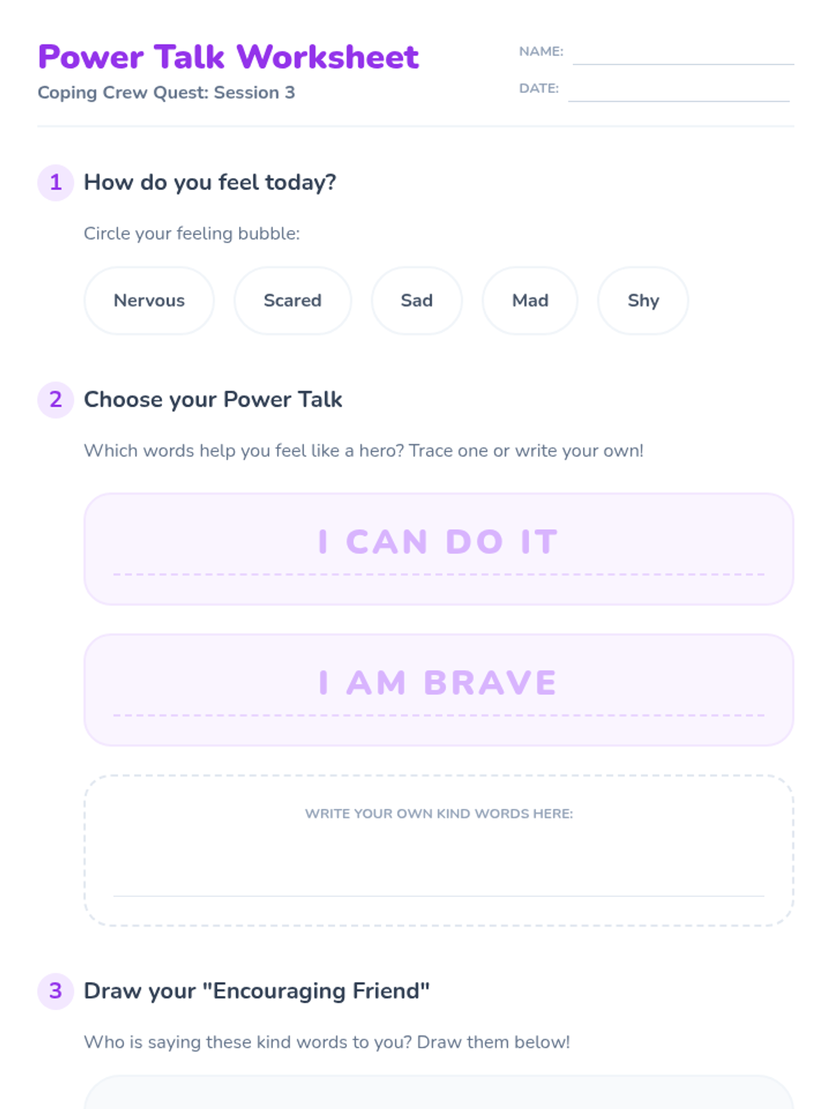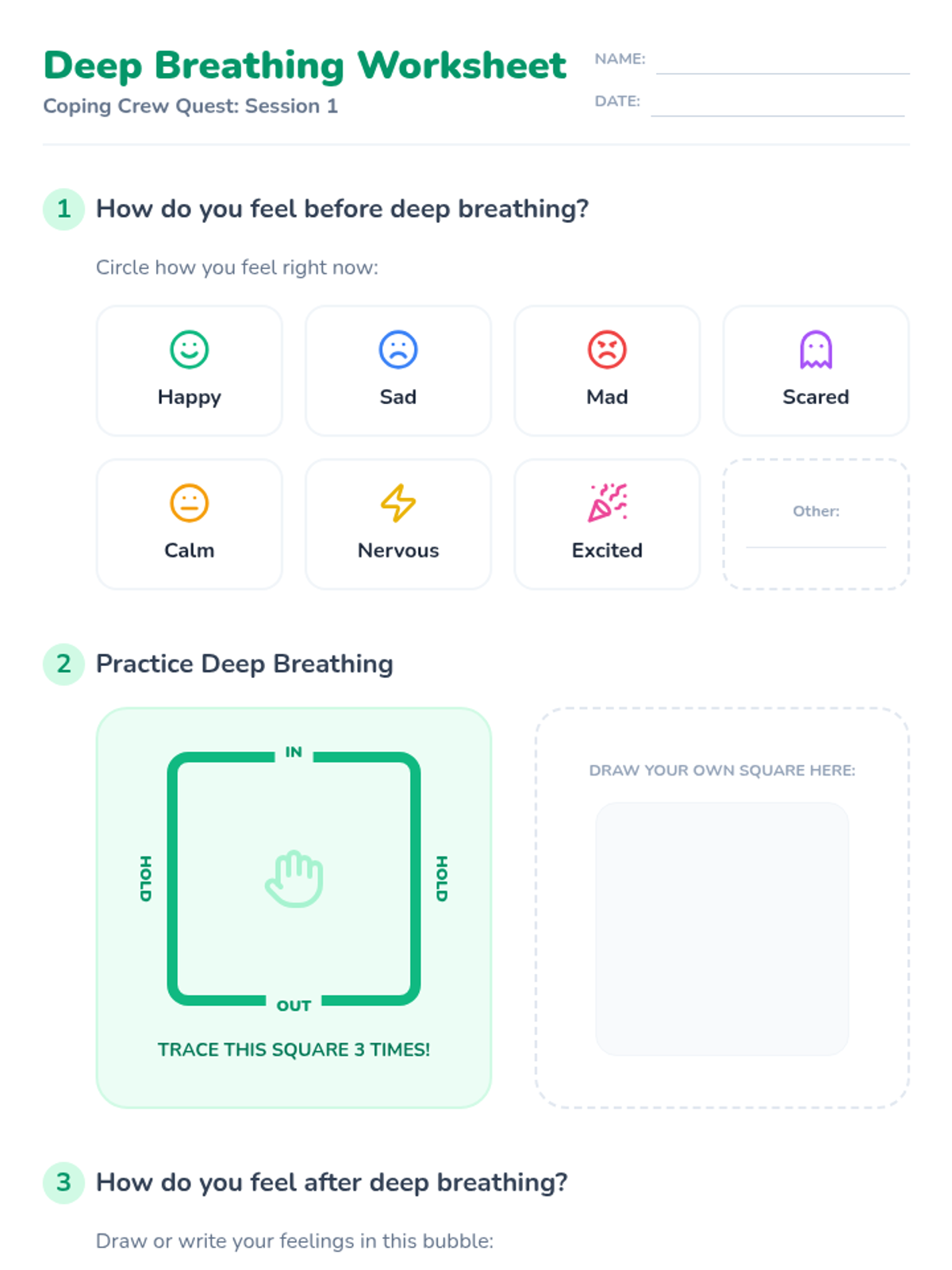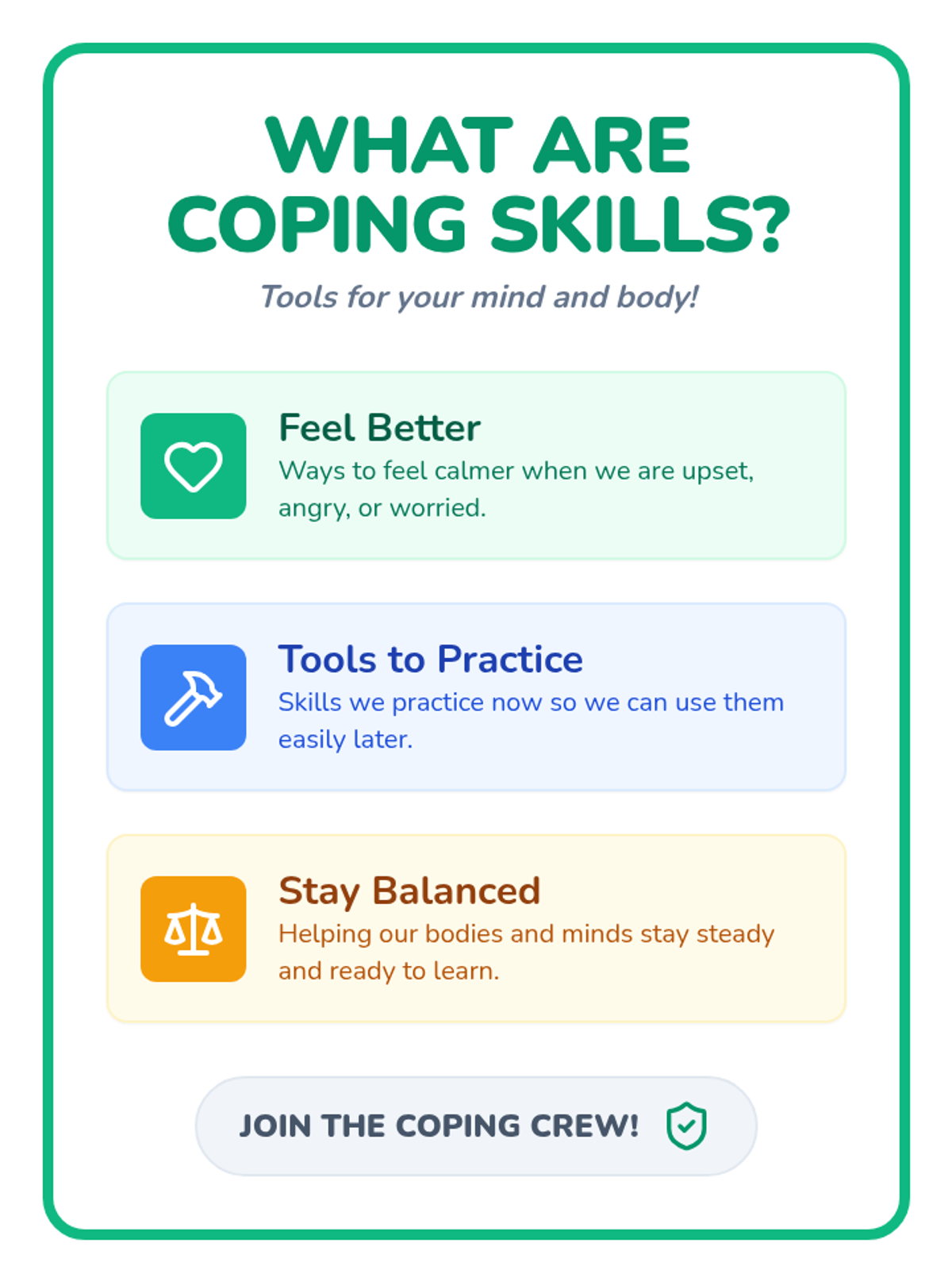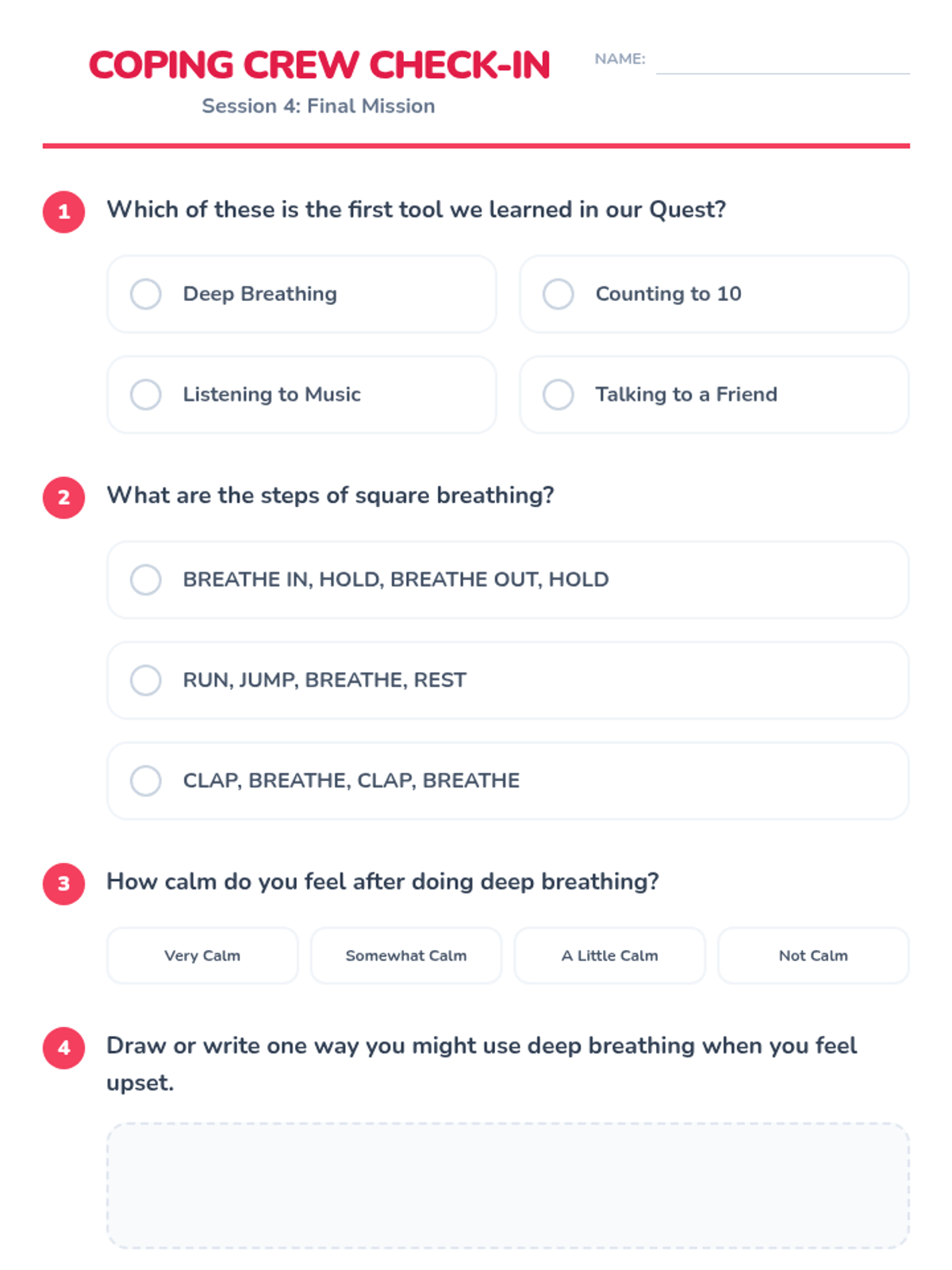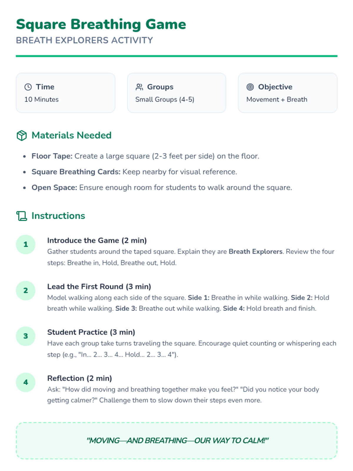 A 4-session Tier 2 group intervention for 1st graders designed to teach foundational emotional regulation tools like deep breathing, counting, and positive self-talk through an adventure-themed quest.