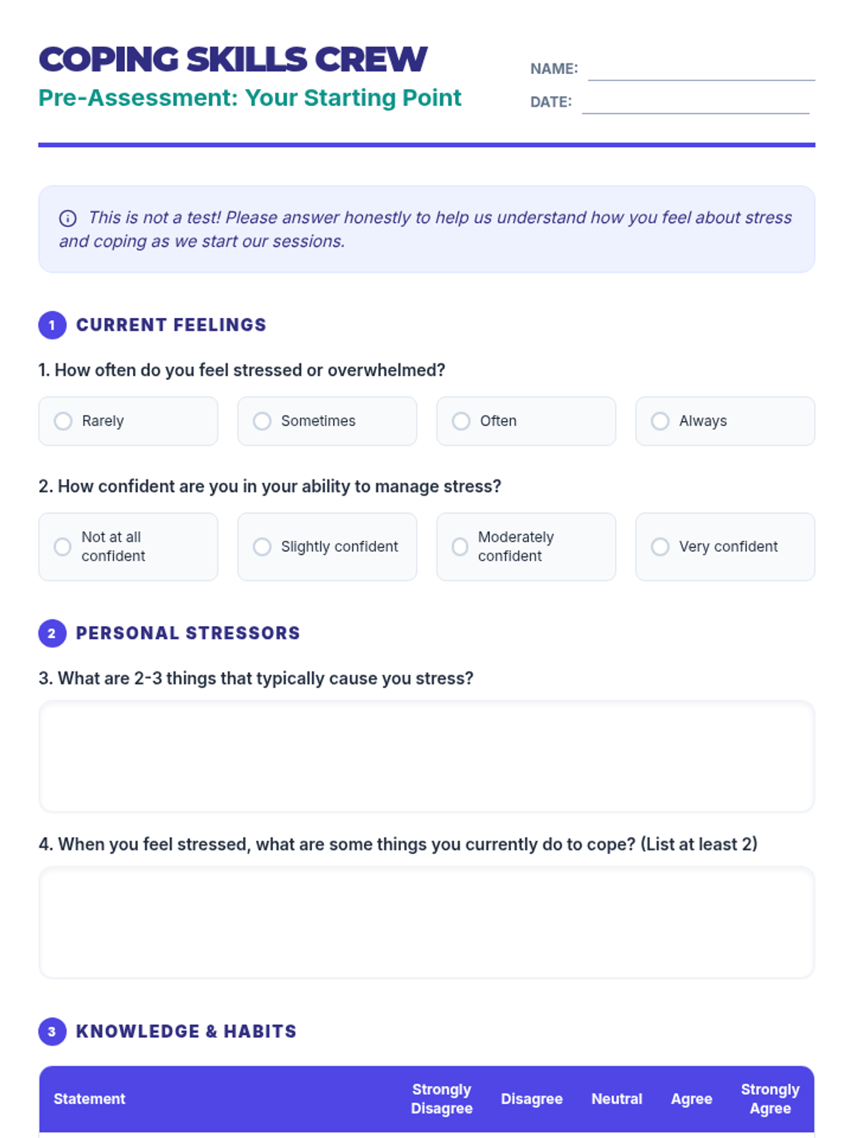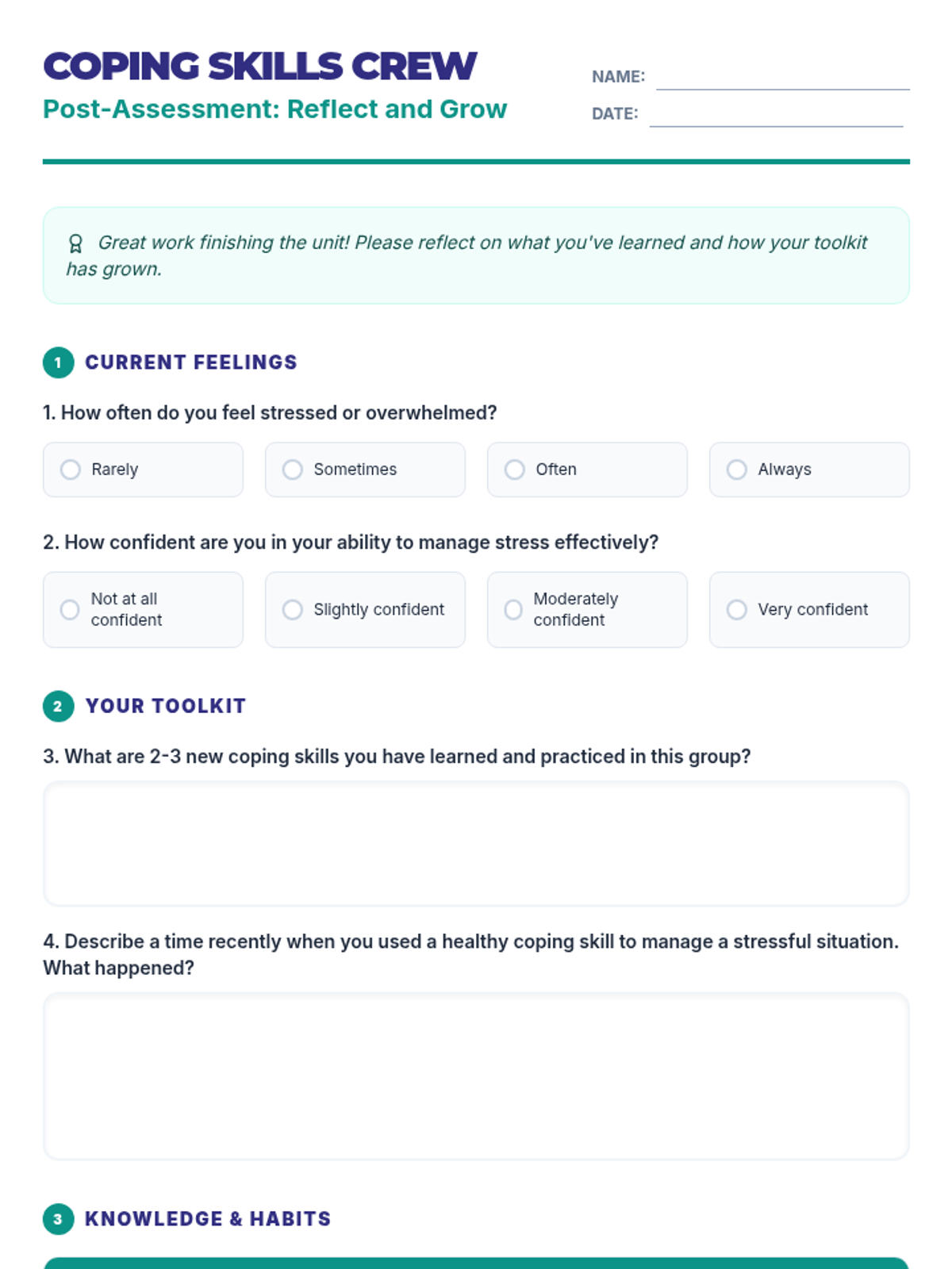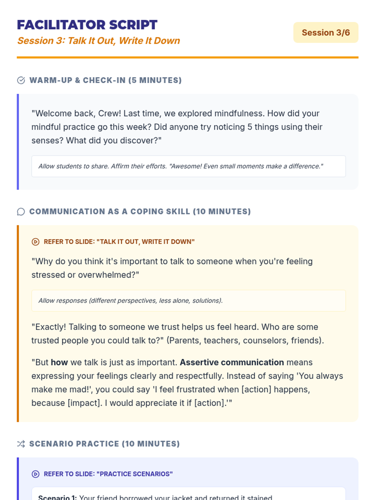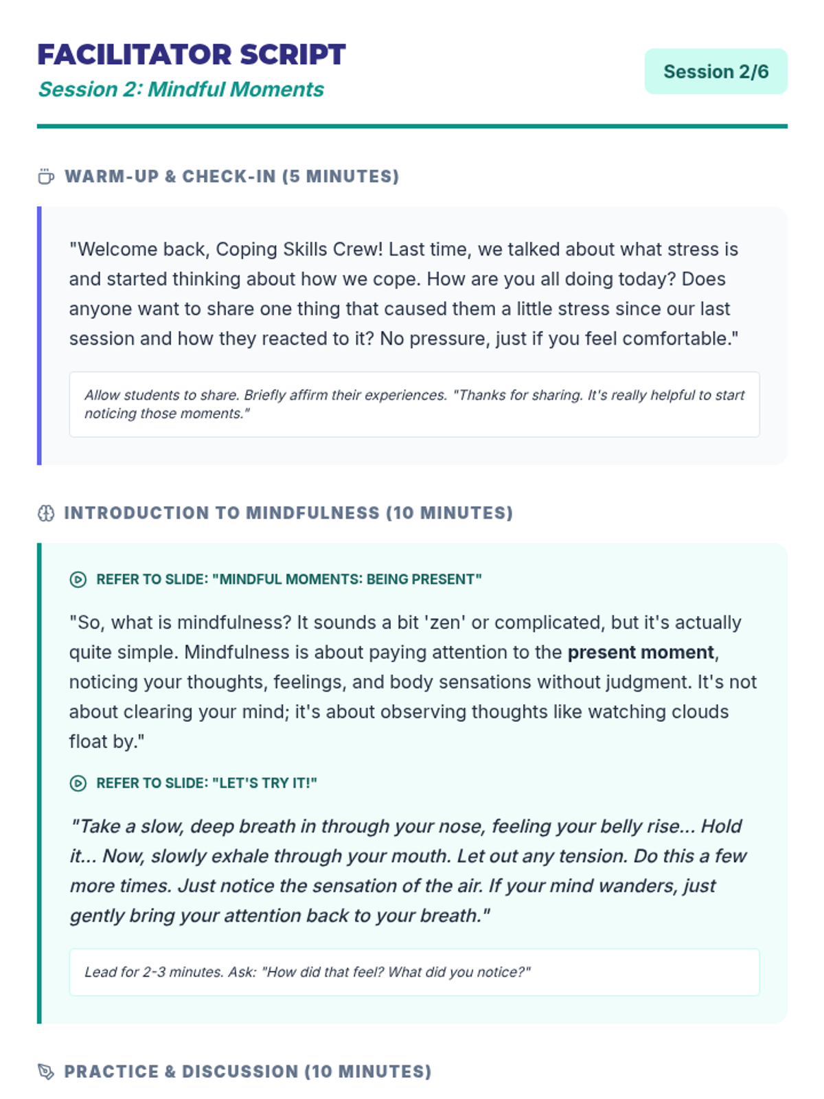 A 6-session unit designed for small groups of 10th-grade students to develop, practice, and implement effective coping strategies for managing stress and emotions.