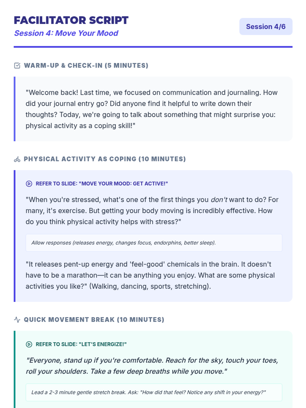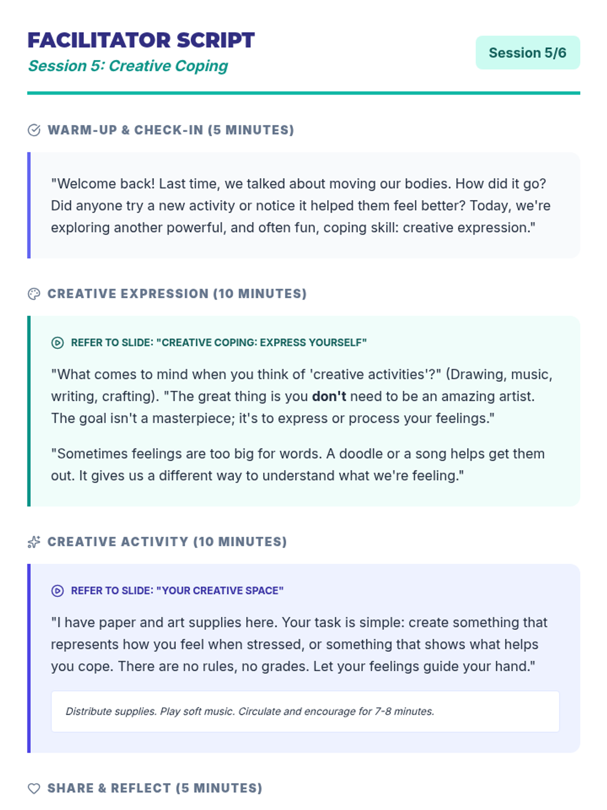 A 4-session small group counseling program for high school girls focused on identifying anxiety triggers, practicing mindfulness, and developing a personalized toolkit of coping strategies. The sequence emphasizes peer support, empowerment, and practical application within the school environment.