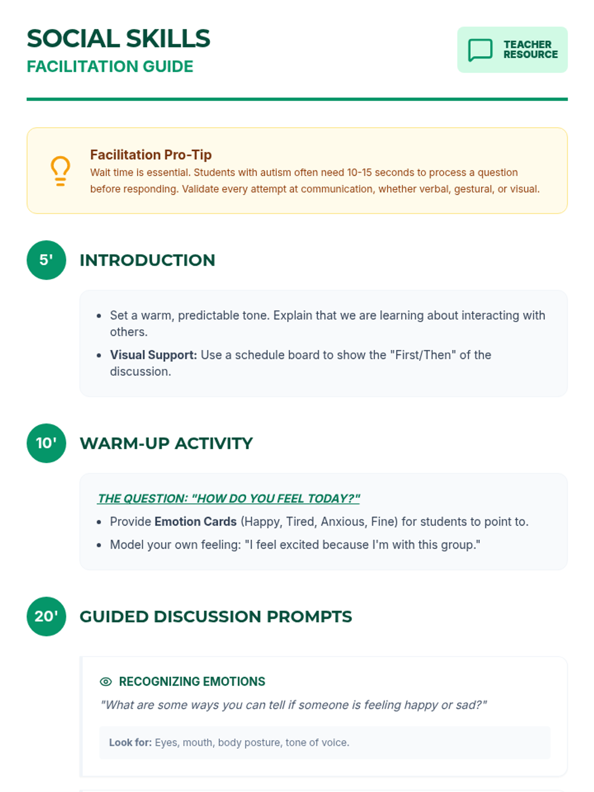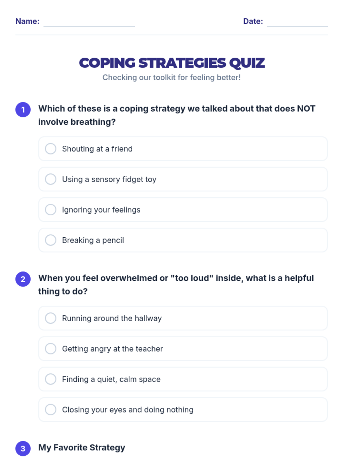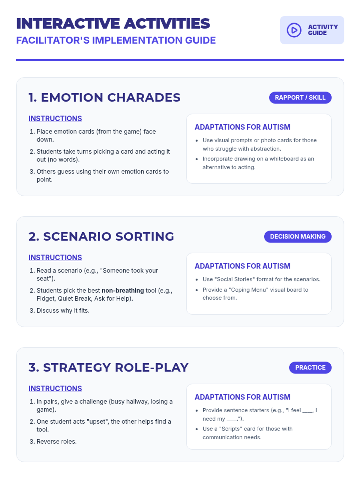 A 5-session group counseling sequence for 7th-grade students with autism, focusing on alternative (non-breathing) coping strategies, social skills, and emotional regulation.