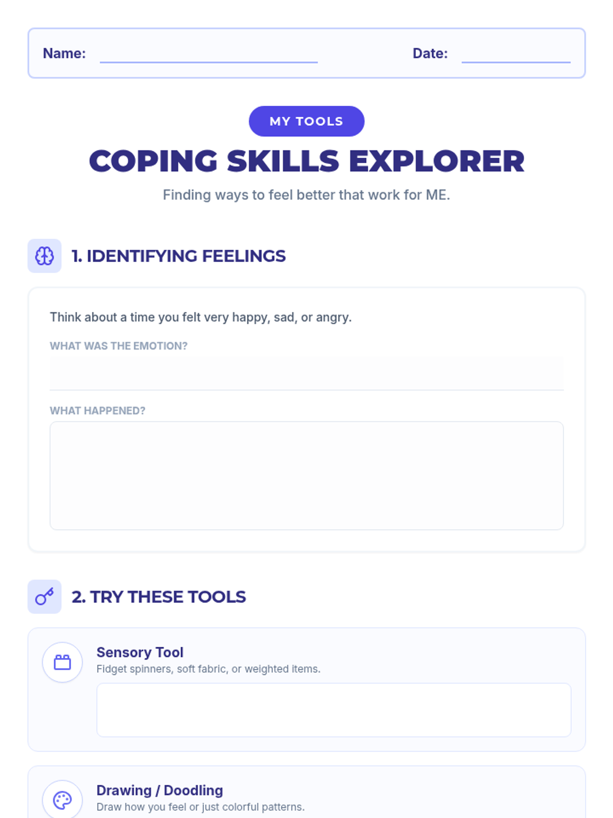 A series of three interactive counseling sessions for middle and high school students, focusing on self-discovery, emotional regulation, and future planning. Using a 'Blueprint' aesthetic, students engage in hands-on activities to map out their internal identities, manage external stressors, and construct actionable goals.
