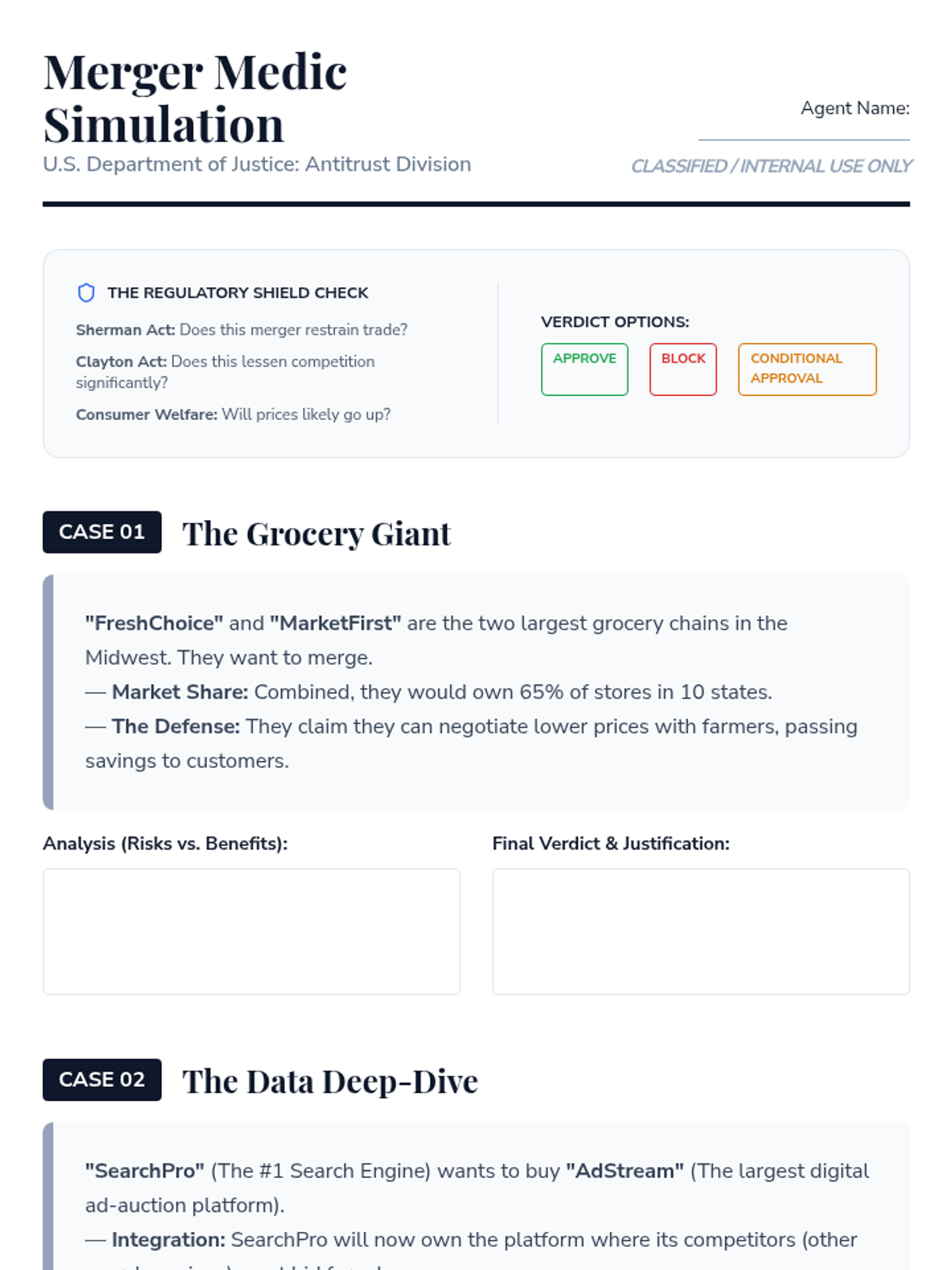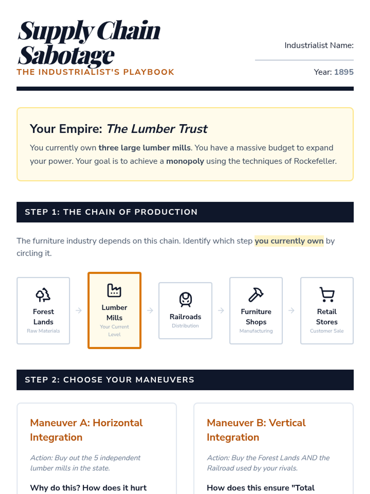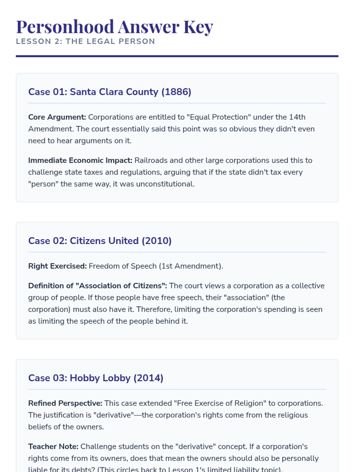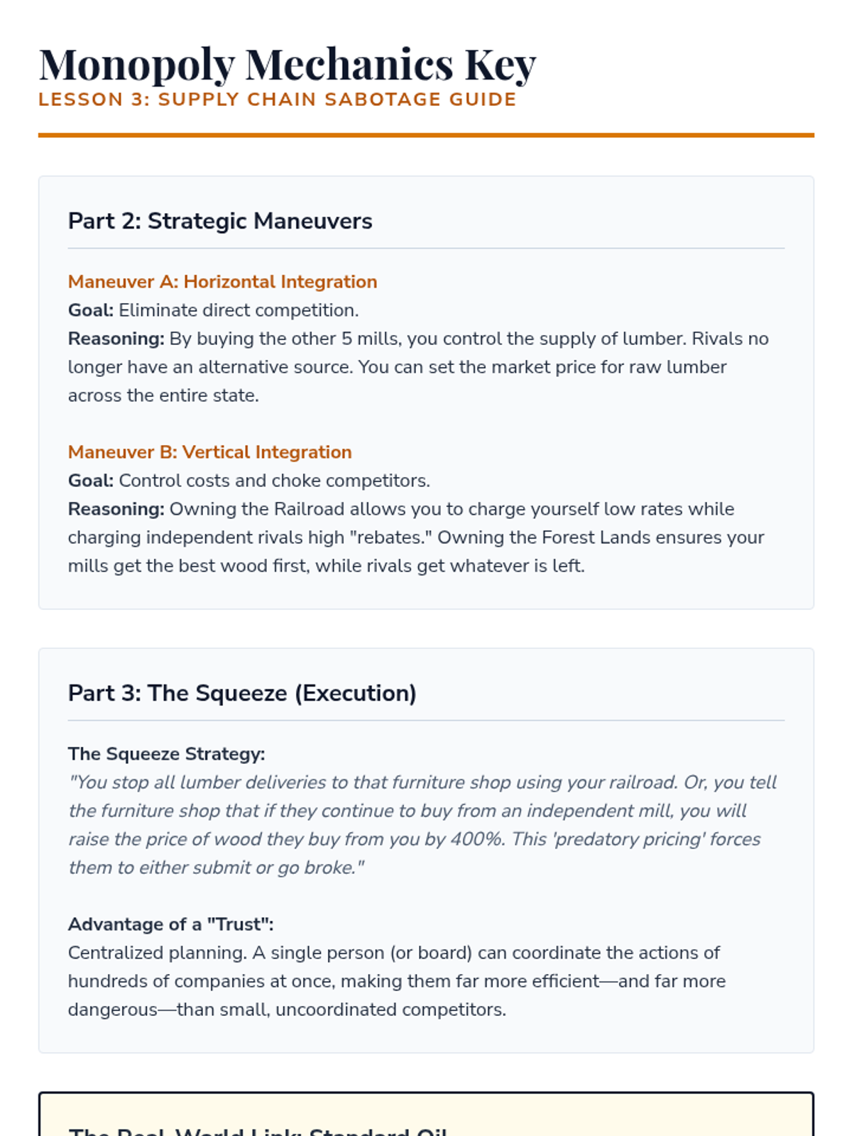 This high school economics sequence explores the legal and economic structures of corporations, tracing the history of market power from the Gilded Age to modern Big Tech. Students analyze business structures, the concept of corporate personhood, the rise of monopolies like Standard Oil, and the evolution of antitrust regulation.
