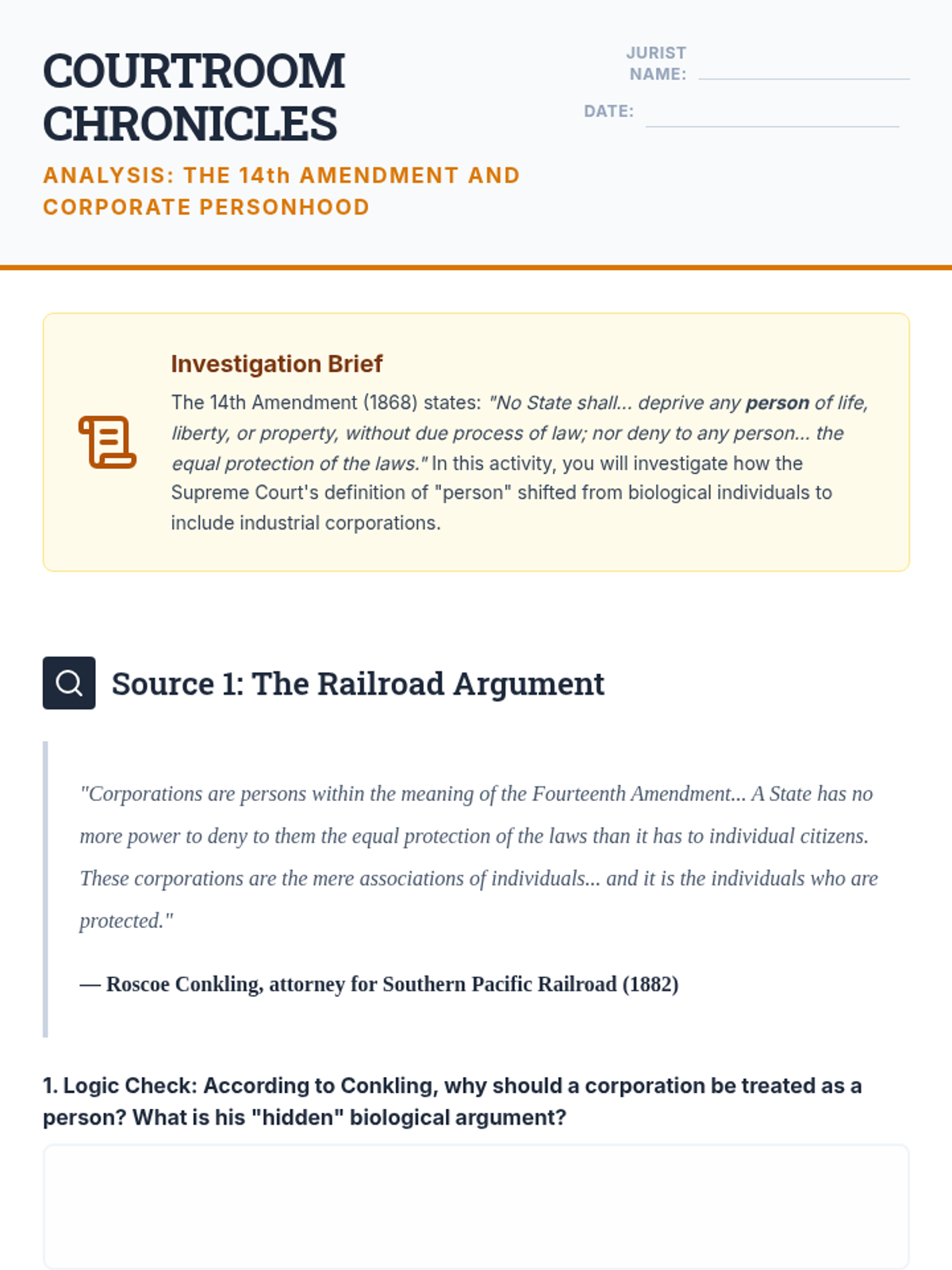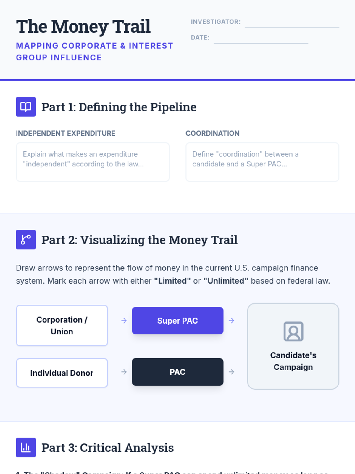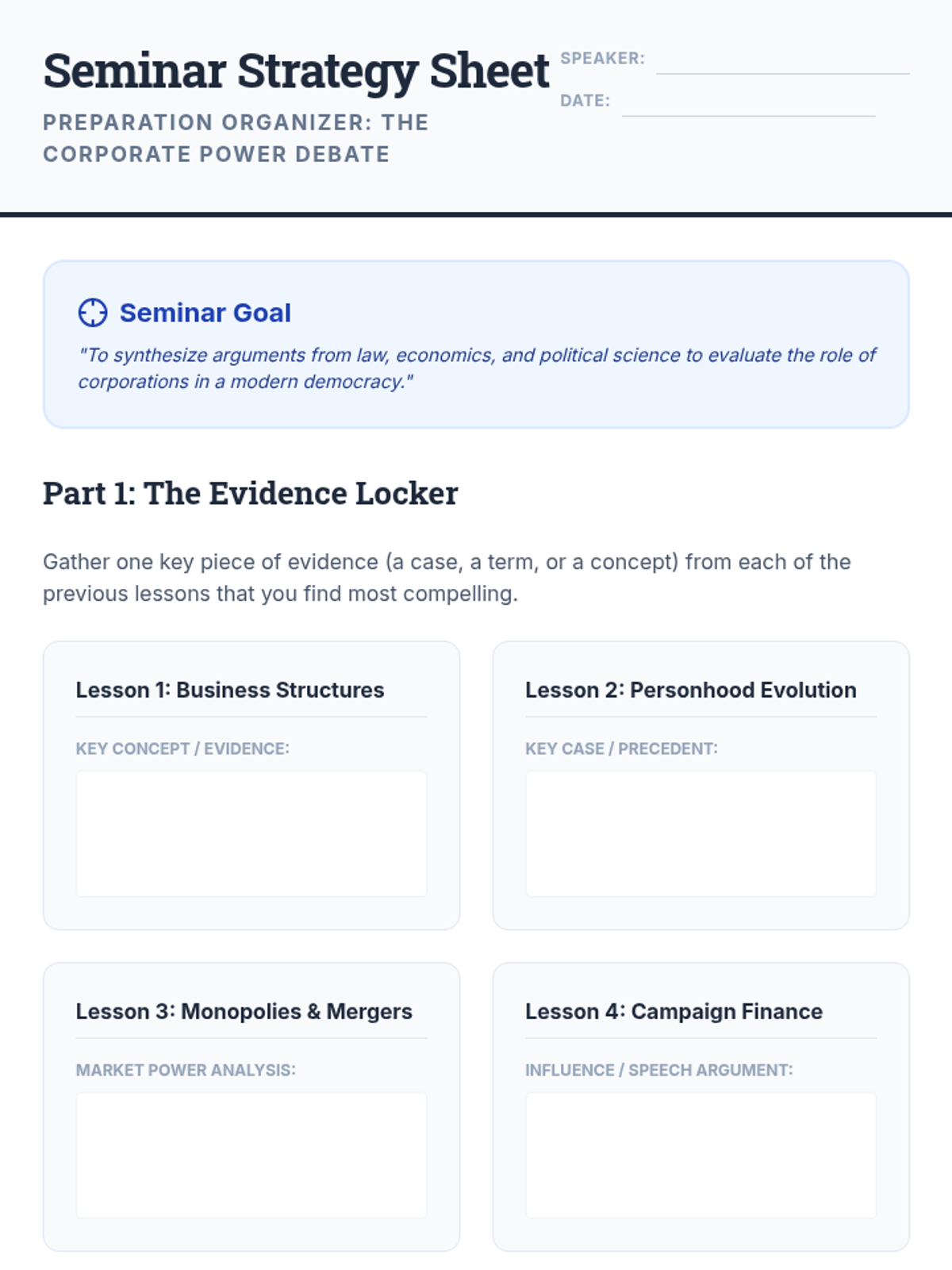 This sequence explores the legal evolution and political influence of corporations, from basic business structures to the complex debate over corporate personhood and campaign finance. Students analyze how legal precedents have shaped the modern economic and political landscape.
