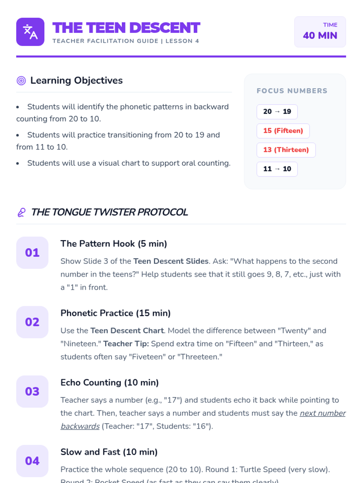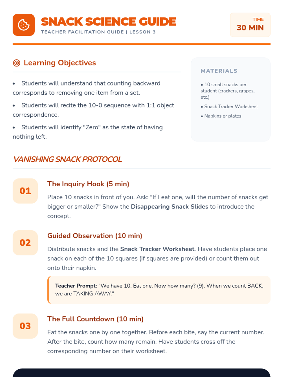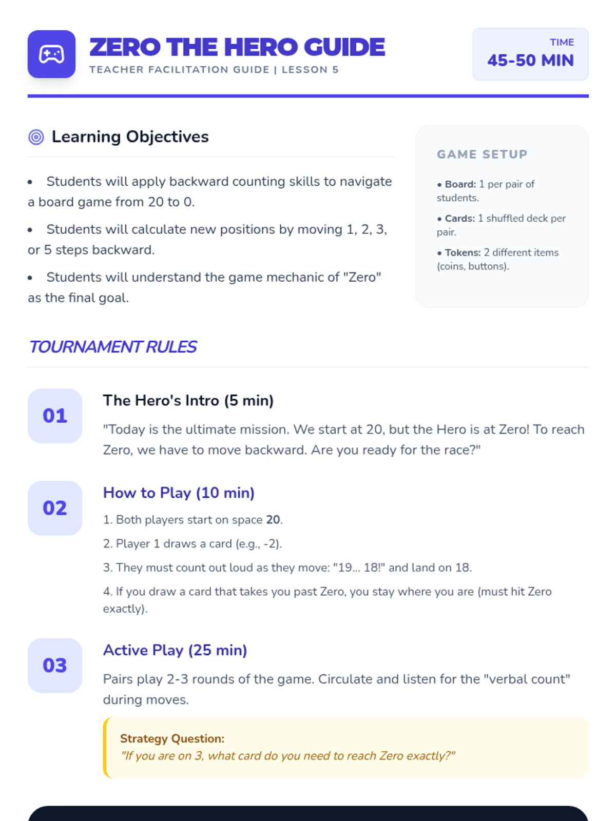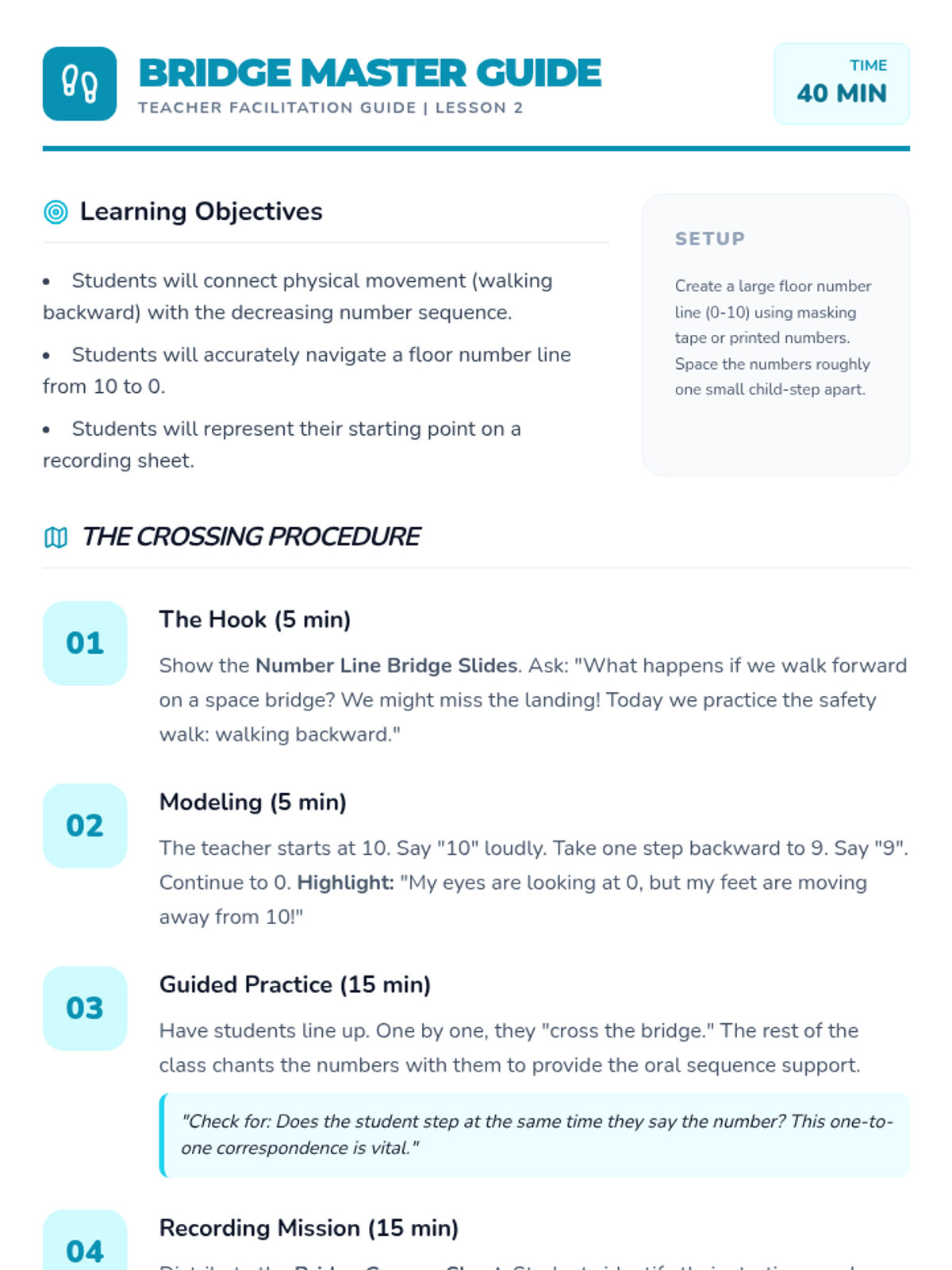 A Kindergarten math sequence introducing backward counting from 20 to 0 using a space exploration theme. Students learn that counting backwards corresponds to decreasing quantity, preparing them for subtraction concepts through simulations, games, and physical activities.