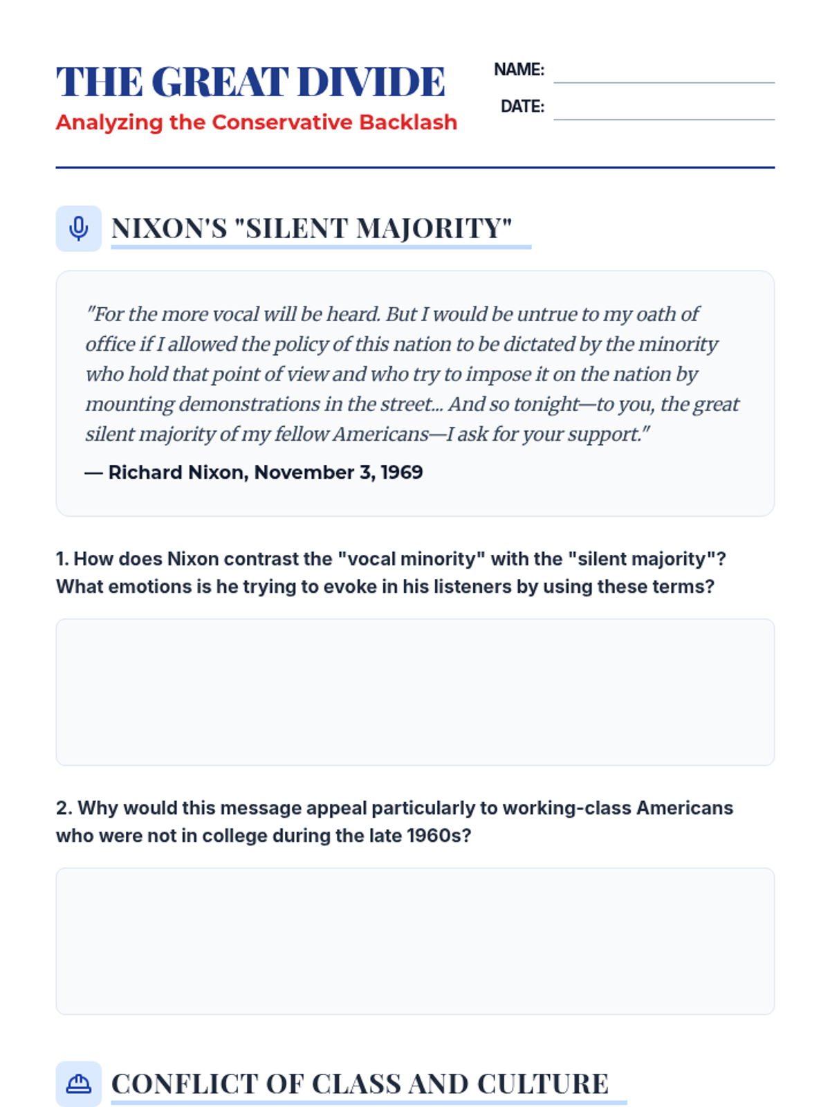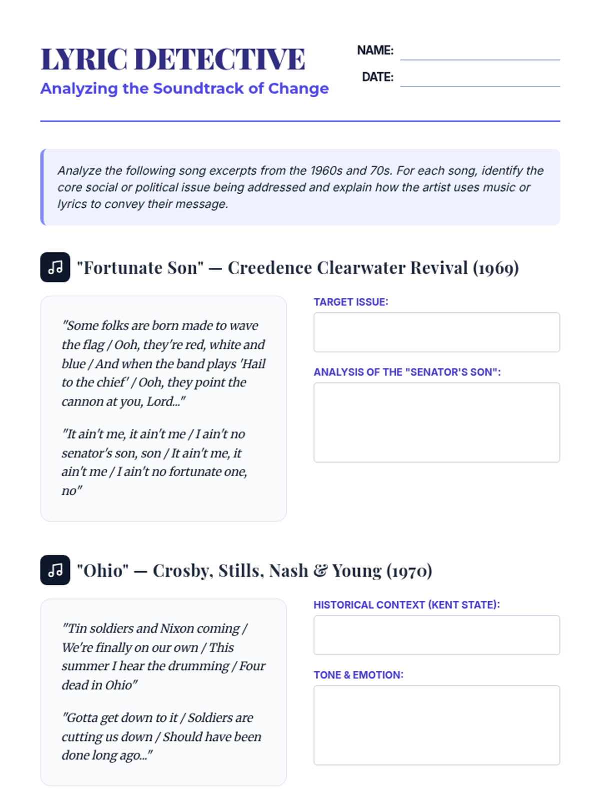 This sequence explores the cultural revolution of the 1960s and 70s, tracing the shift from the Beat Generation to the Hippie movement, Second-Wave Feminism, and environmentalism, while also examining the conservative backlash of the "Silent Majority." Students will analyze music, literature, and art to understand how the counterculture challenged traditional American values.
