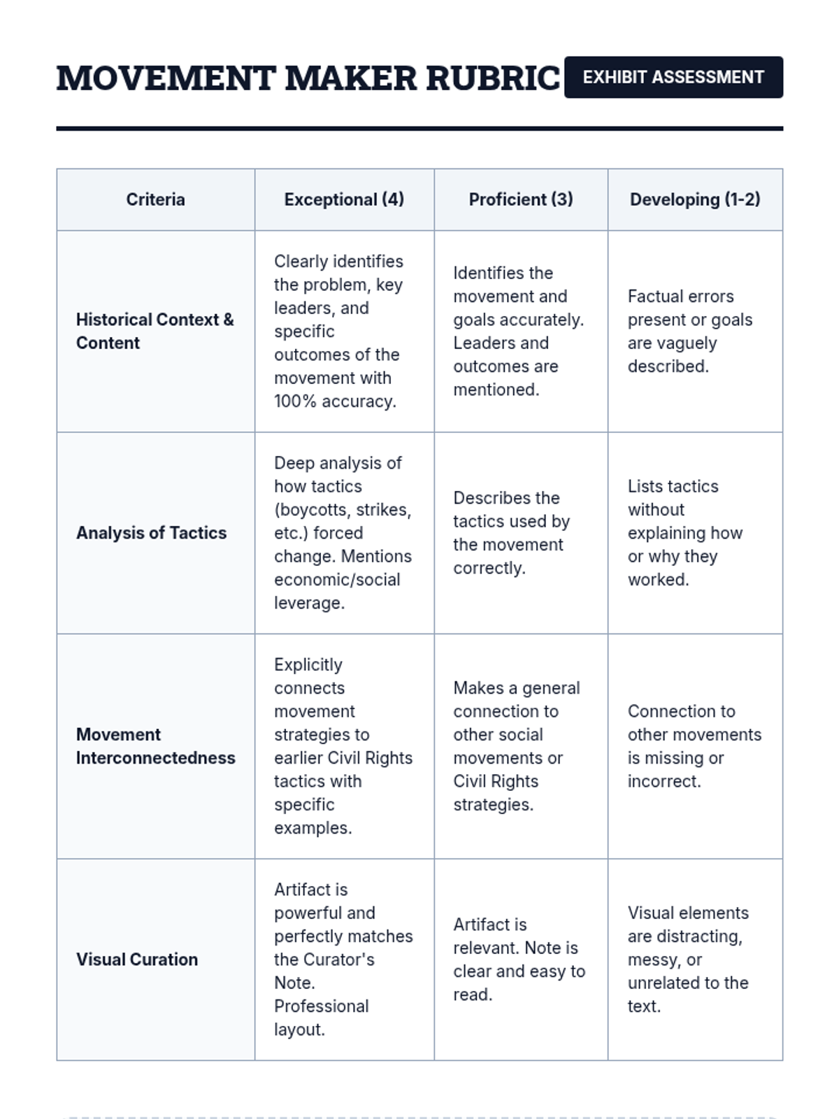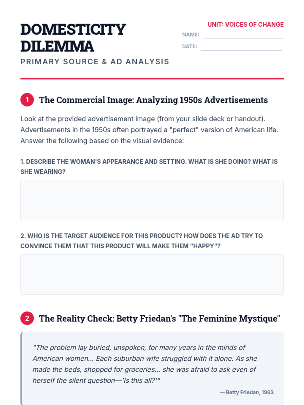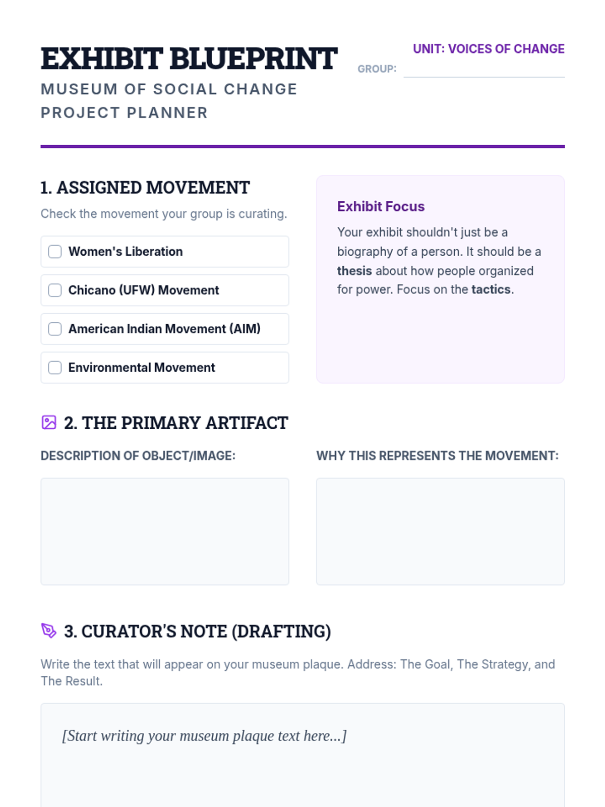 This project-based sequence explores the explosion of social activism in the 1960s and 70s, focusing on feminism, the Chicano movement, environmentalism, and Native American activism. Students research specific movements to curate a 'Museum of Social Change' exhibit, identifying interconnected tactics and goals.
