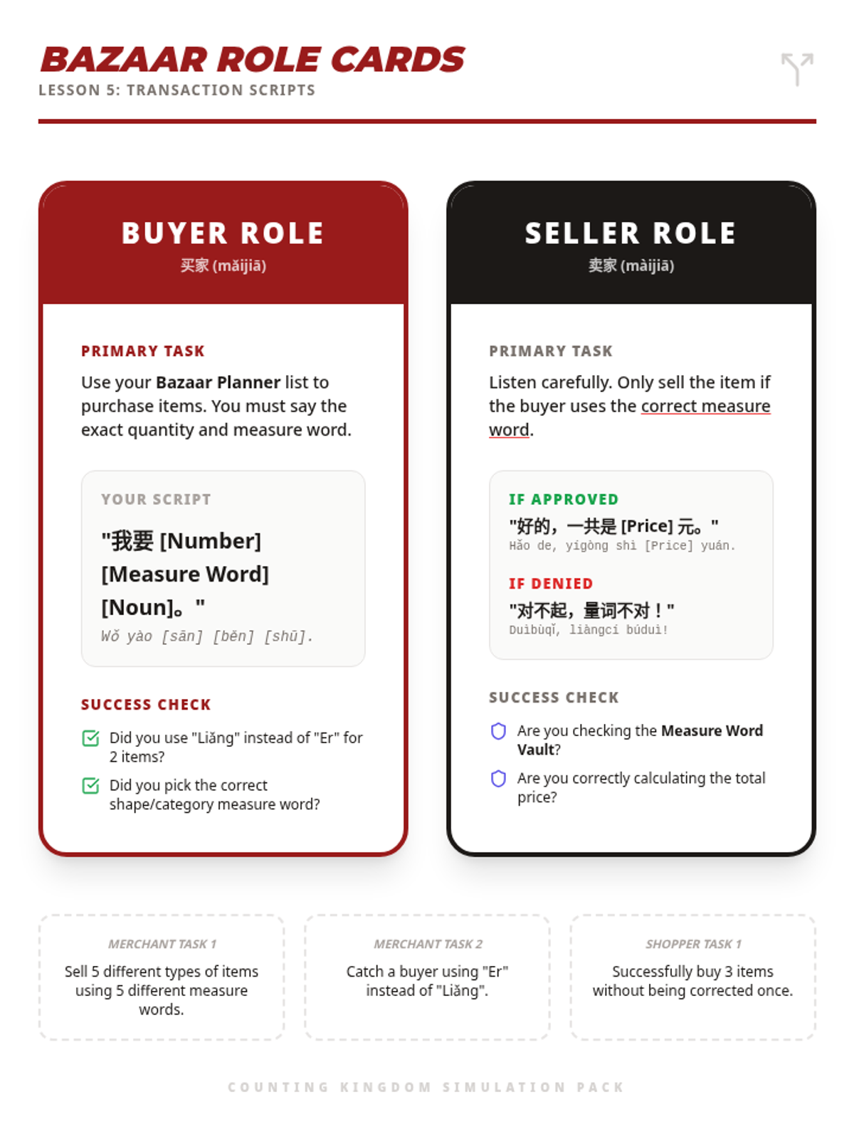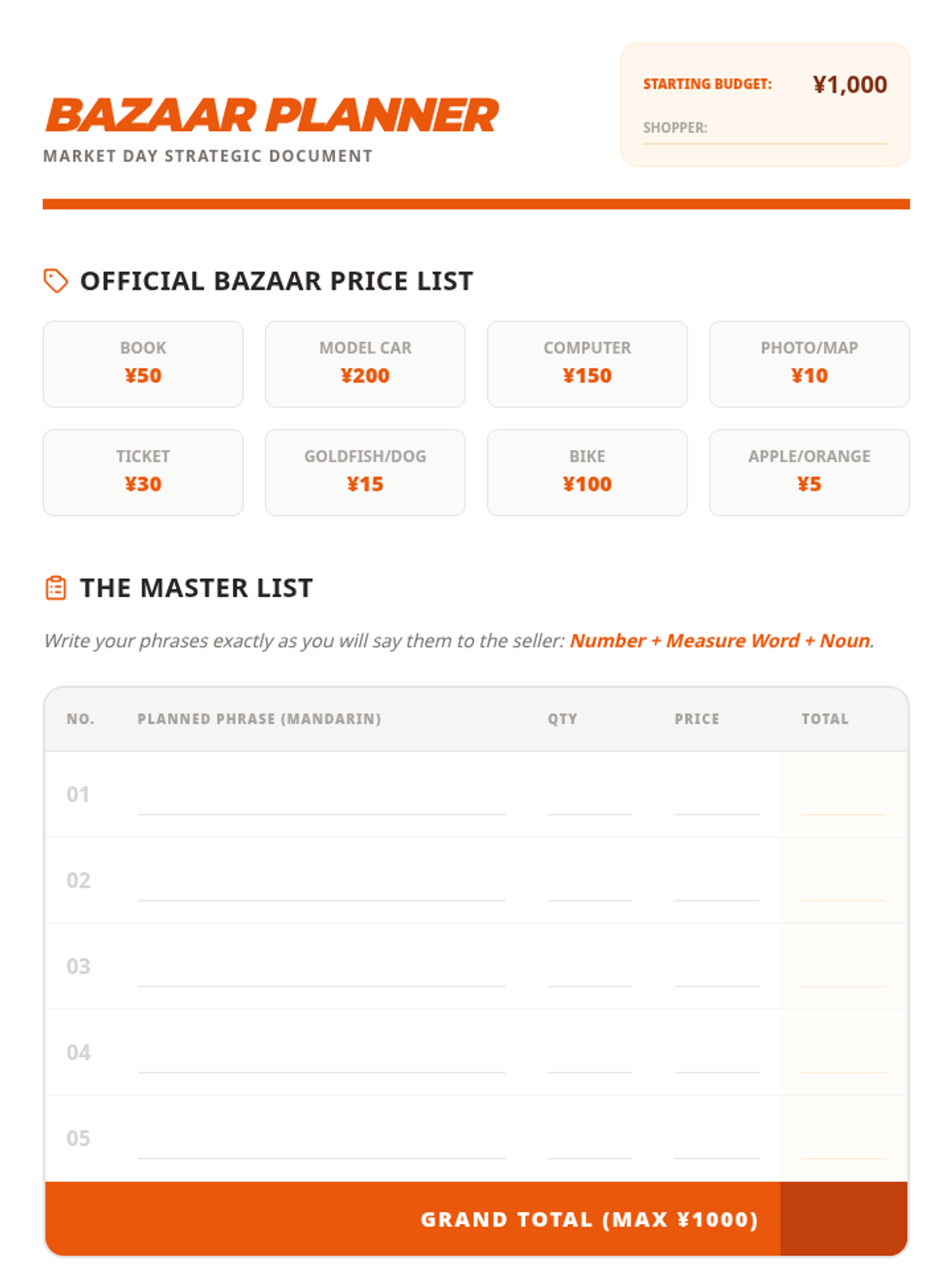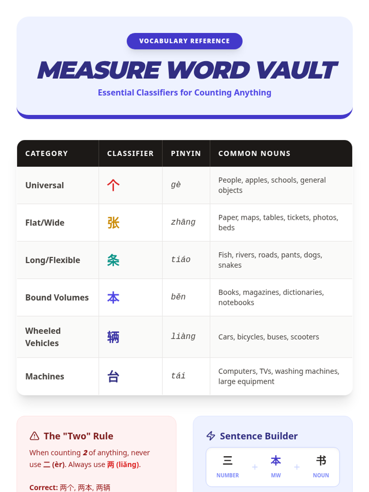 This sequence explores the essential role of measure words in Mandarin Chinese, progressing from basic conceptual understanding to shape-based categorization and finally to real-world application in a market simulation. Students move beyond the generic 'gè' to master specific classifiers for various object types.