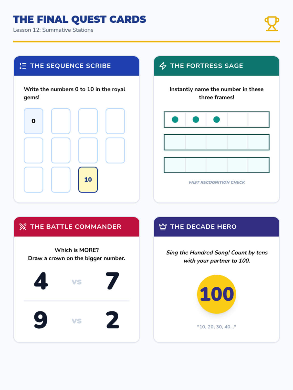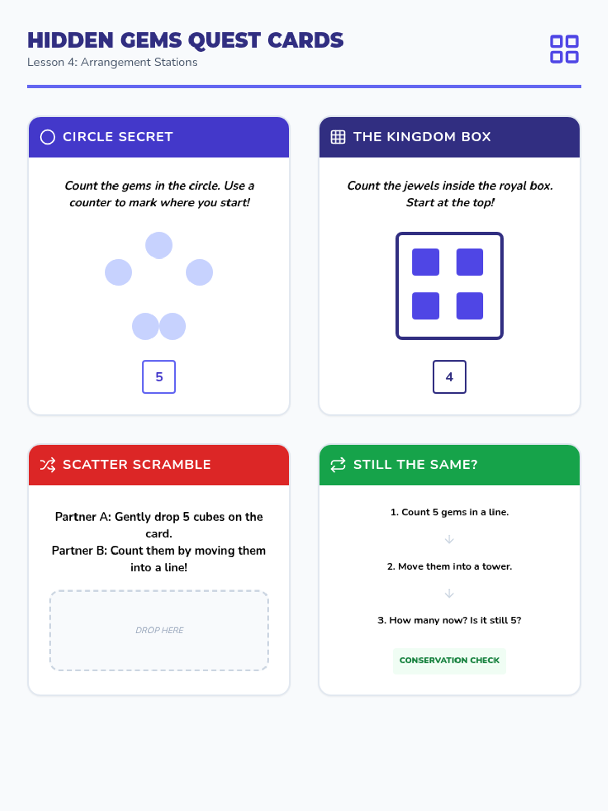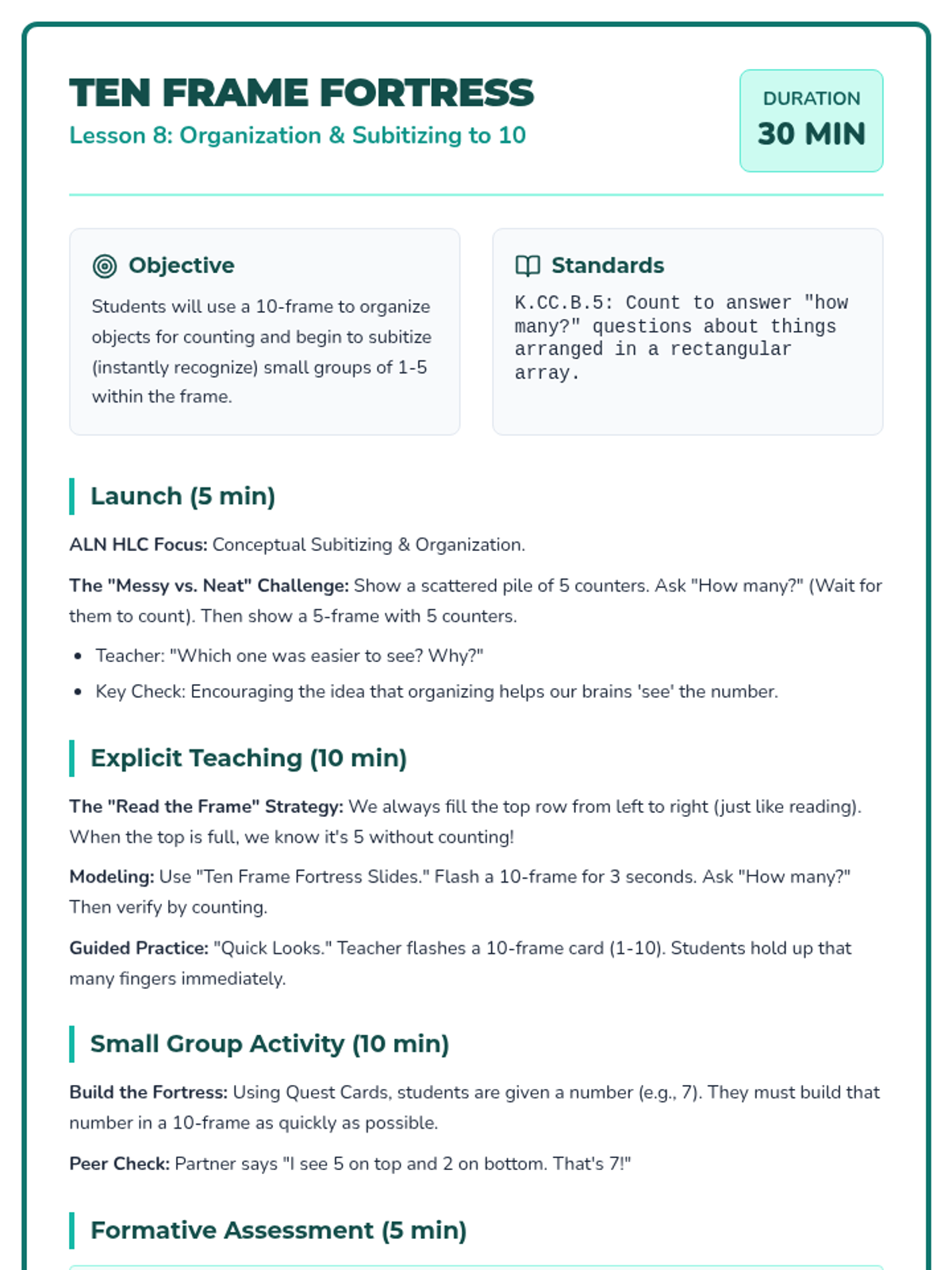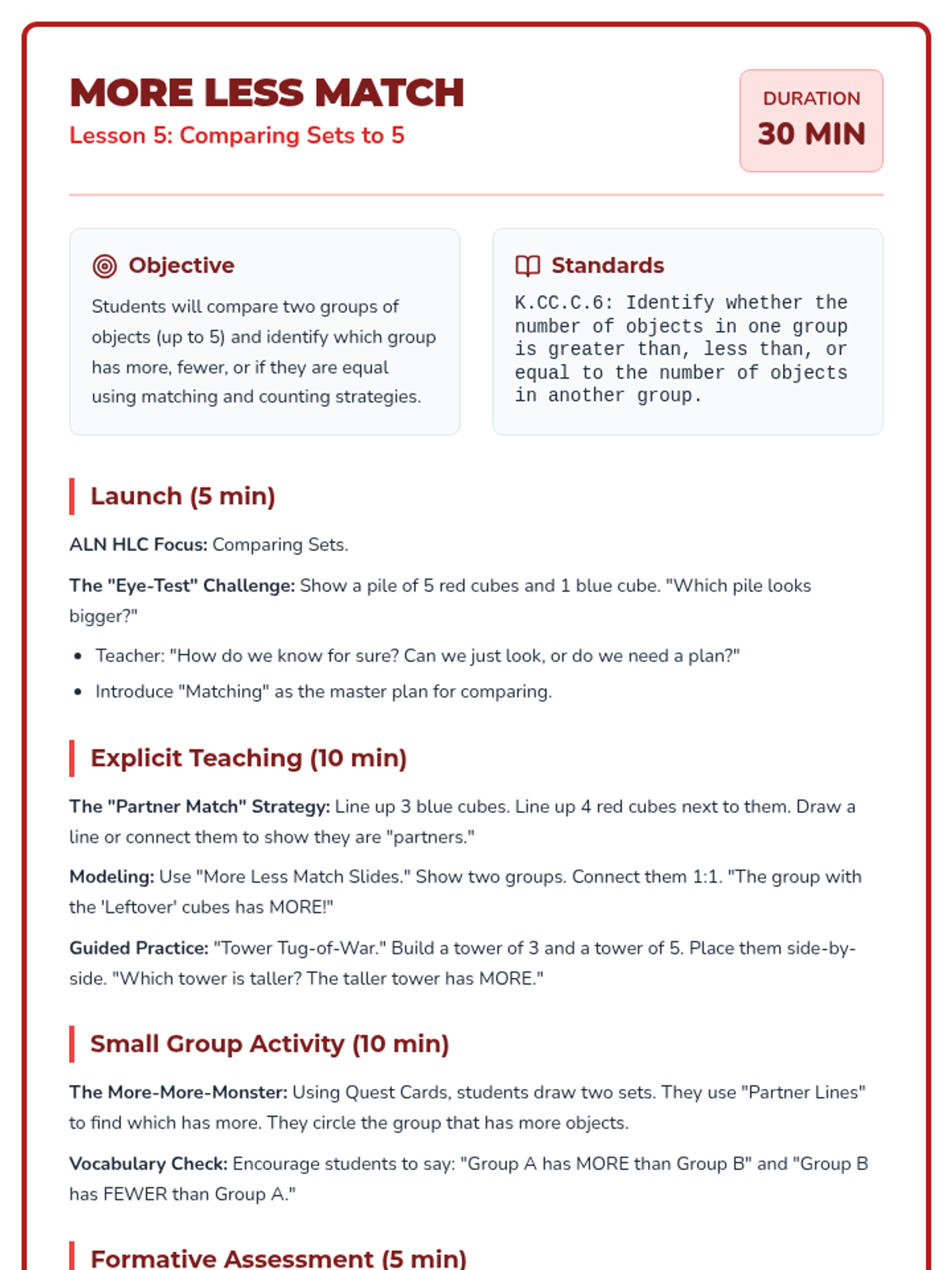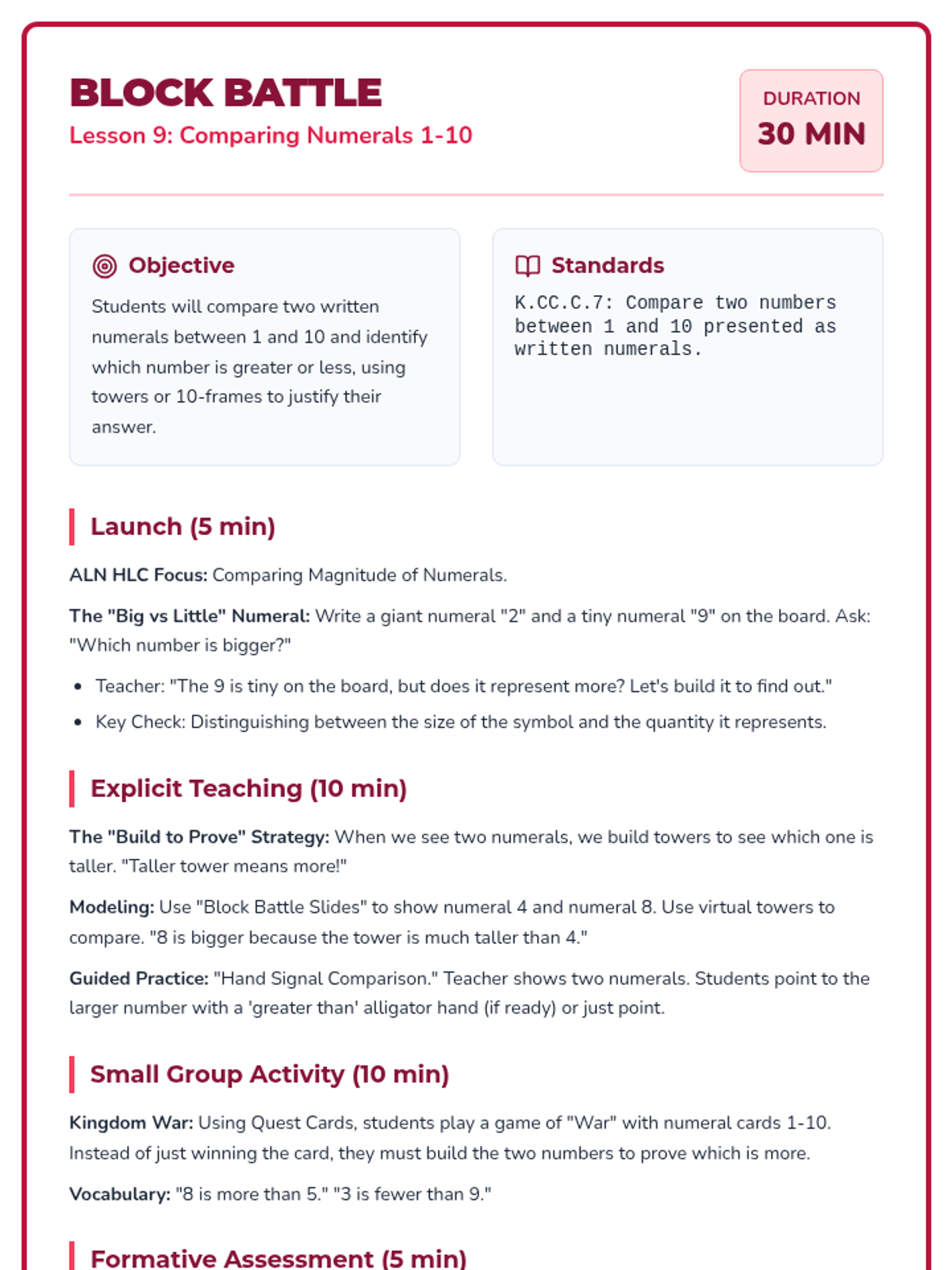 A 12-lesson Tier 2 intervention sequence for Kindergarten focusing on counting, cardinality, and comparison. Based on ALN High Leverage Concepts and IM methods, it uses the 'Counting Kingdom' theme to engage young learners with manipulatives and visual models.