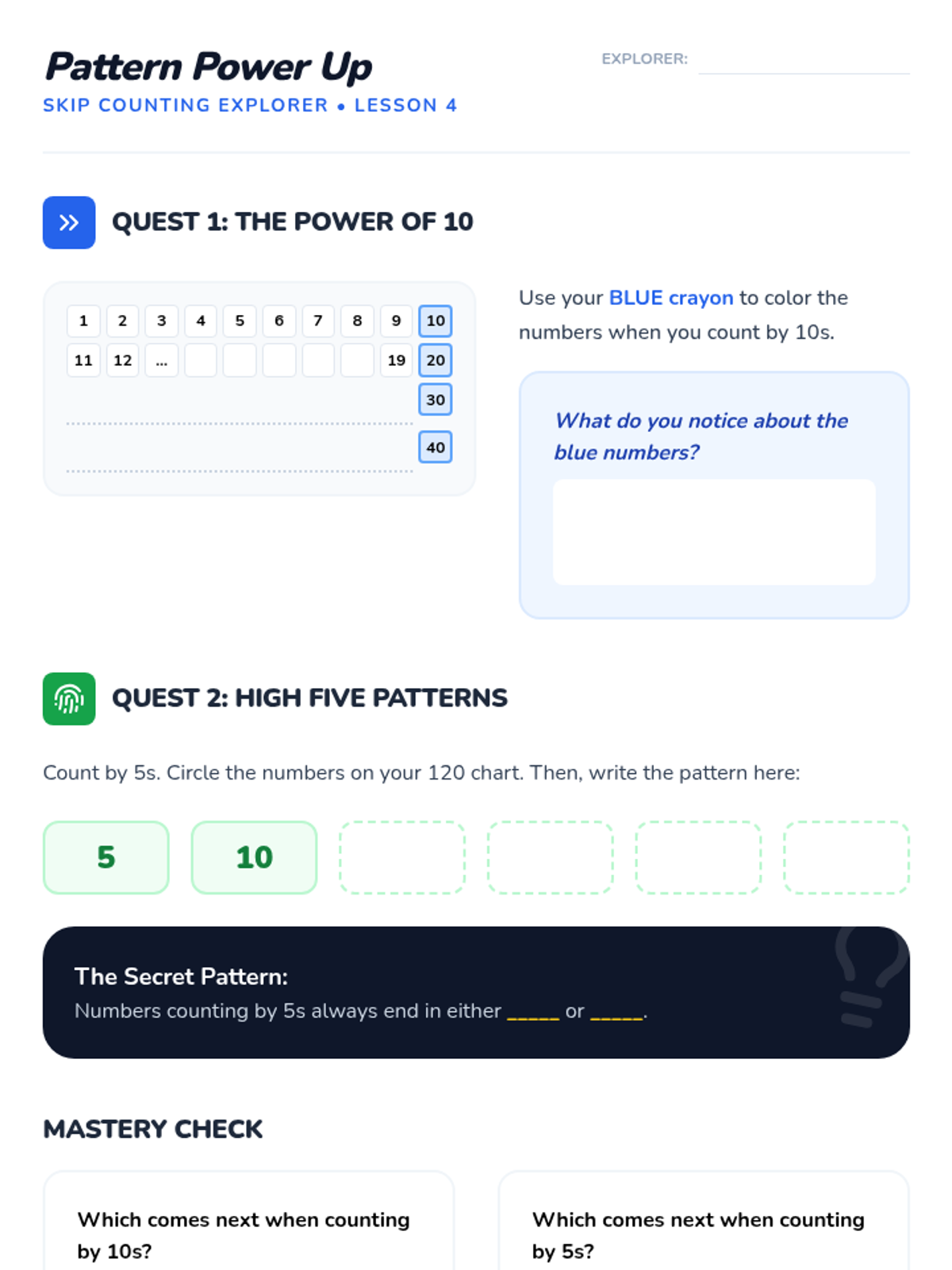 A comprehensive first-grade unit exploring the structure and patterns of the 120 chart. Students move from oral counting fluency past the 100 threshold to identifying complex grid patterns and mastering decade transitions.