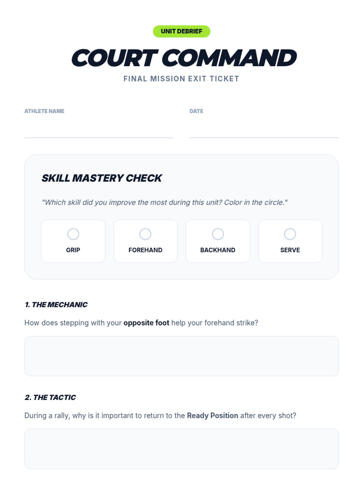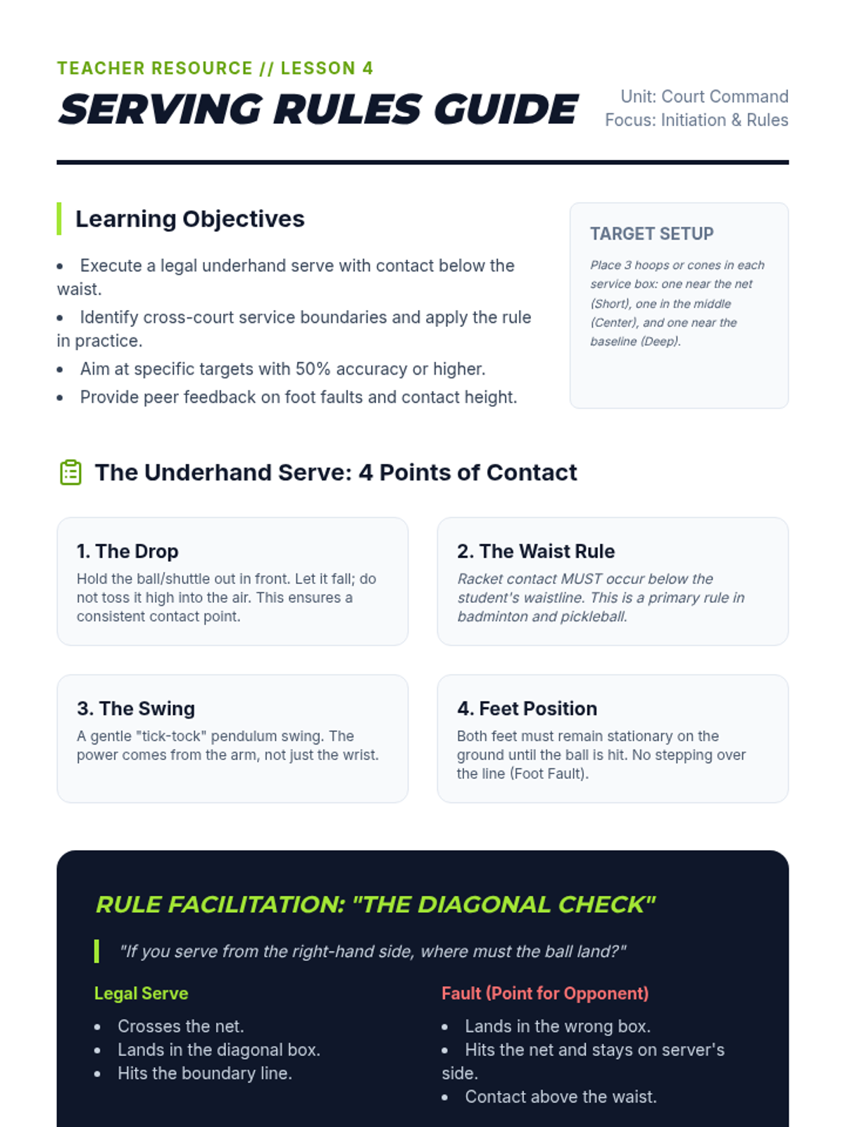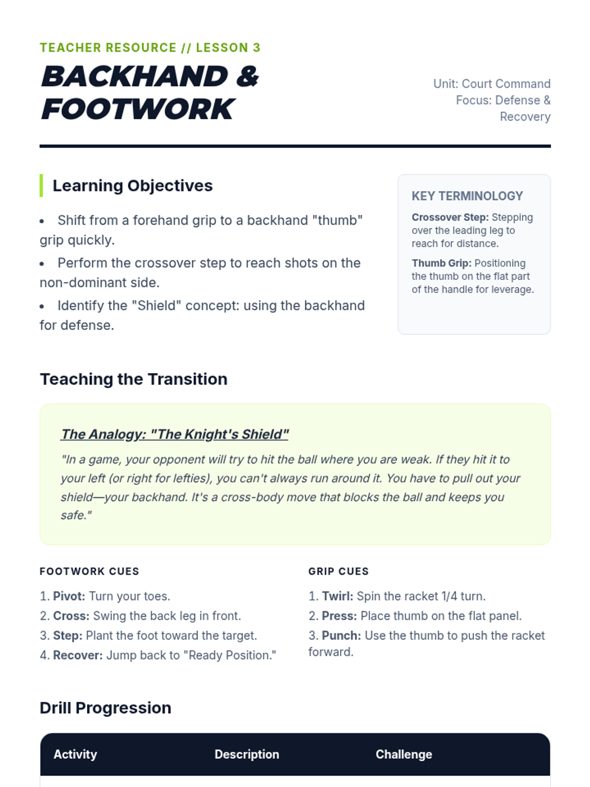 A 5th-grade physical education unit focused on the fundamental mechanics of racket sports, including grip, forehand, backhand, serving, and basic gameplay tactics. Students progress from individual object control to cooperative rallying and competitive modified games.