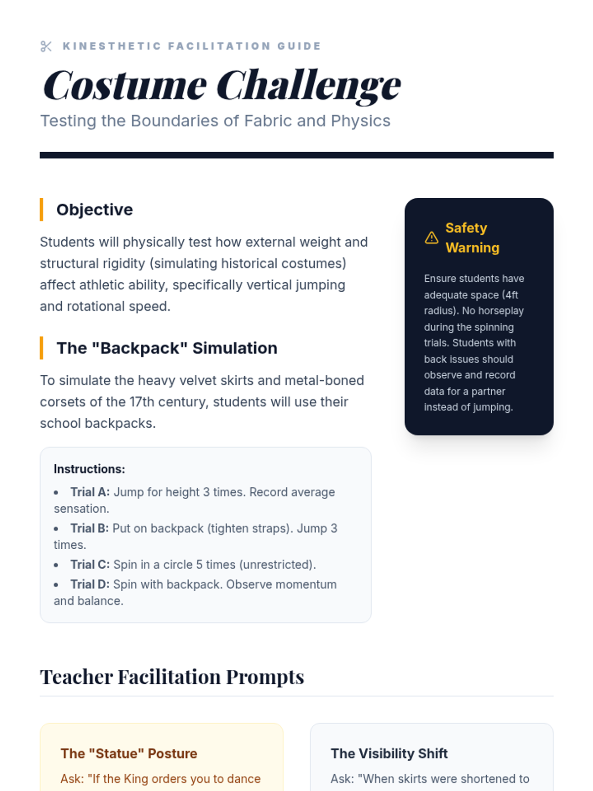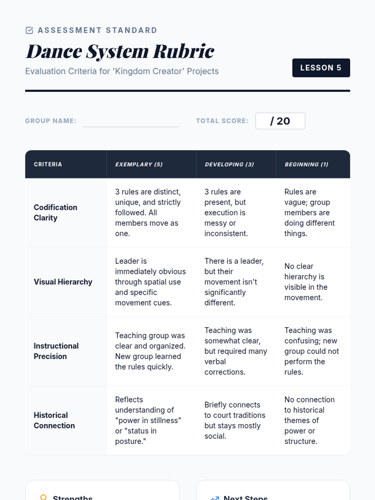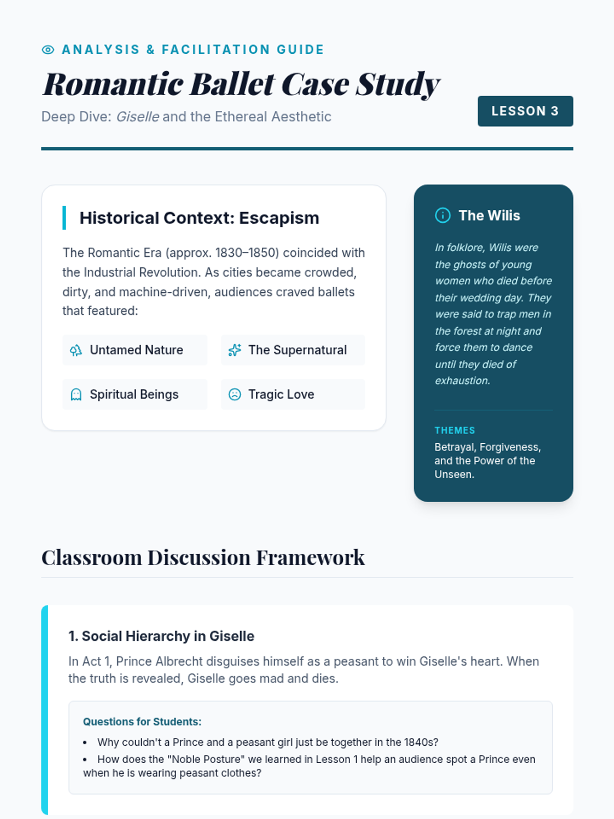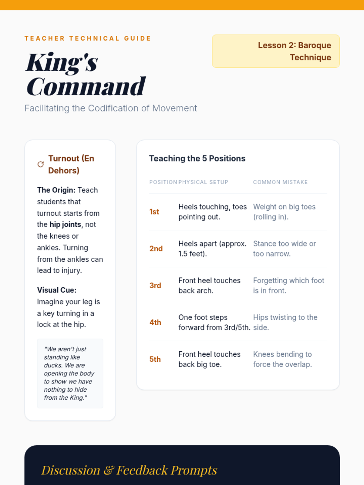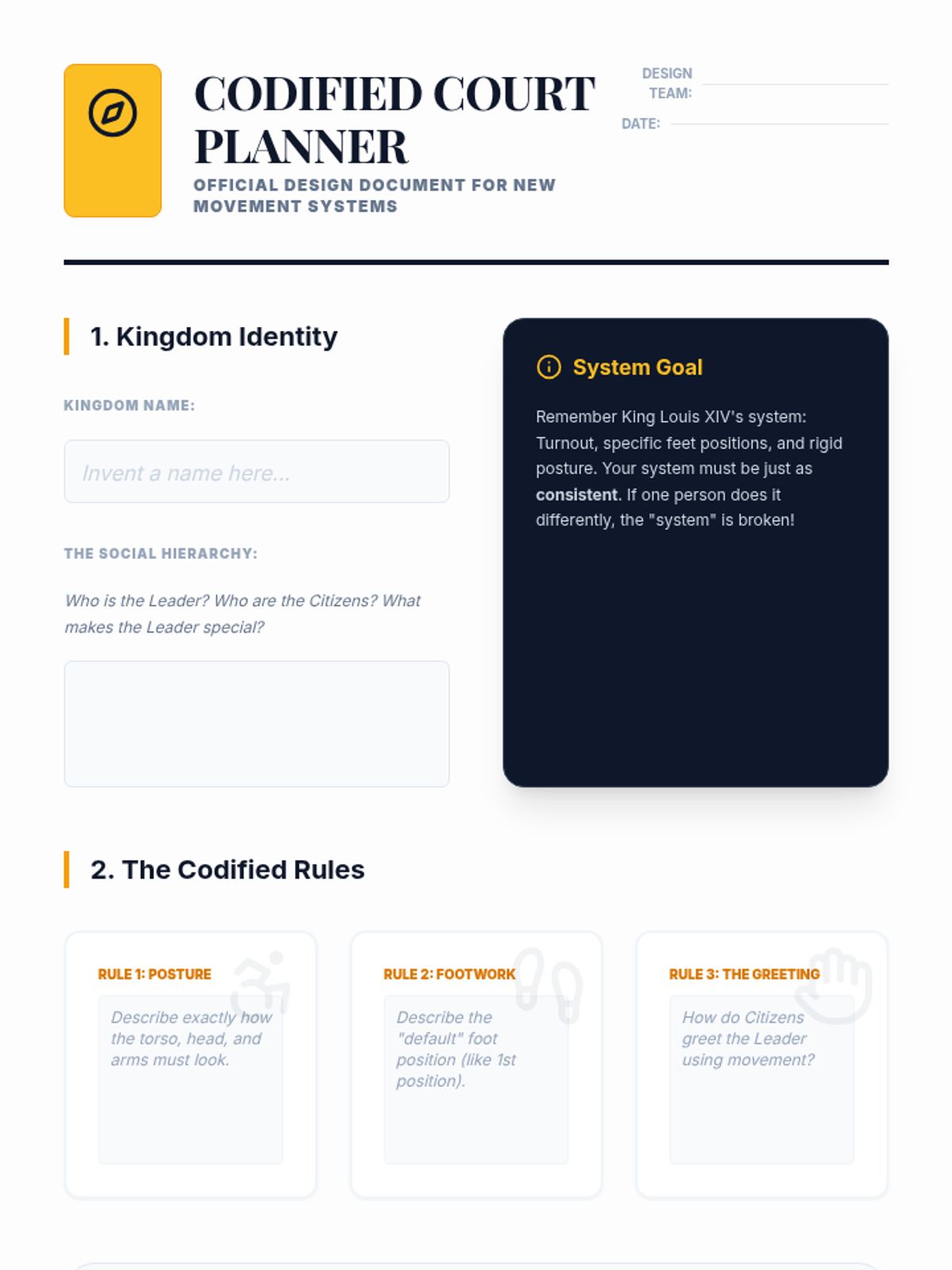 A journey through the history of classical dance, exploring how power, fashion, and social hierarchy shaped the movement styles of the Renaissance and Baroque eras into the formalized art of ballet. Students will move from court etiquette to the technical rigor of King Louis XIV's court, analyze Romantic era narratives, and create their own codified dance systems.