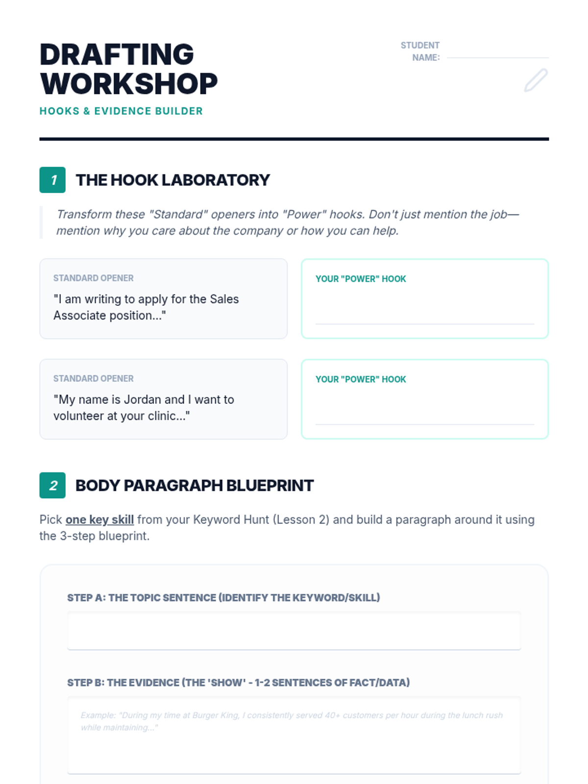 A comprehensive 5-lesson unit for 12th-grade students to master the art of writing persuasive, tailored cover letters. Students learn to decode job descriptions, craft compelling narratives, and apply professional business formatting.