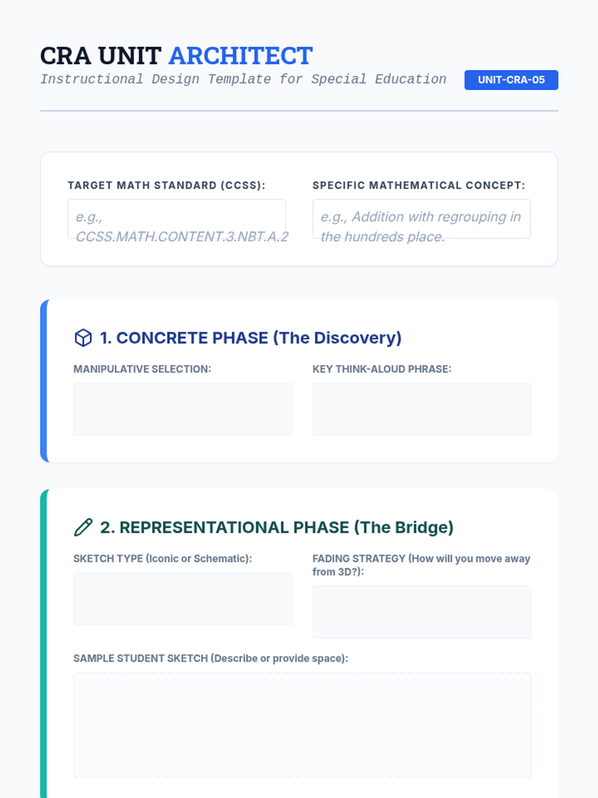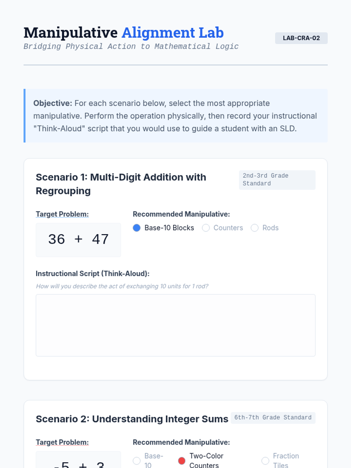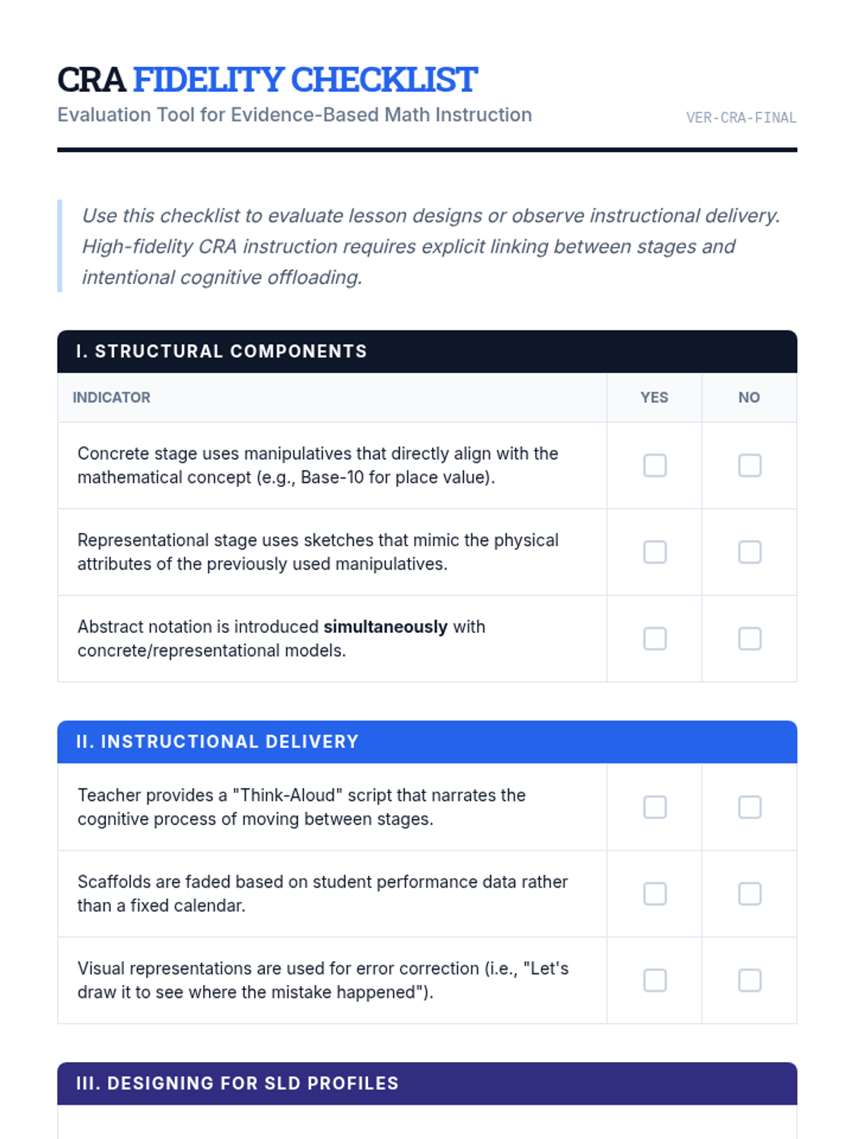 A comprehensive training sequence for pre-service teachers on the Concrete-Representational-Abstract (CRA) framework. This sequence bridges cognitive science with practical instructional strategies to support students with math learning disabilities through visual scaffolding.