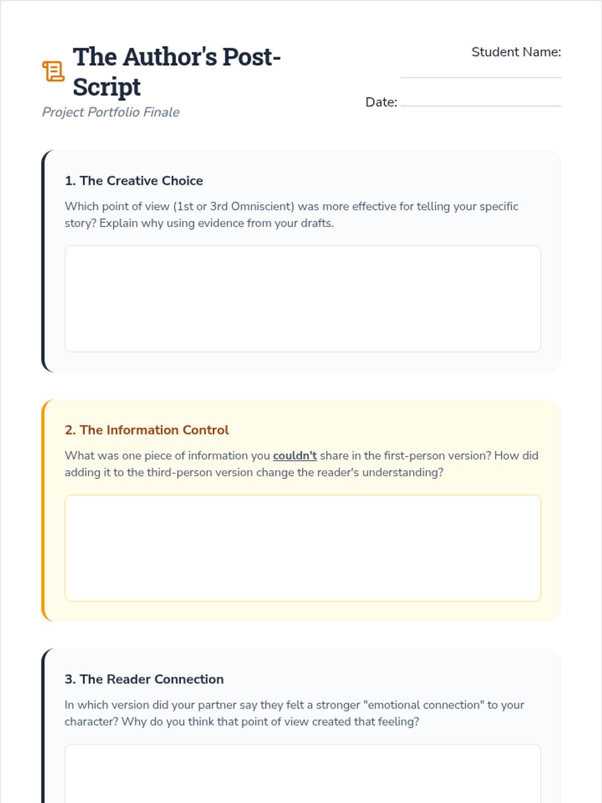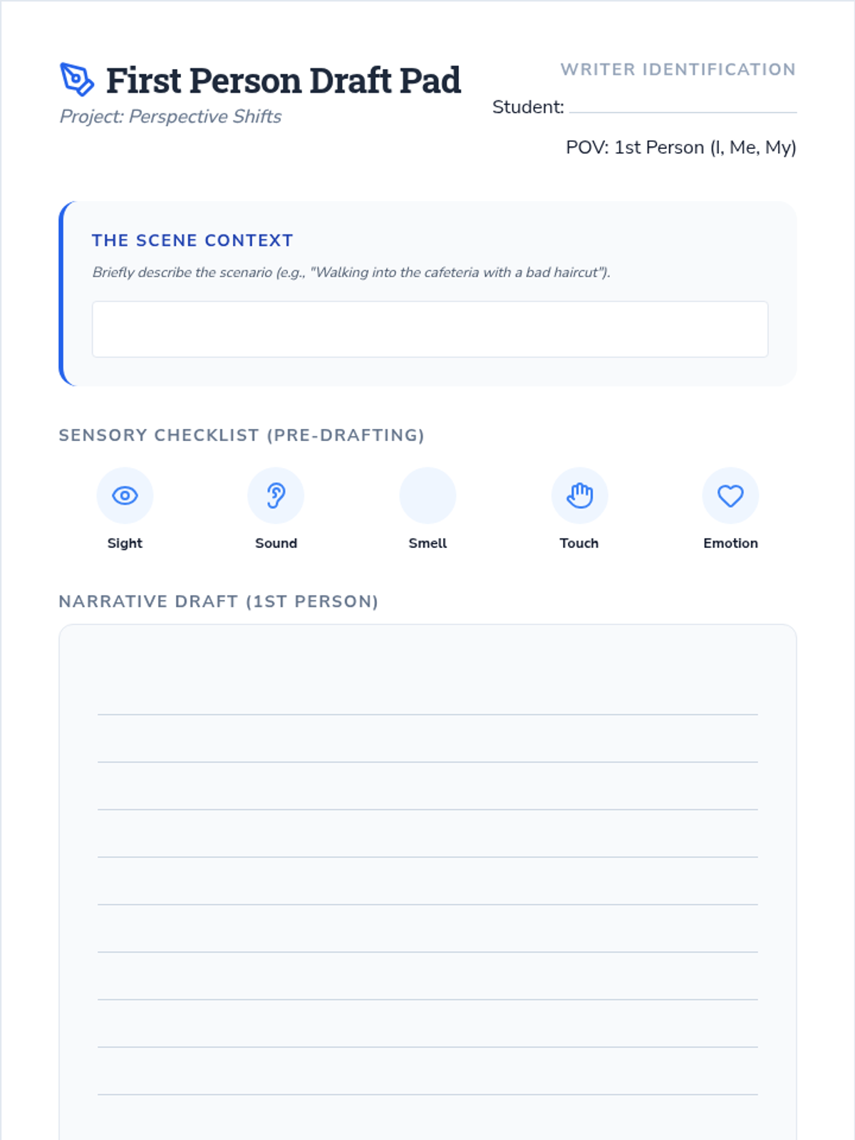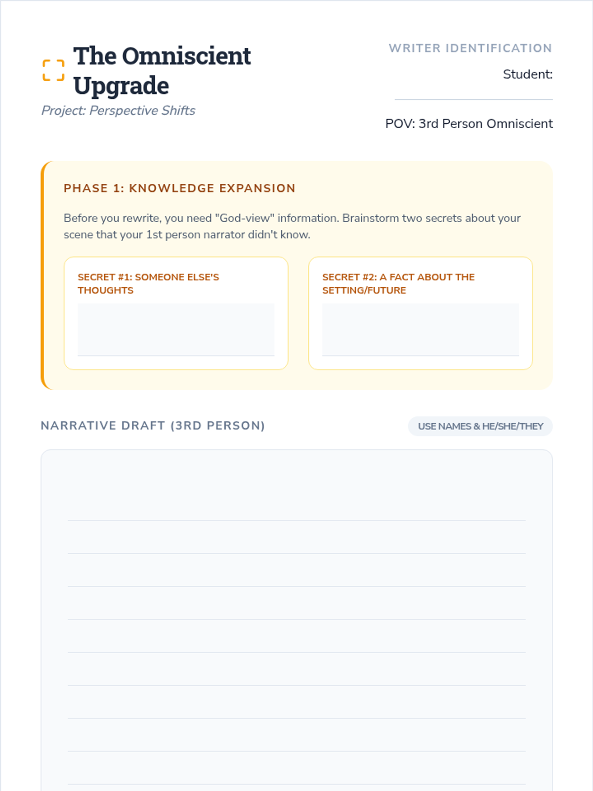 A project-based unit where 6th-grade students explore the power of point of view by drafting and adapting a narrative through different perspectives, culminating in a reflective writing portfolio.