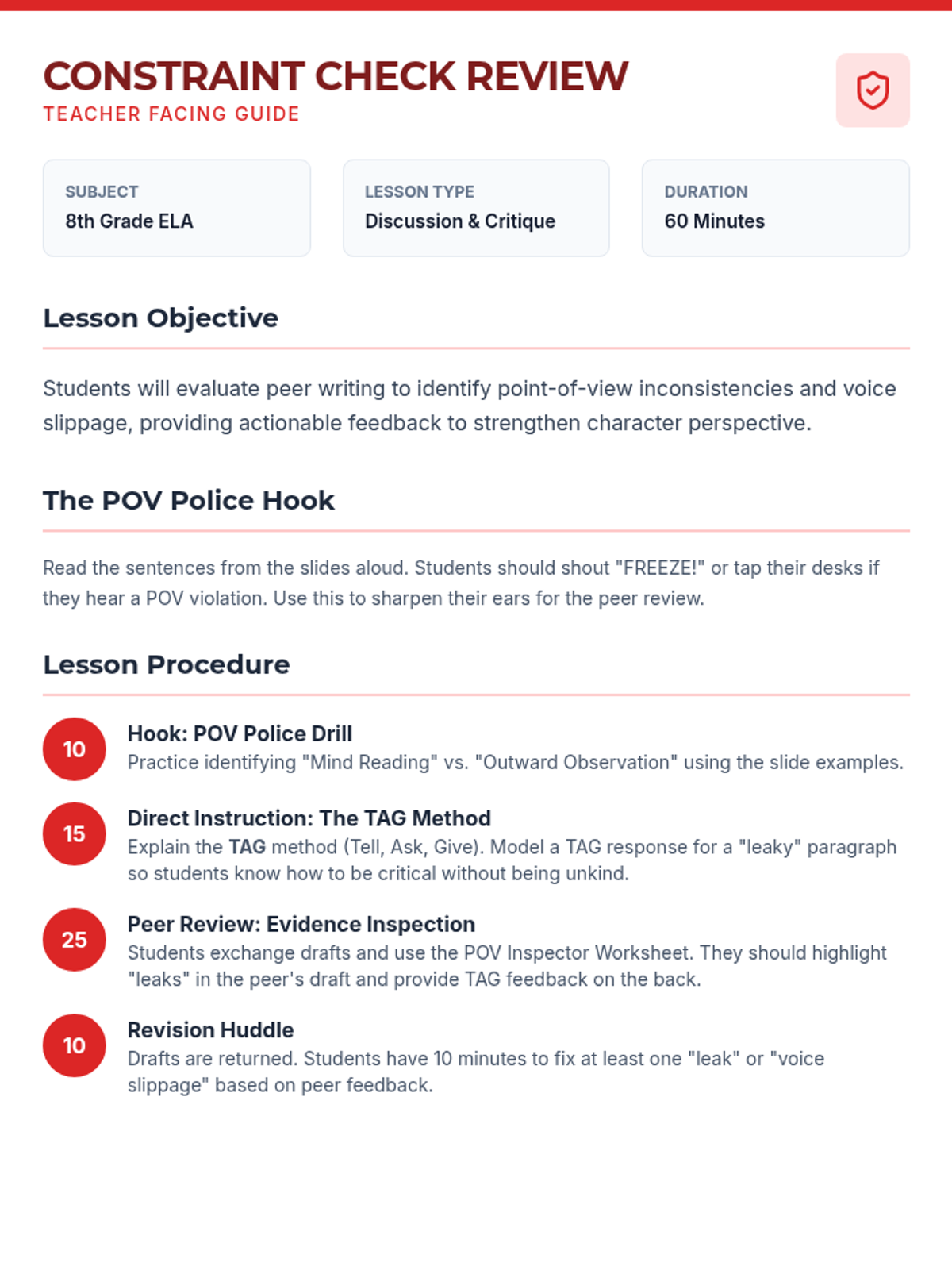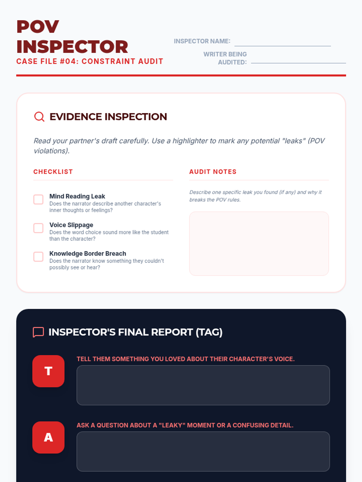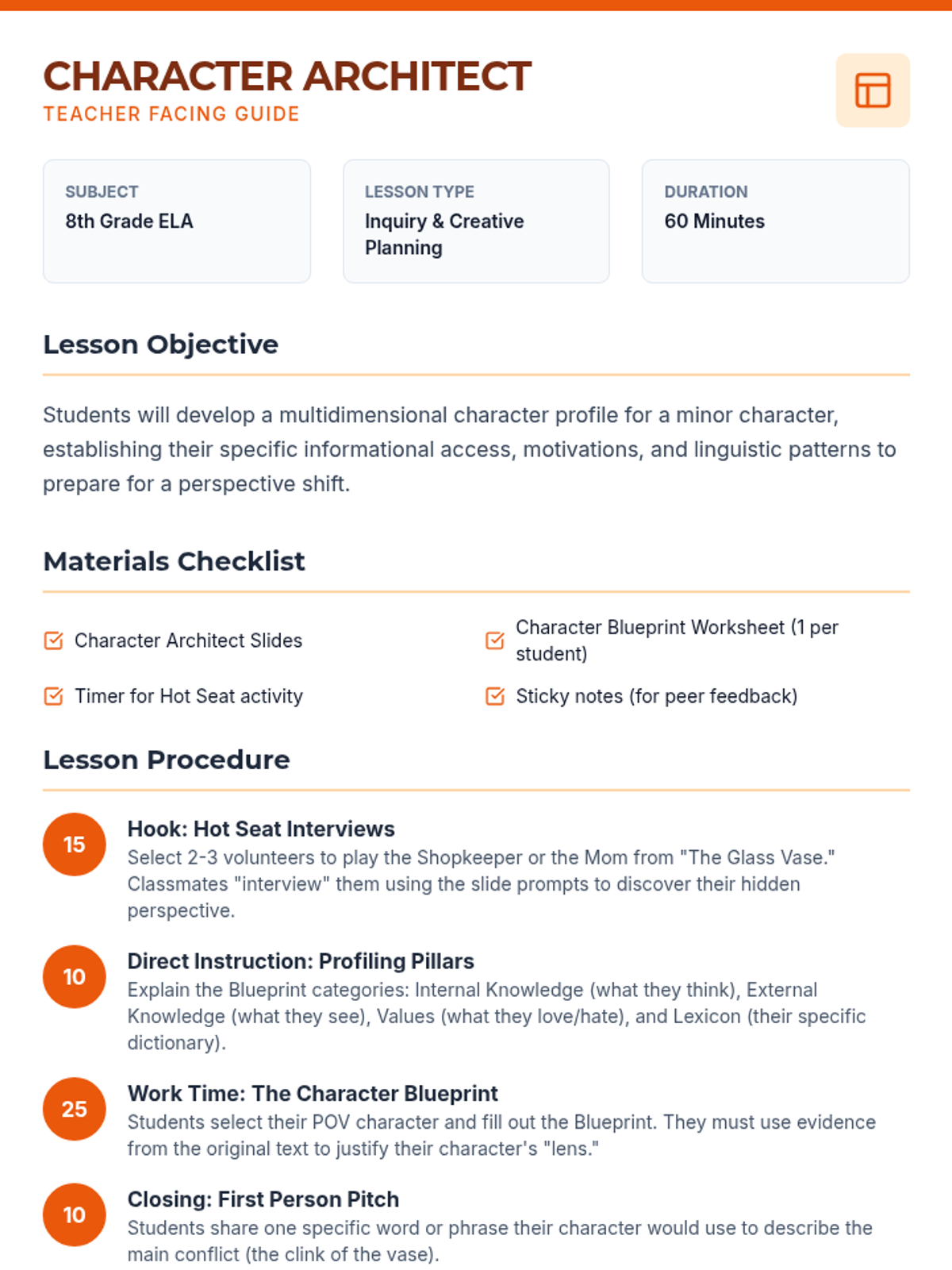 Students explore how shifting a narrative's point of view transforms its meaning, tone, and character dynamics. Through analysis and creative rewriting, they master the mechanics of different narrative perspectives.