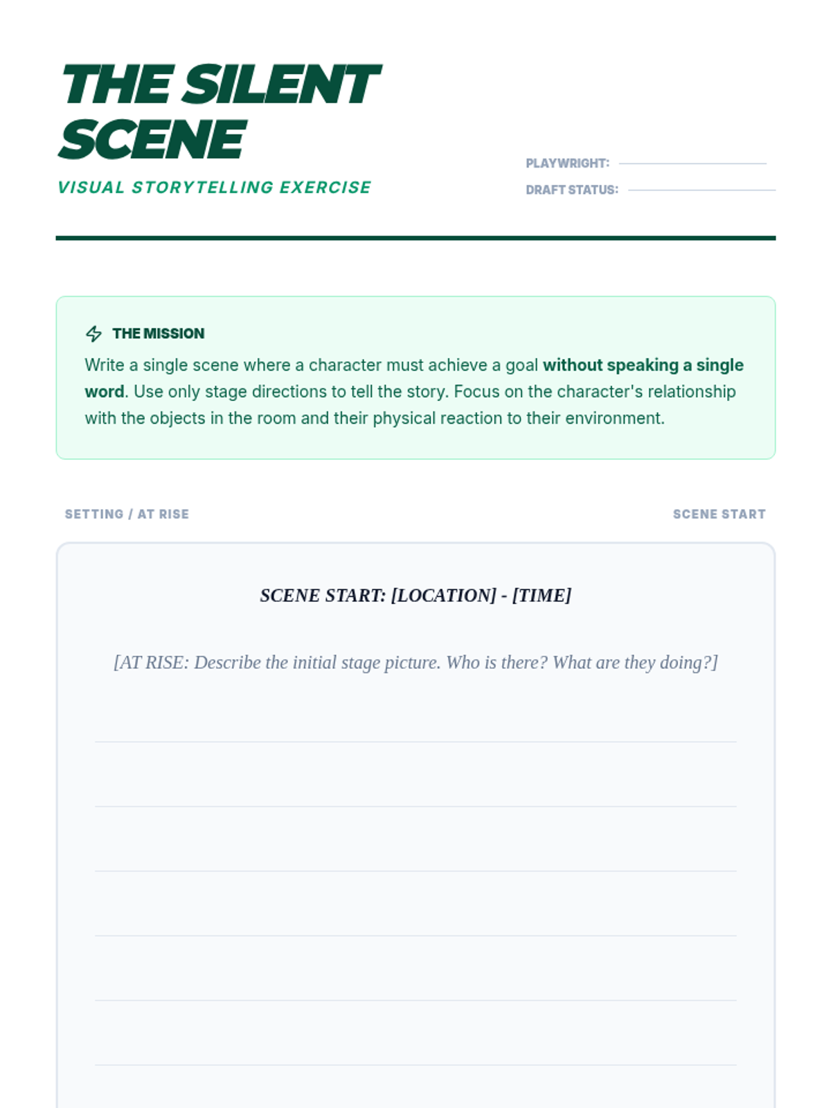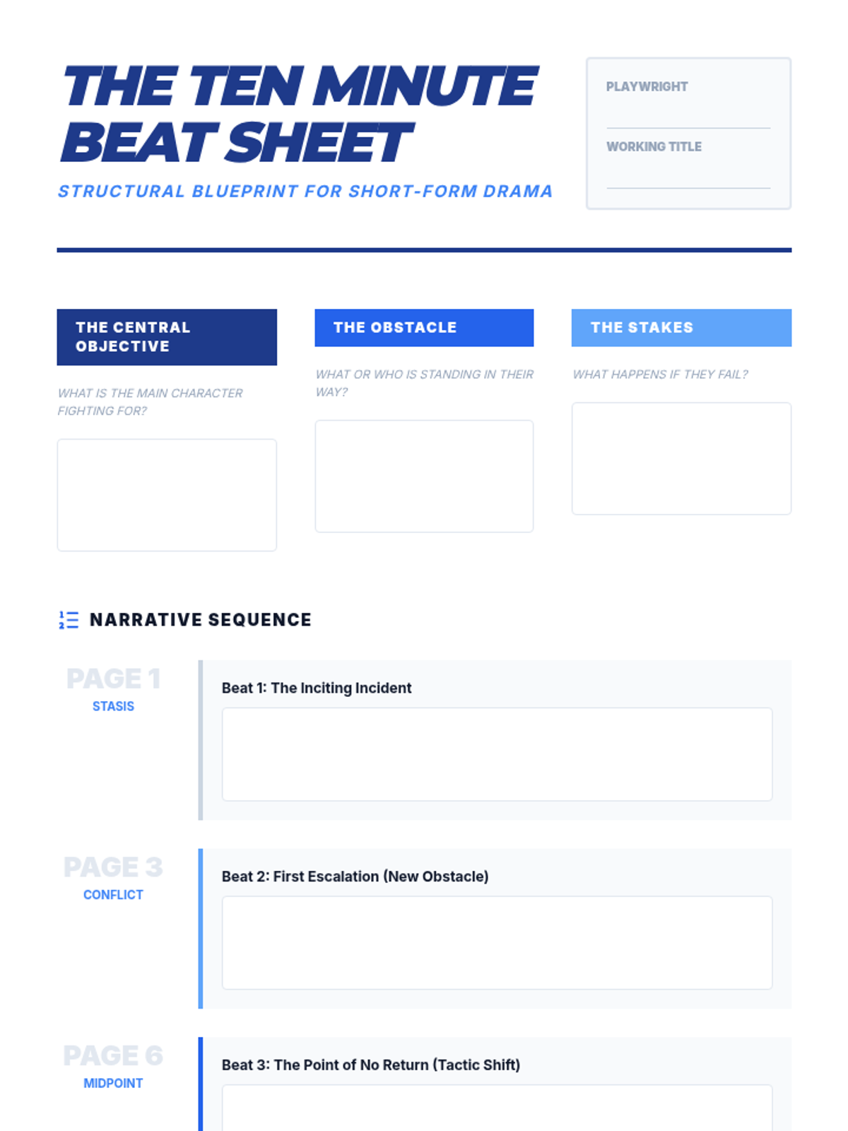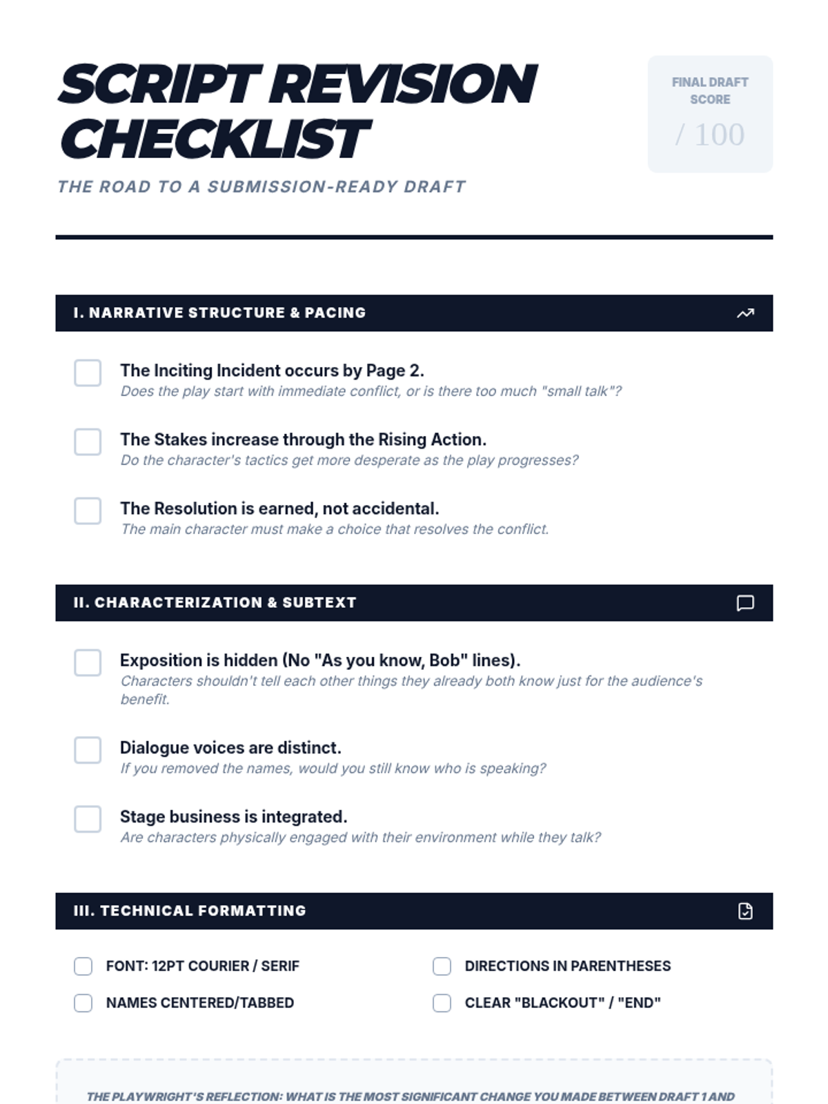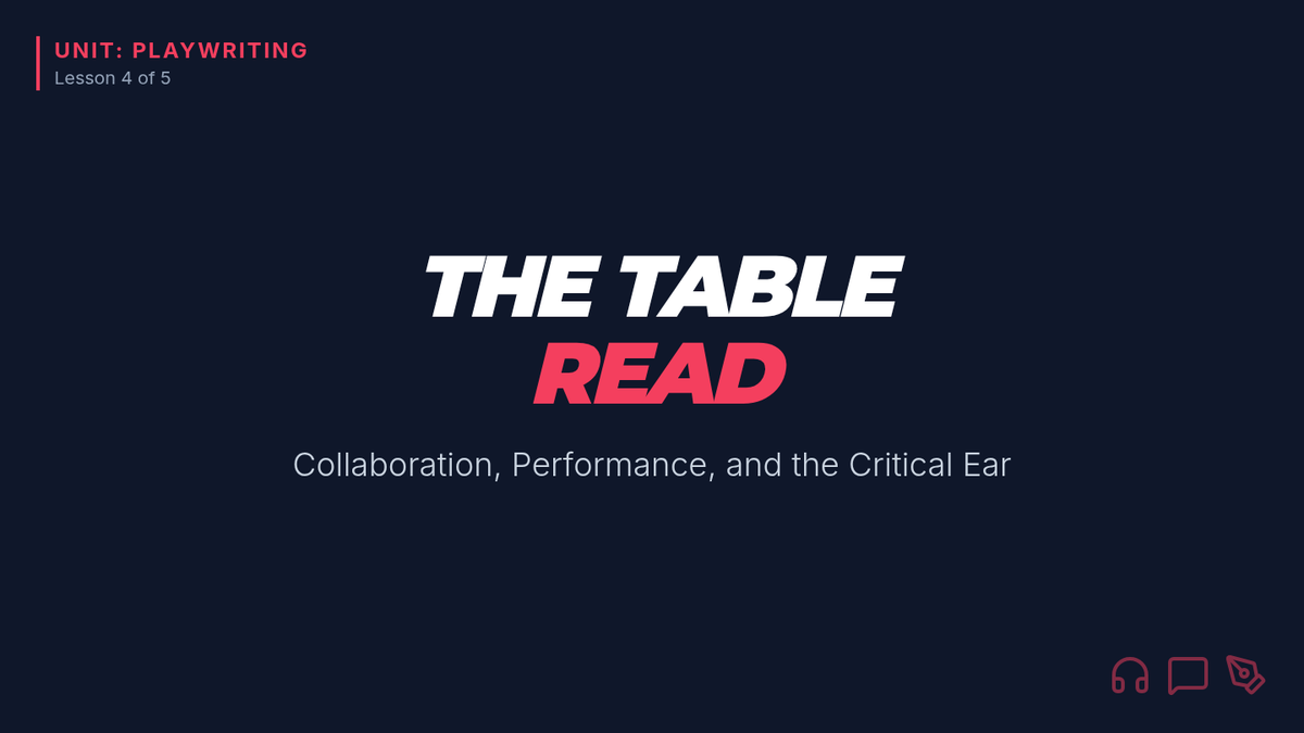 A comprehensive playwriting sequence that takes 10th-grade students from initial character creation to a polished ten-minute play script. Students explore archetypes, master narrative structure, learn the importance of stage business, and engage in the collaborative revision process of a table read.