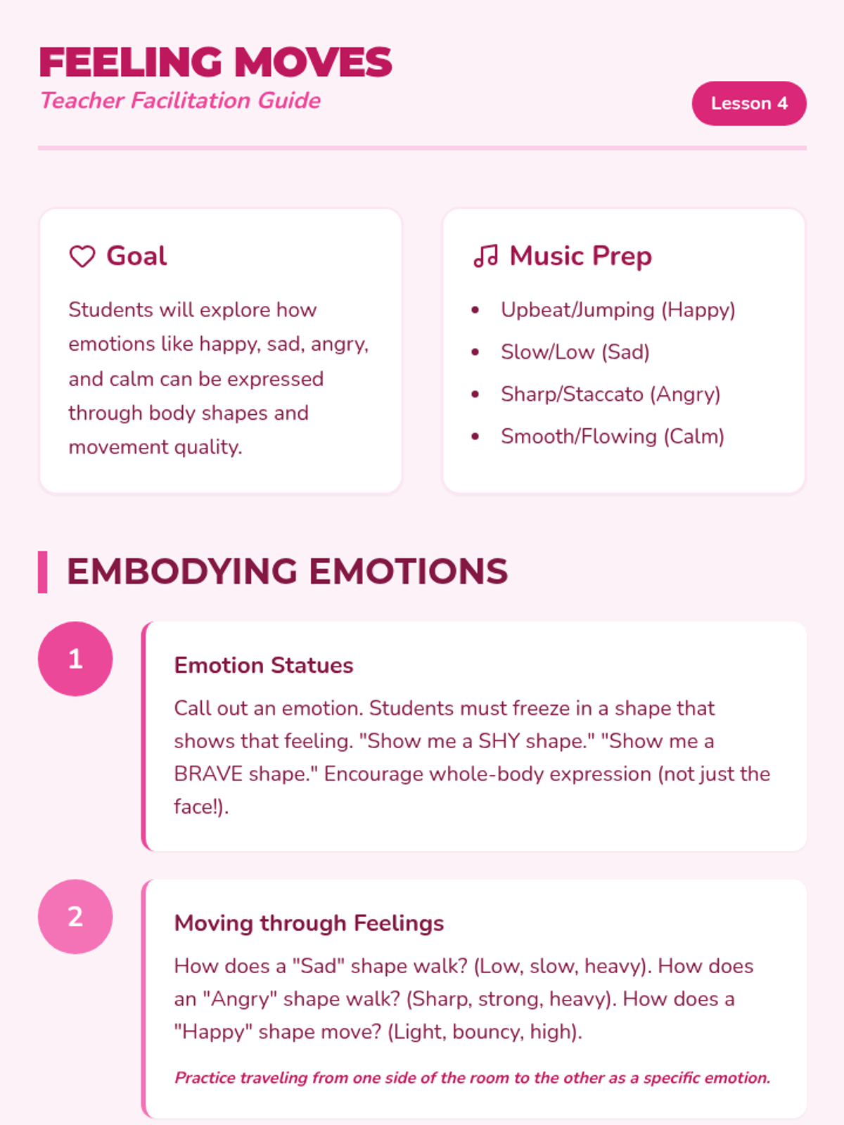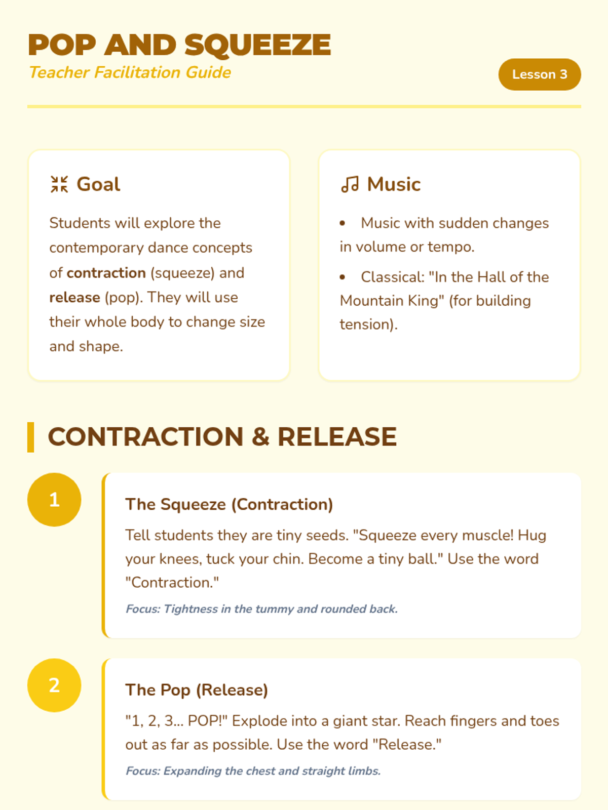 This sequence introduces Kindergarten students to Contemporary and Creative Dance. It covers breath-led movement, safe floor transitions, the concepts of contraction and release, emotional expression through shape, and guided improvisation.