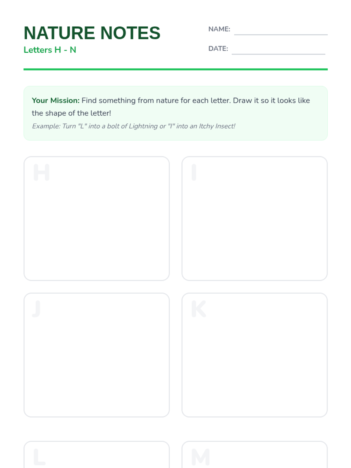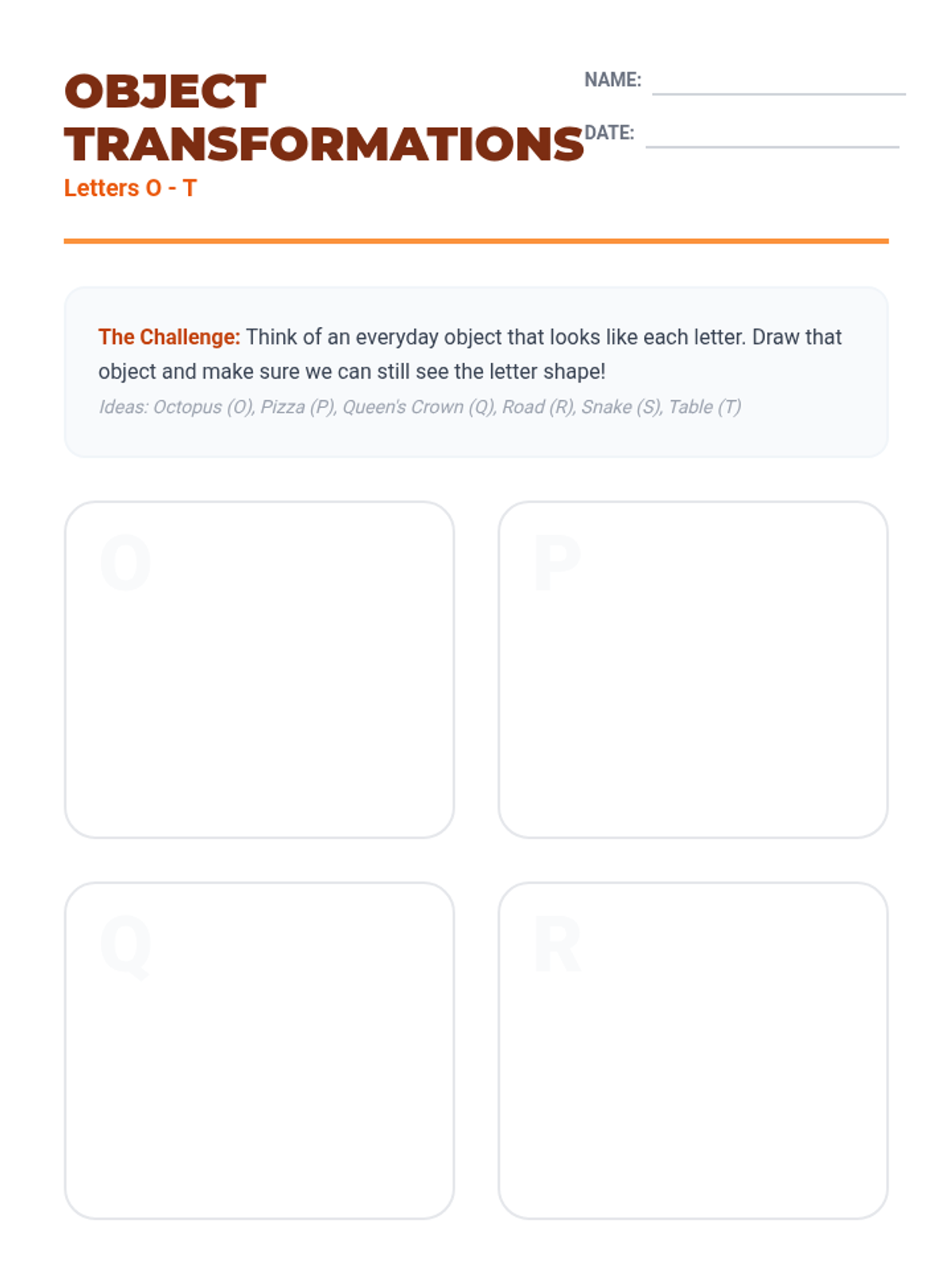A project-based sequence where students create visual mnemonics for uppercase letters A-Z, transforming letter shapes into memorable characters, nature elements, and objects to cement sound-symbol relationships.