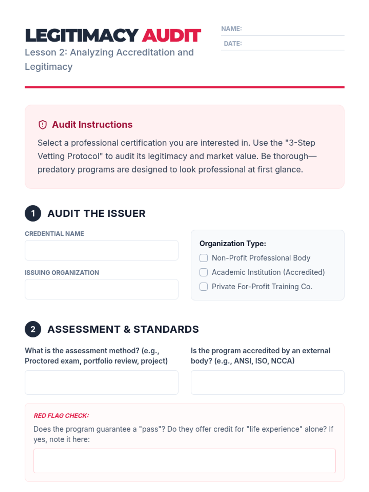 This sequence guides undergraduate students through the complex landscape of professional certifications, micro-credentials, and licensures. Students will learn to evaluate the market value, legitimacy, and strategic fit of various post-secondary credentials to enhance their early career trajectories.