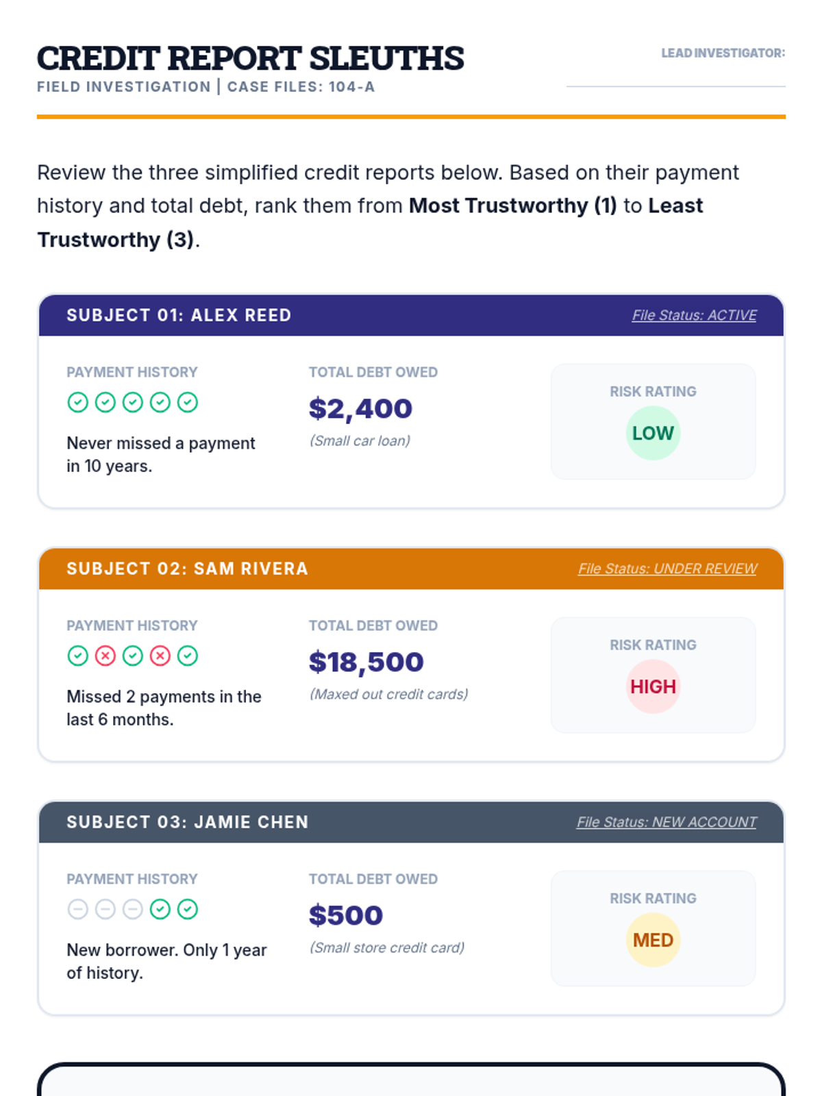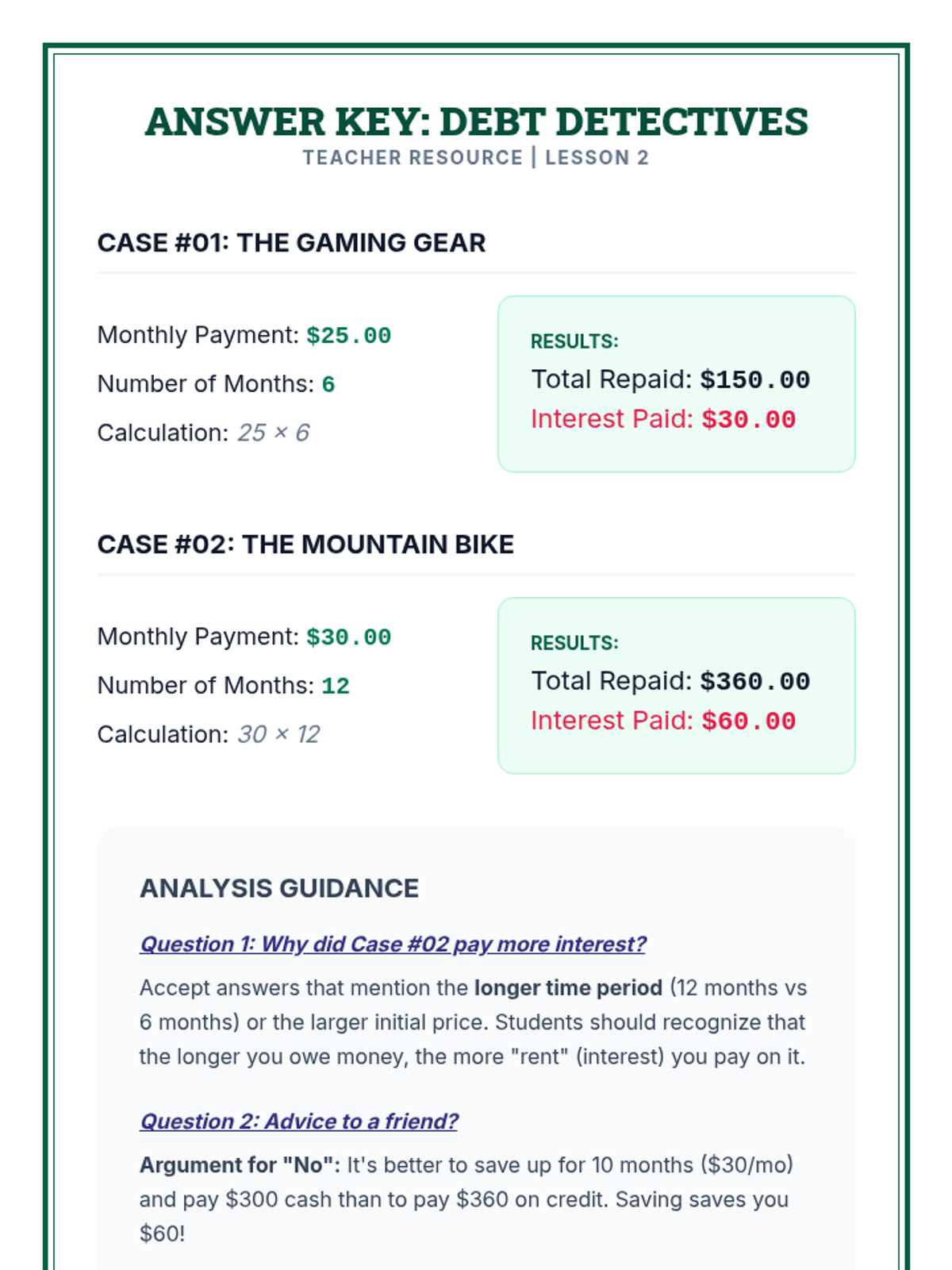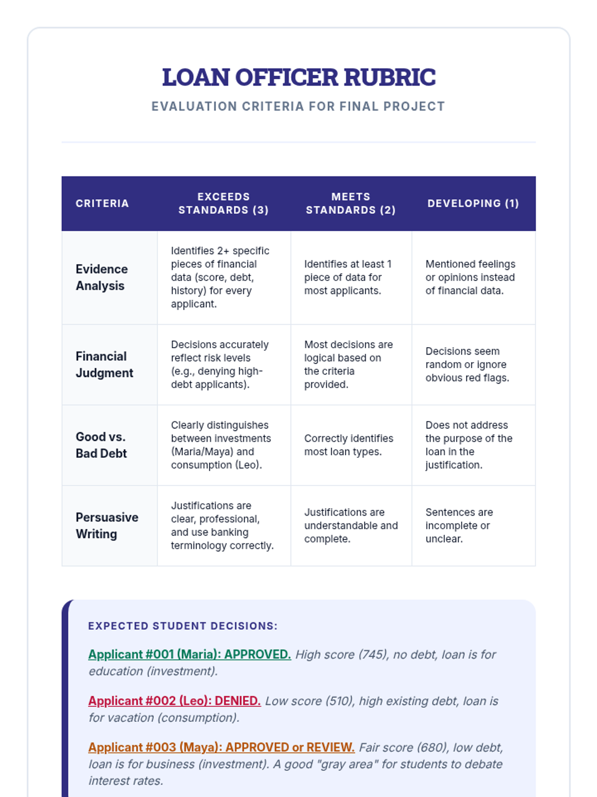 A comprehensive 5th-grade unit on credit, debt, interest rates, and financial responsibility, culminating in a loan officer simulation.