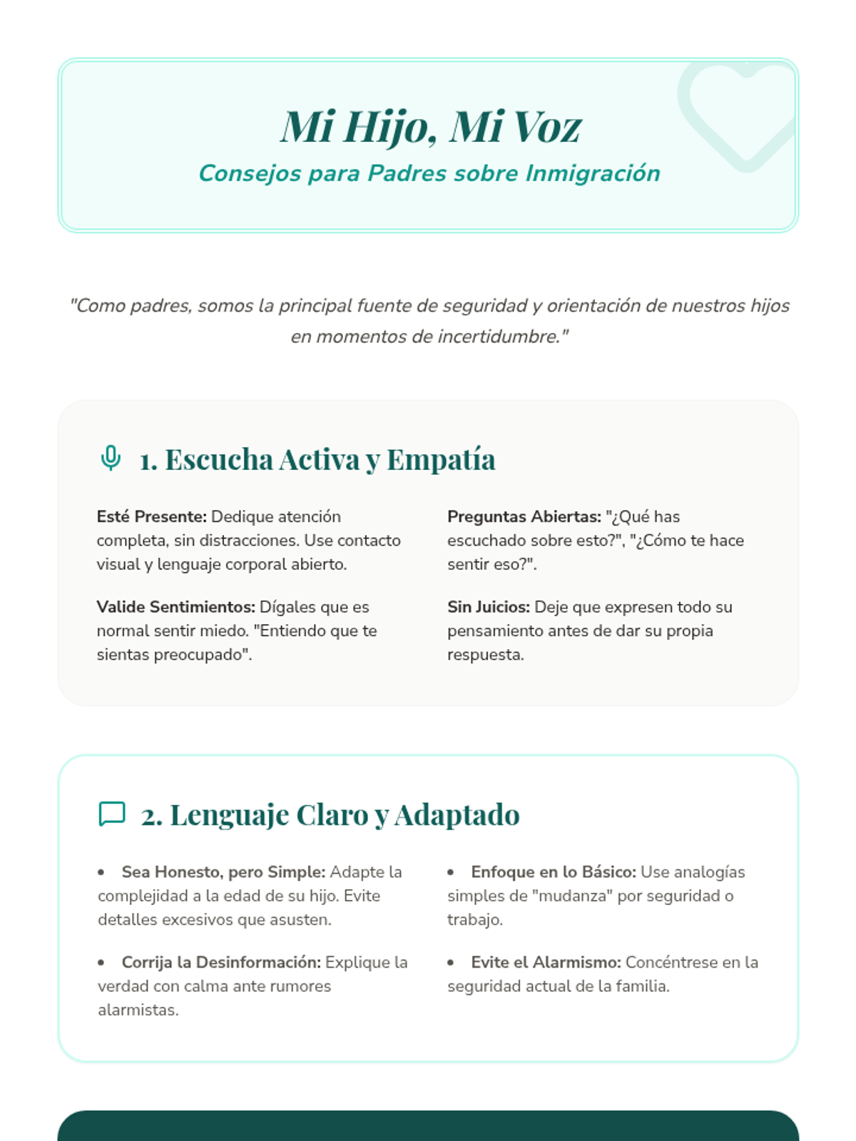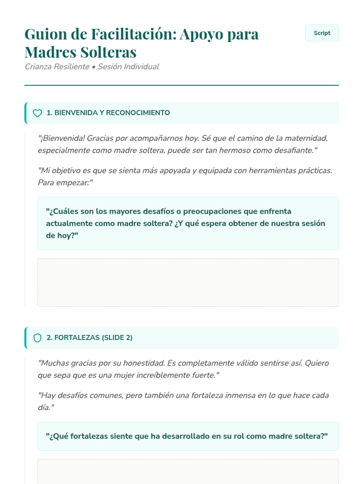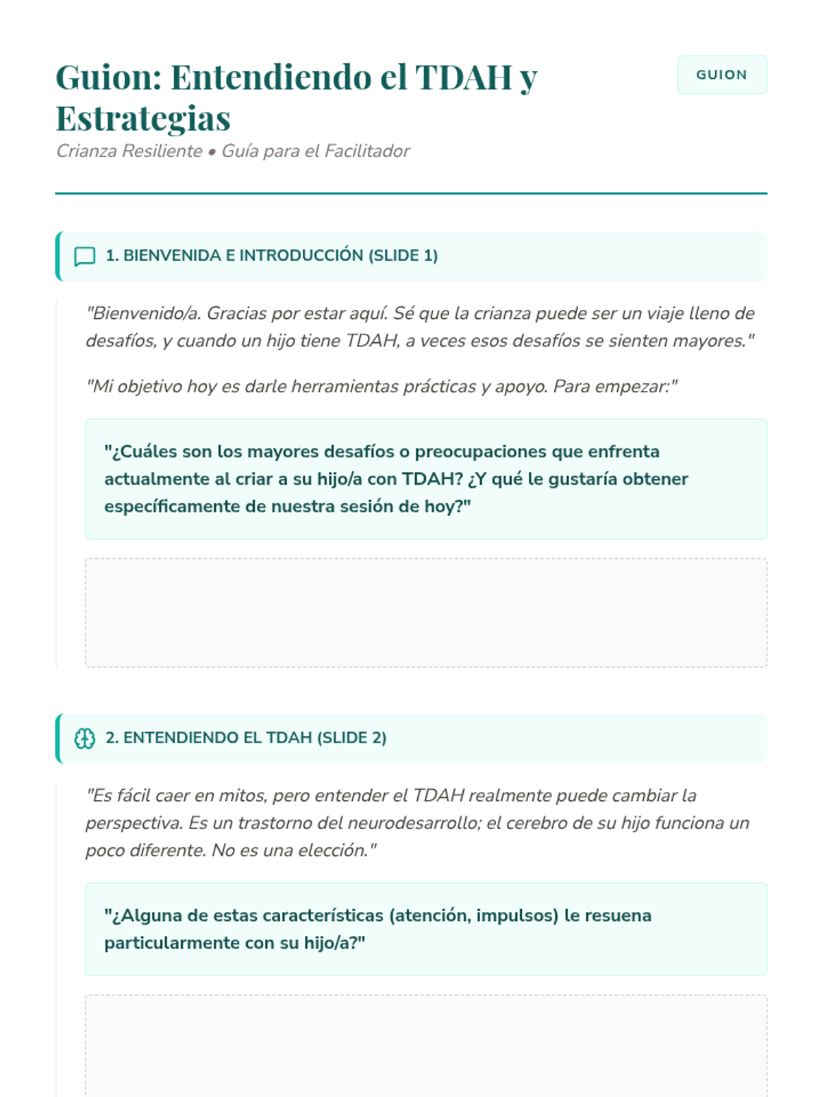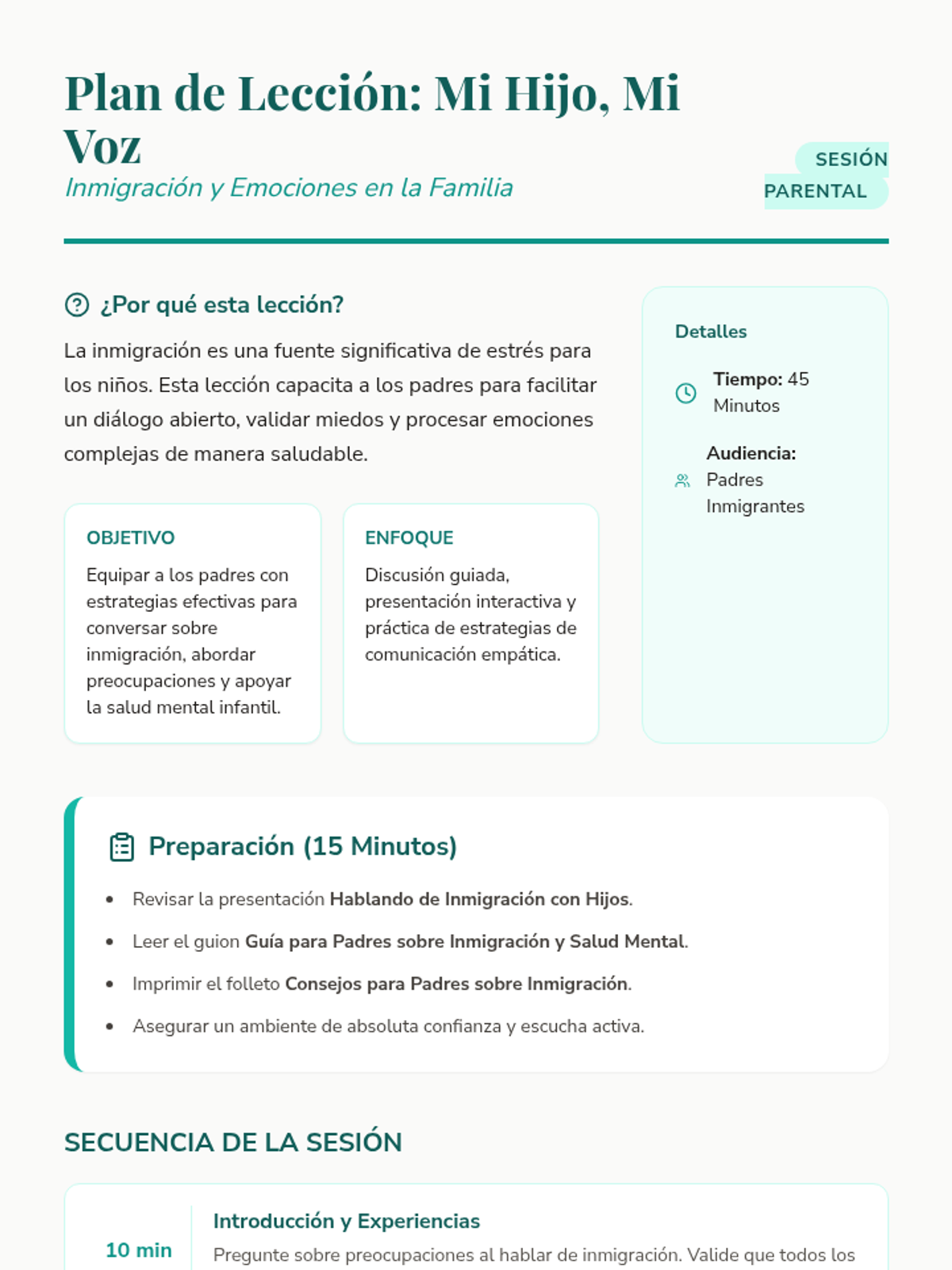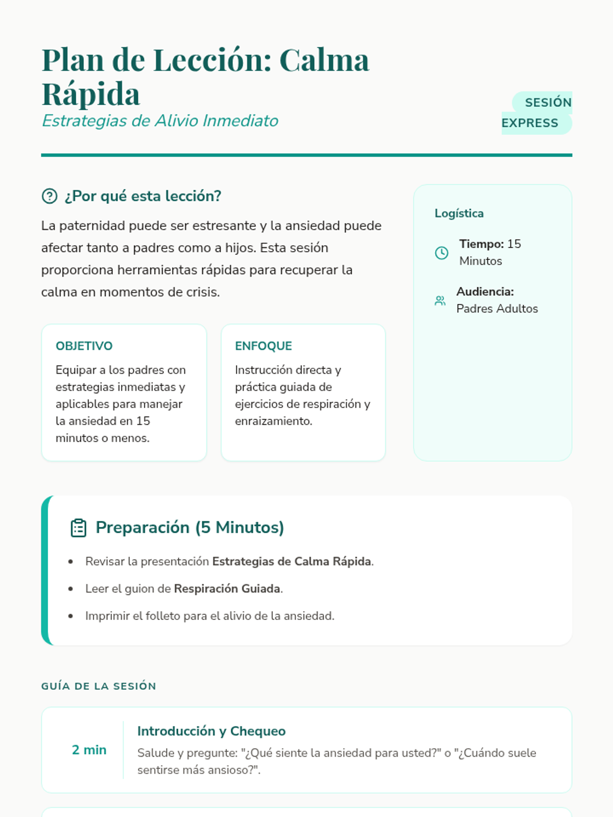 Una serie de sesiones de apoyo individual para padres que enfrentan desafíos específicos en la crianza, desde el perfeccionismo y el TDAH hasta la inmigración y el autocuidado. Cada lección proporciona herramientas prácticas y un espacio de validación emocional.