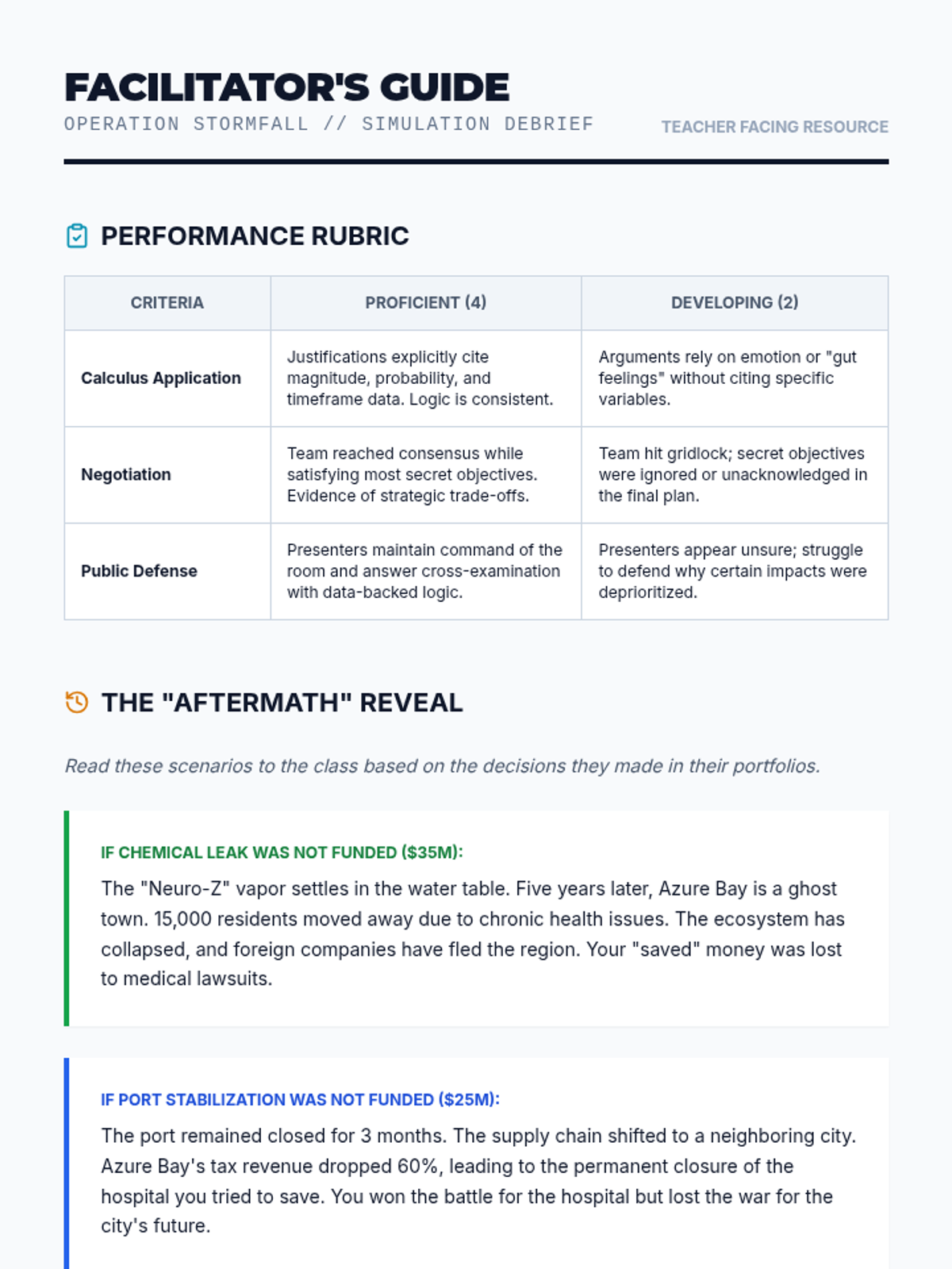 A high-stakes debate and public speaking unit where students act as a Crisis Response Team. They apply impact calculus (magnitude, probability, and timeframe) to navigate a fictional disaster, culminating in a strategic defense of their resource allocation decisions.