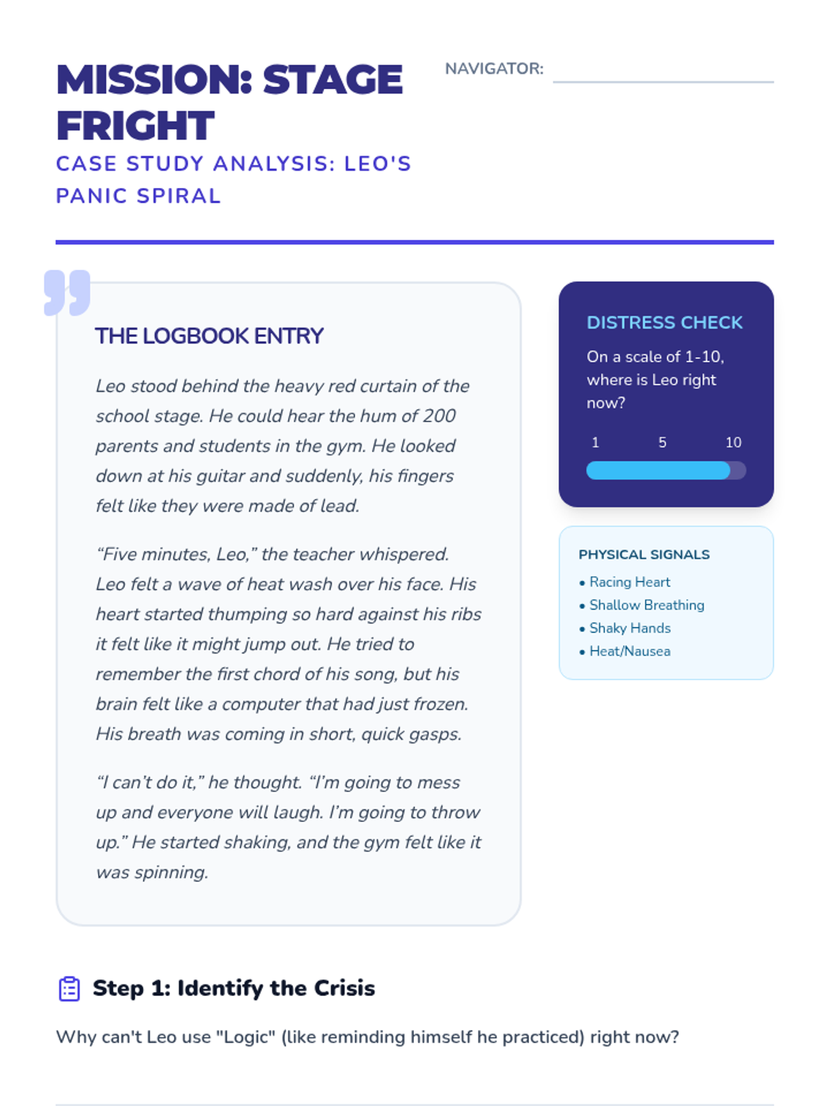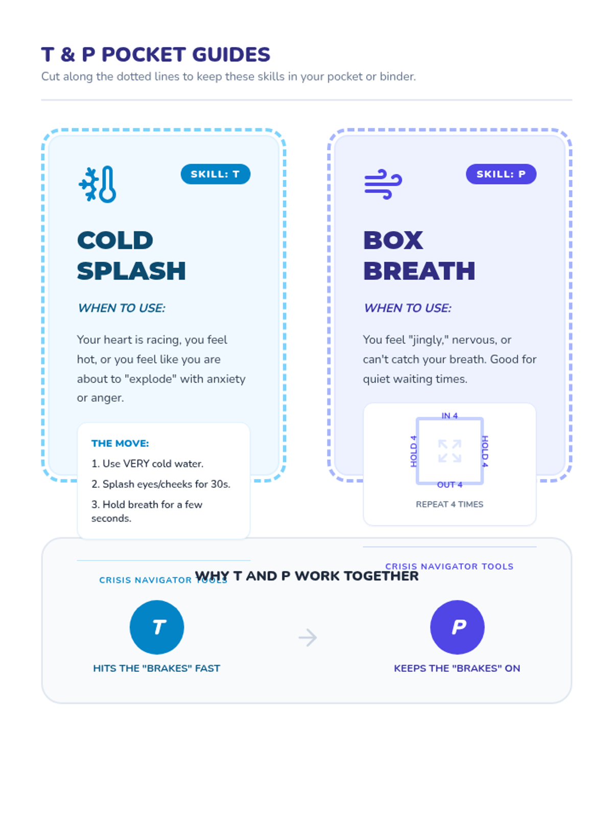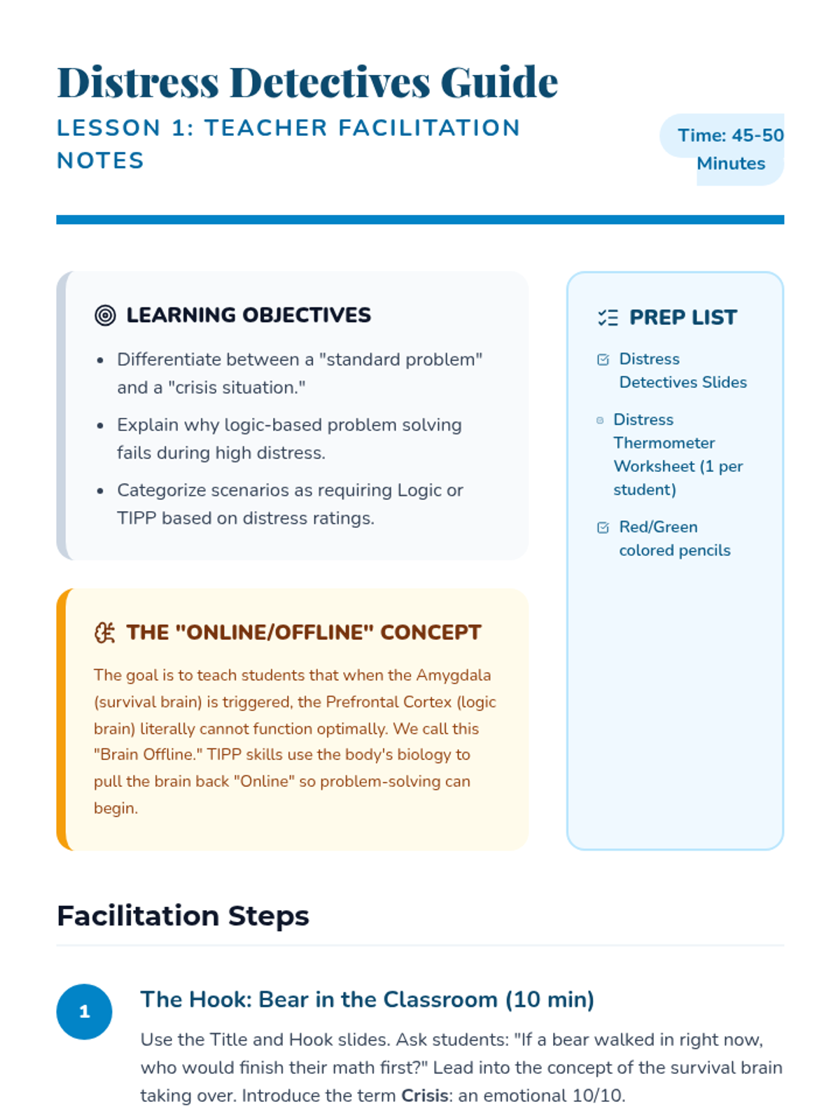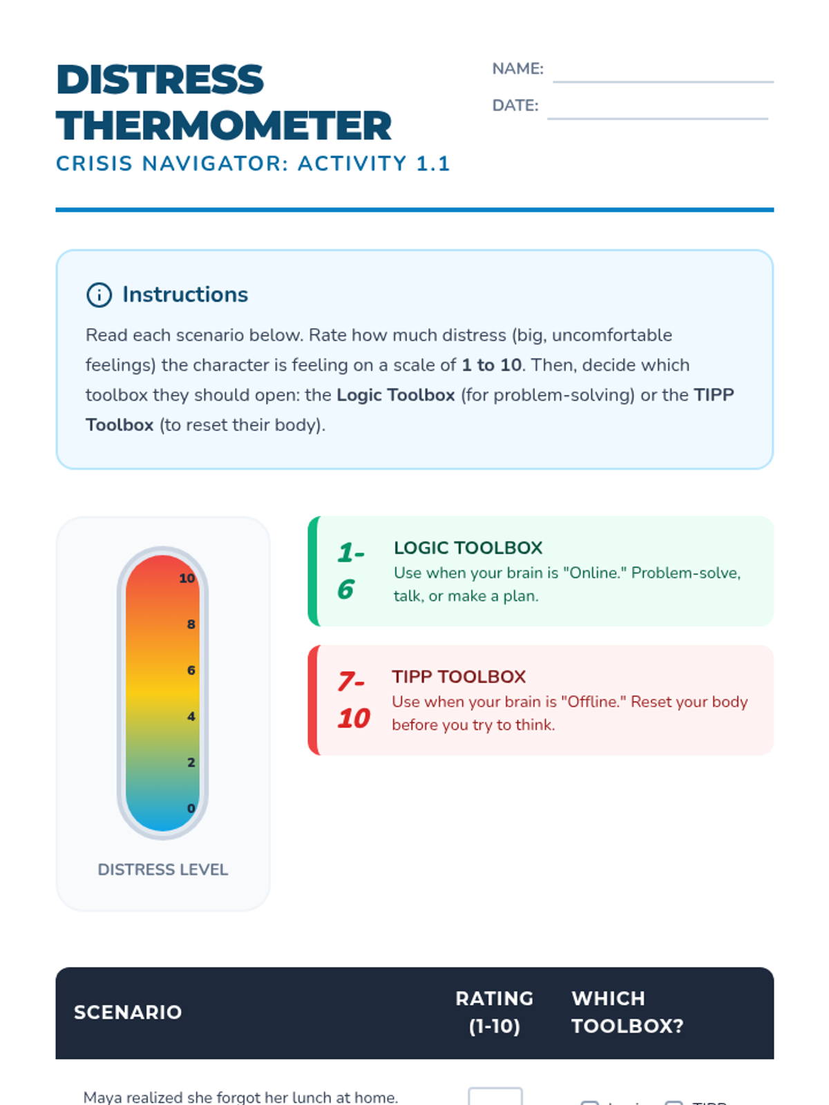 A 5-lesson sequence for 5th graders focused on applying DBT TIPP skills to real-life scenarios. Students move from identifying when a crisis requires physiological intervention to creating a personalized crisis management plan for their own triggers.