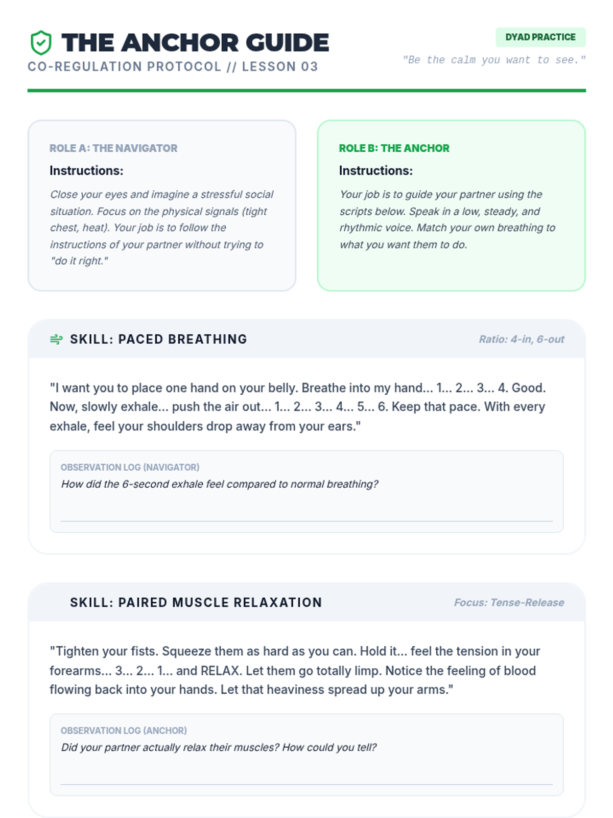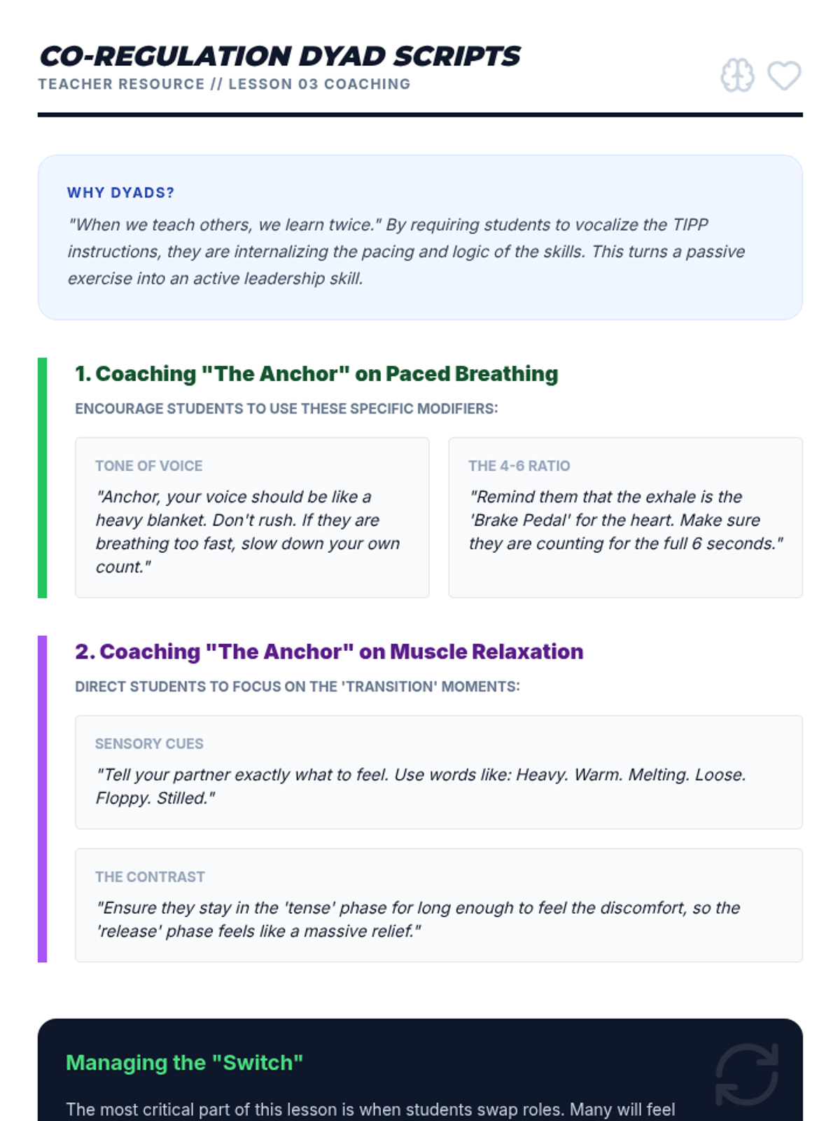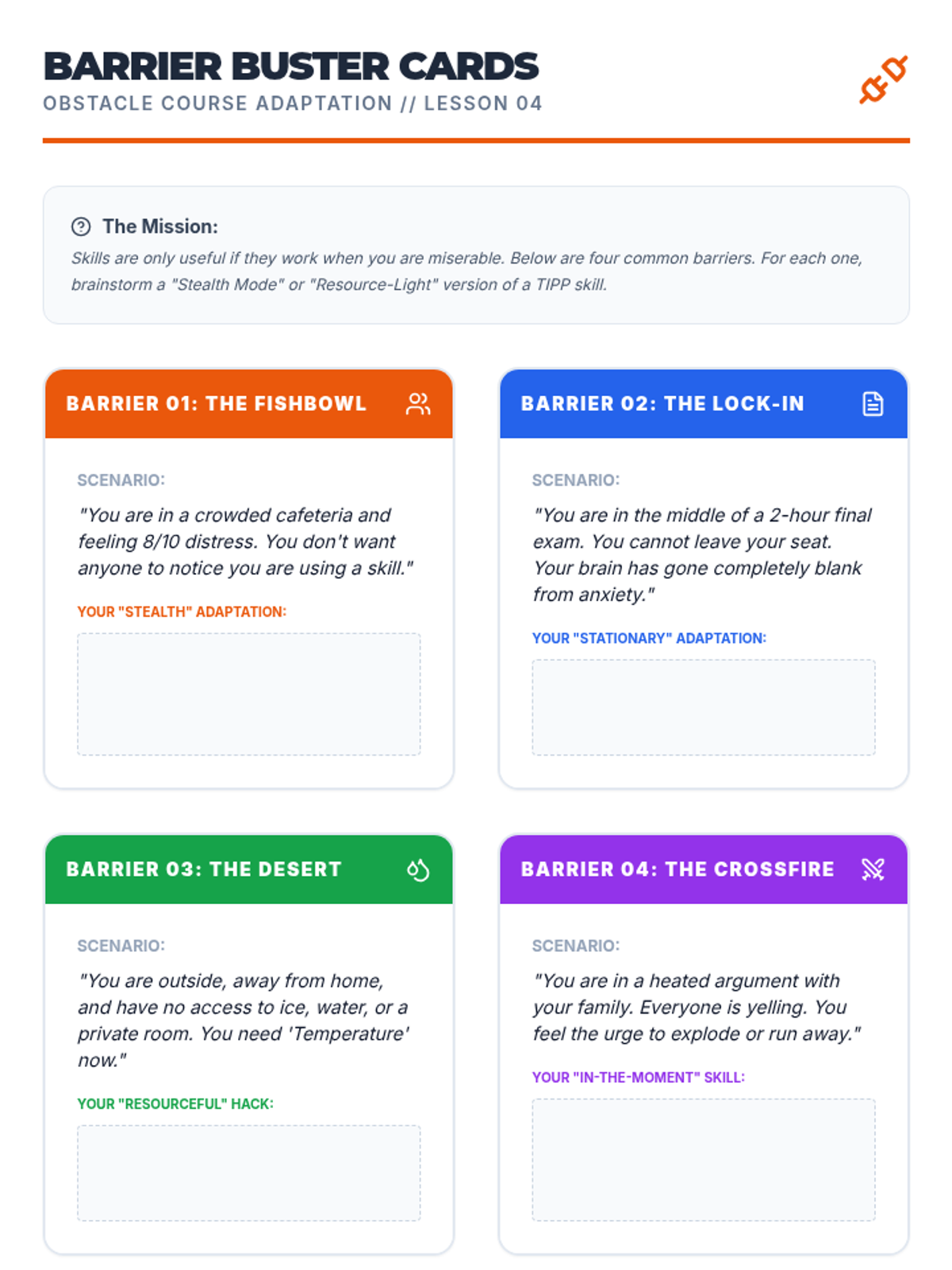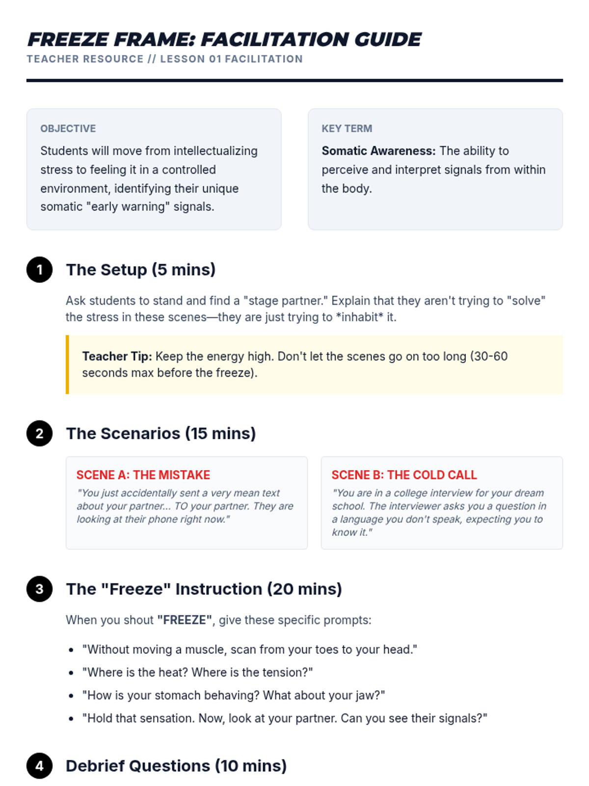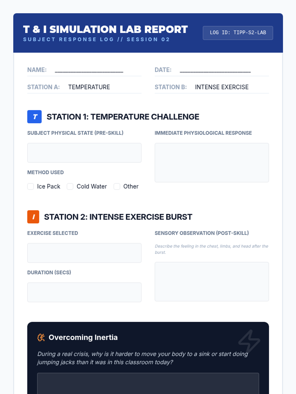 This sequence uses simulations and role-play to help 10th-grade students build muscle memory for TIPP crisis survival skills, focusing on reducing reaction time between distress and action.