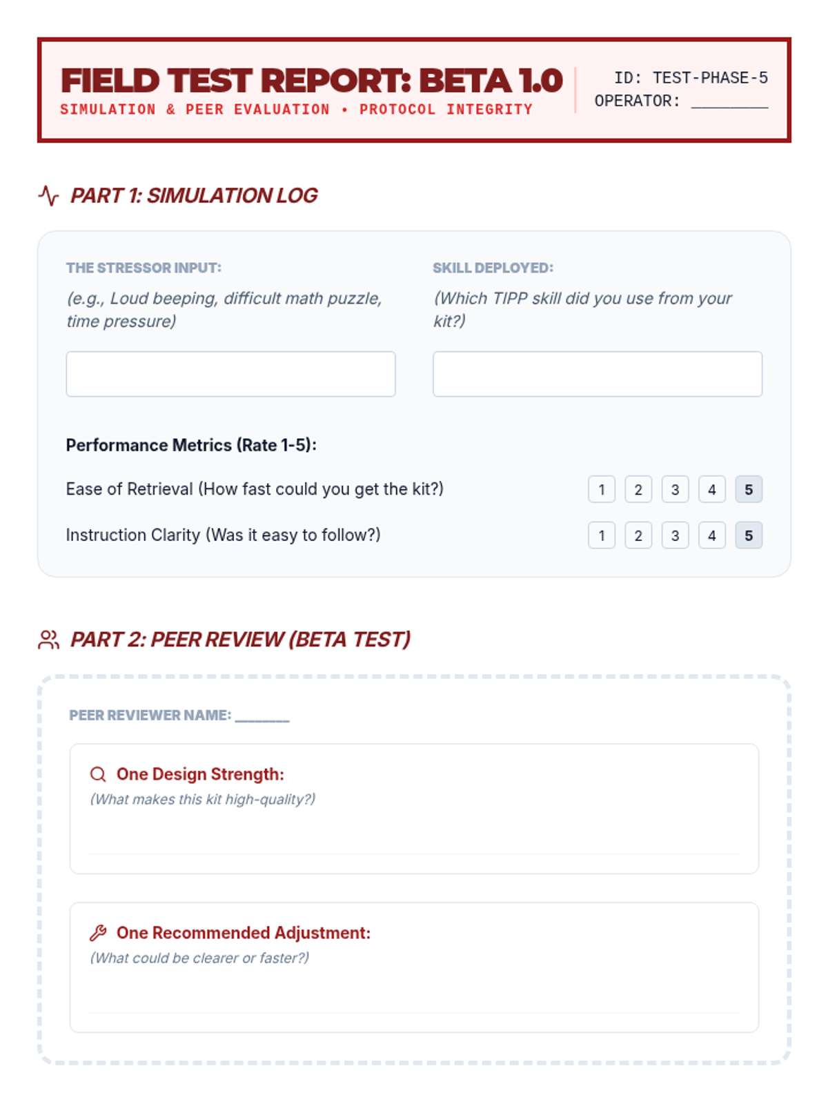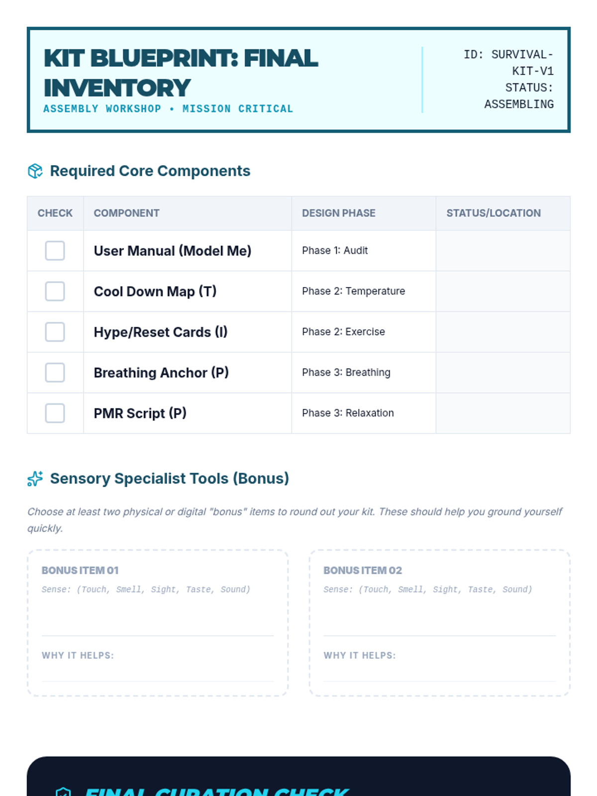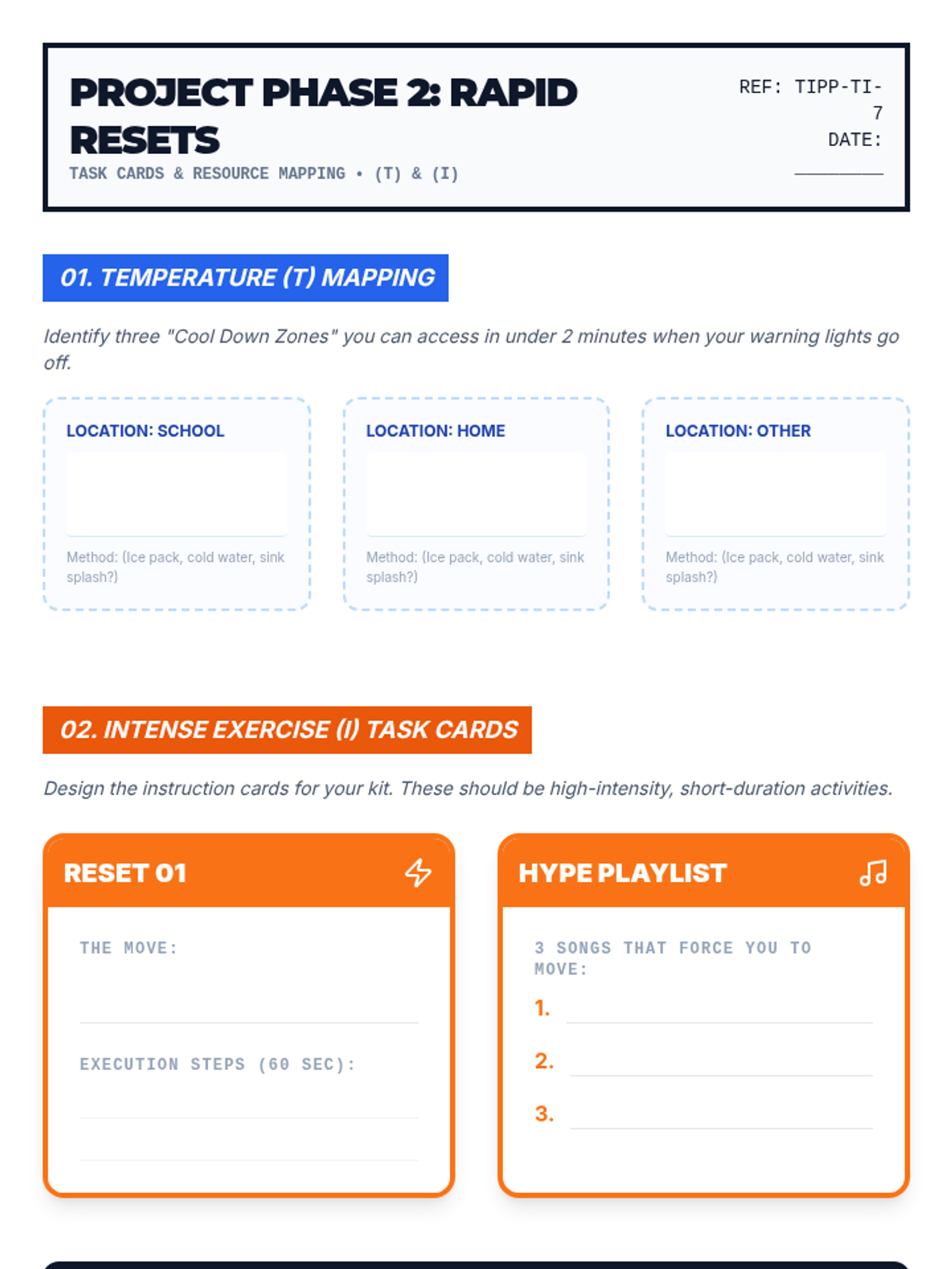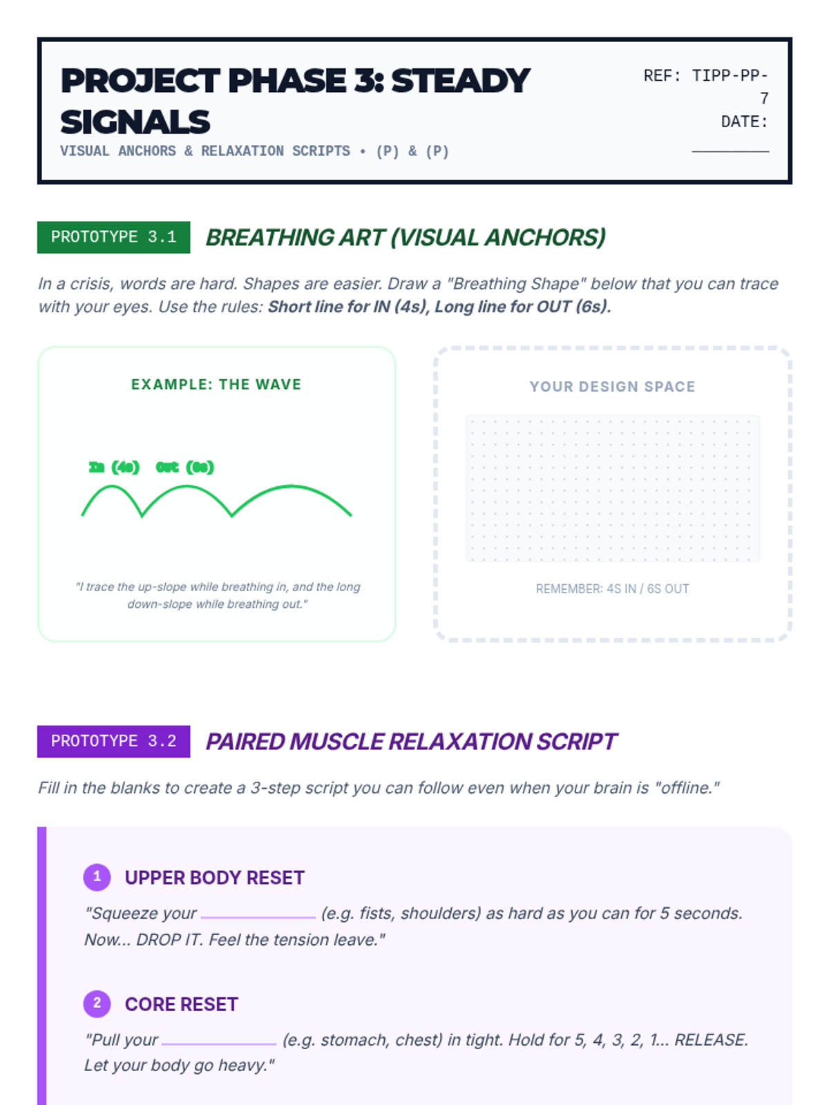 A project-based unit where 7th-grade students design and assemble personal 'Crisis Survival Kits' based on the TIPP skills (Temperature, Intense Exercise, Paced Breathing, and Paired Muscle Relaxation). Students move from self-audit to physical tool creation and final testing of their proactive mental health resources.