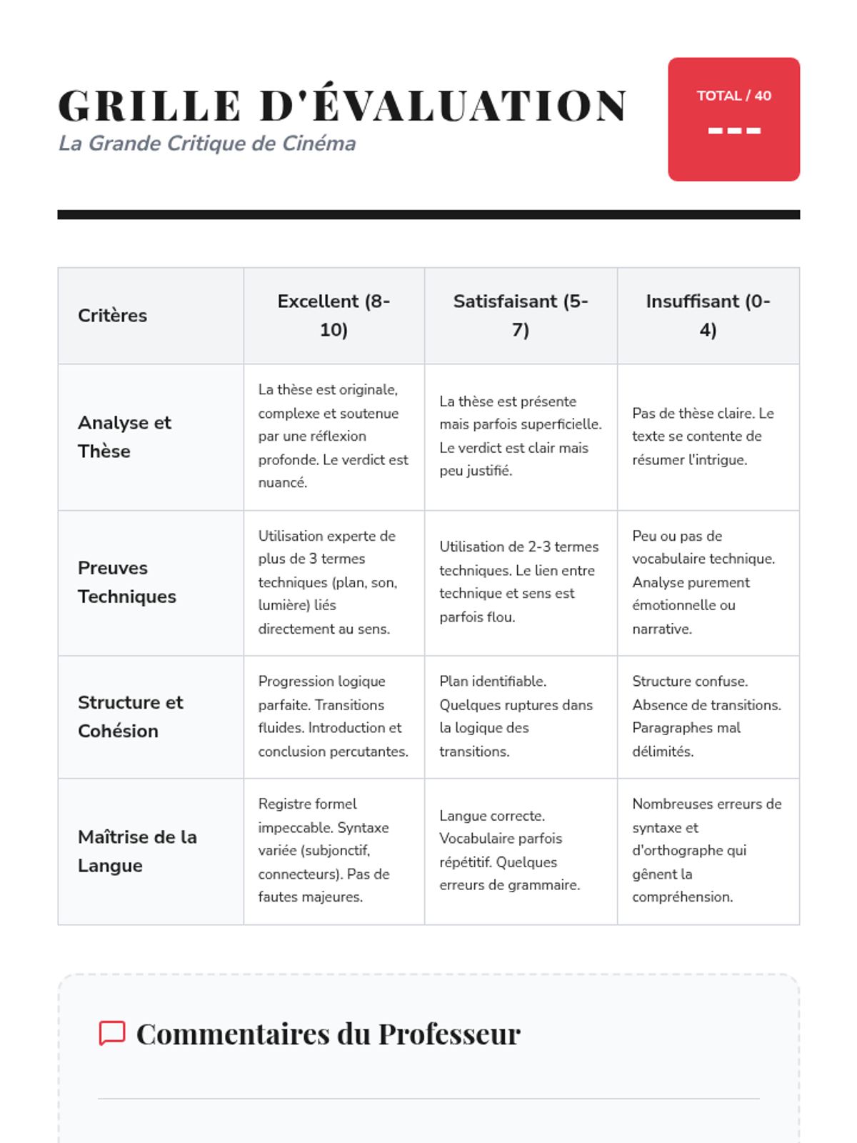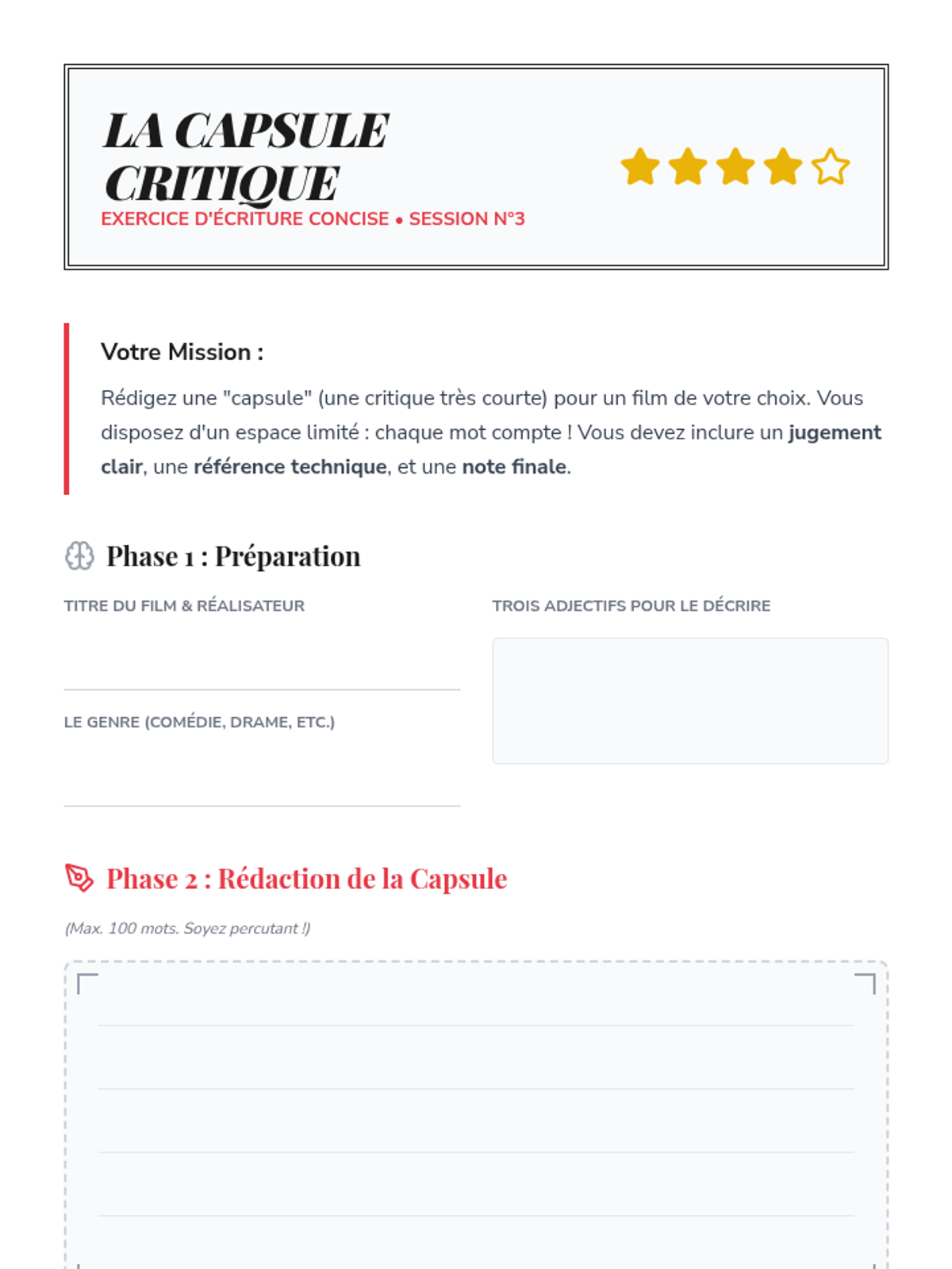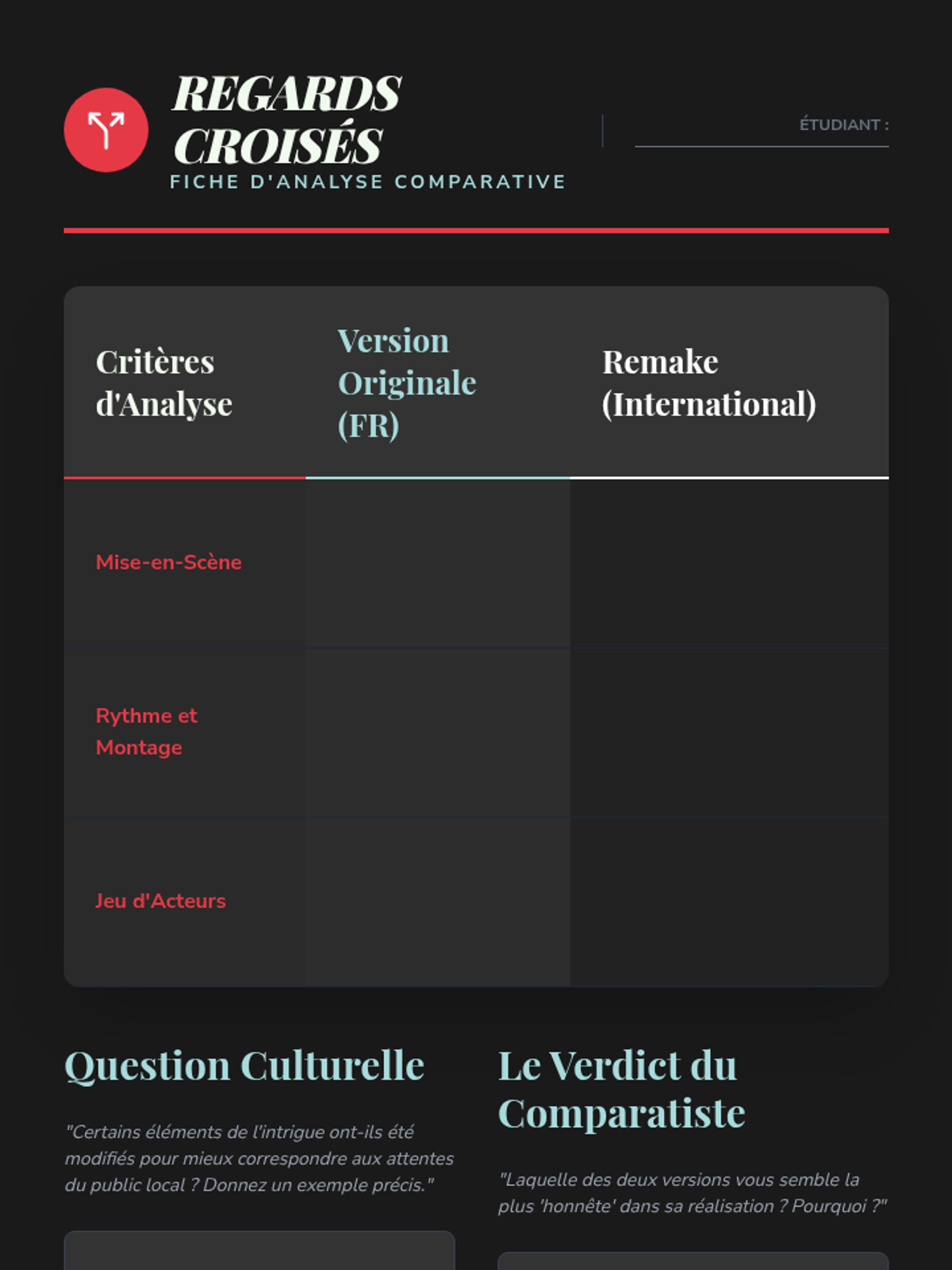 A sequence for 12th Grade Advanced French students to master the art of cinema critique. Students progress from learning technical film vocabulary to writing professional-grade film reviews and conducting comparative cultural analyses of French and international cinema.