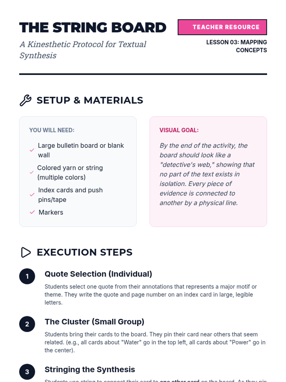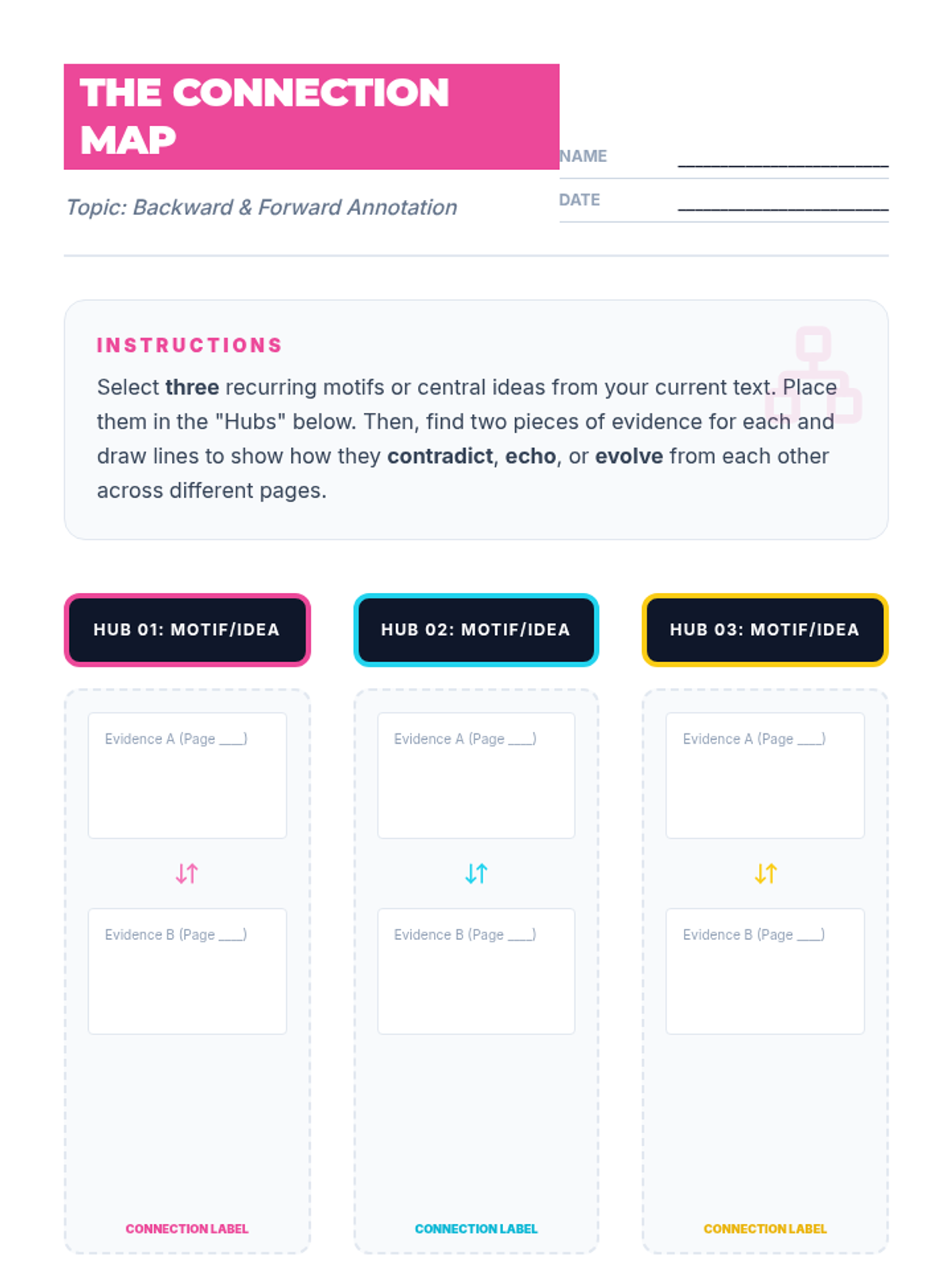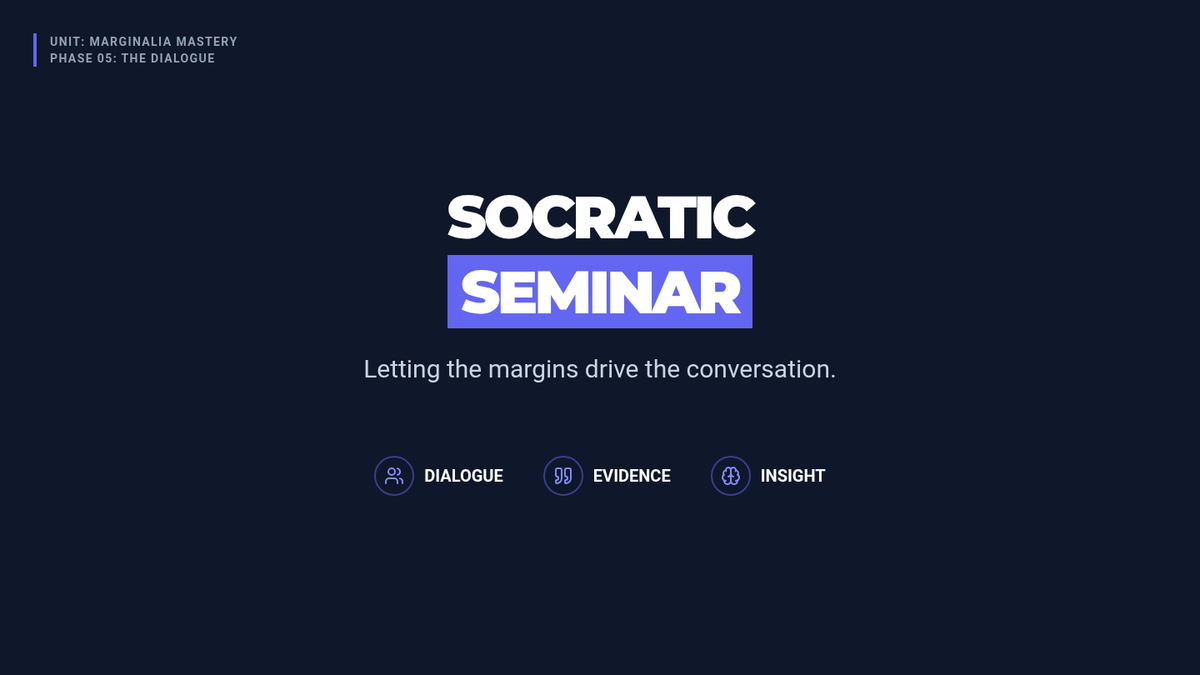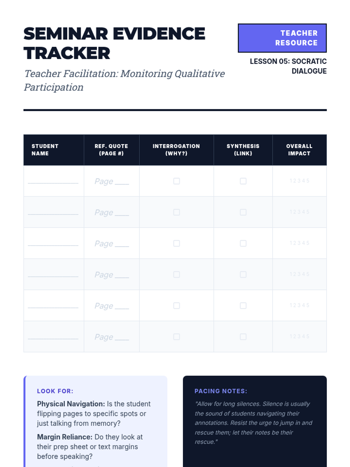 This sequence teaches 11th-grade students how to use annotation not just for recall, but as a critical tool for inquiry and rhetorical analysis. Students progress from basic summary to deep interrogation, preparing them for high-level academic discourse in a Socratic Seminar.
