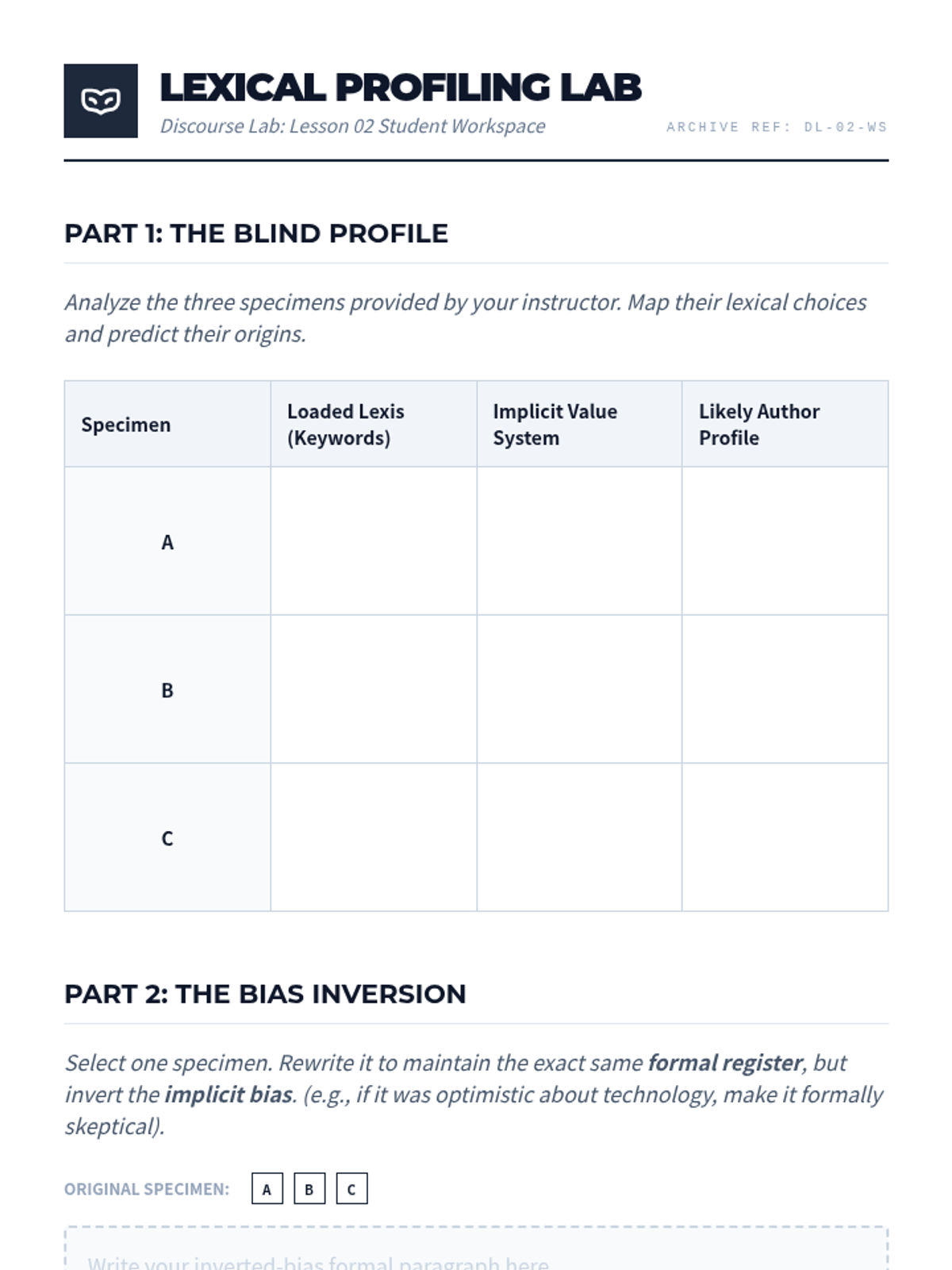 A high-level sequence for graduate students focusing on the critical evaluation of bias, subtext, and cultural nuance in complex English texts. Students develop the skills to interrogate 'objective' narratives and synthesize conflicting information.