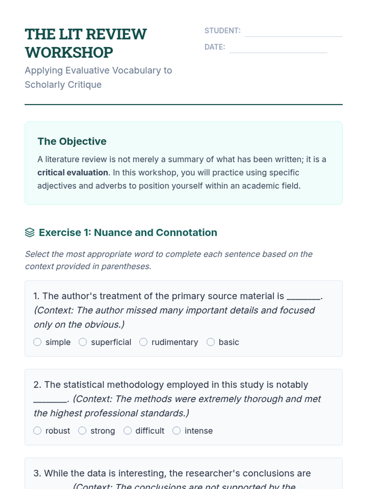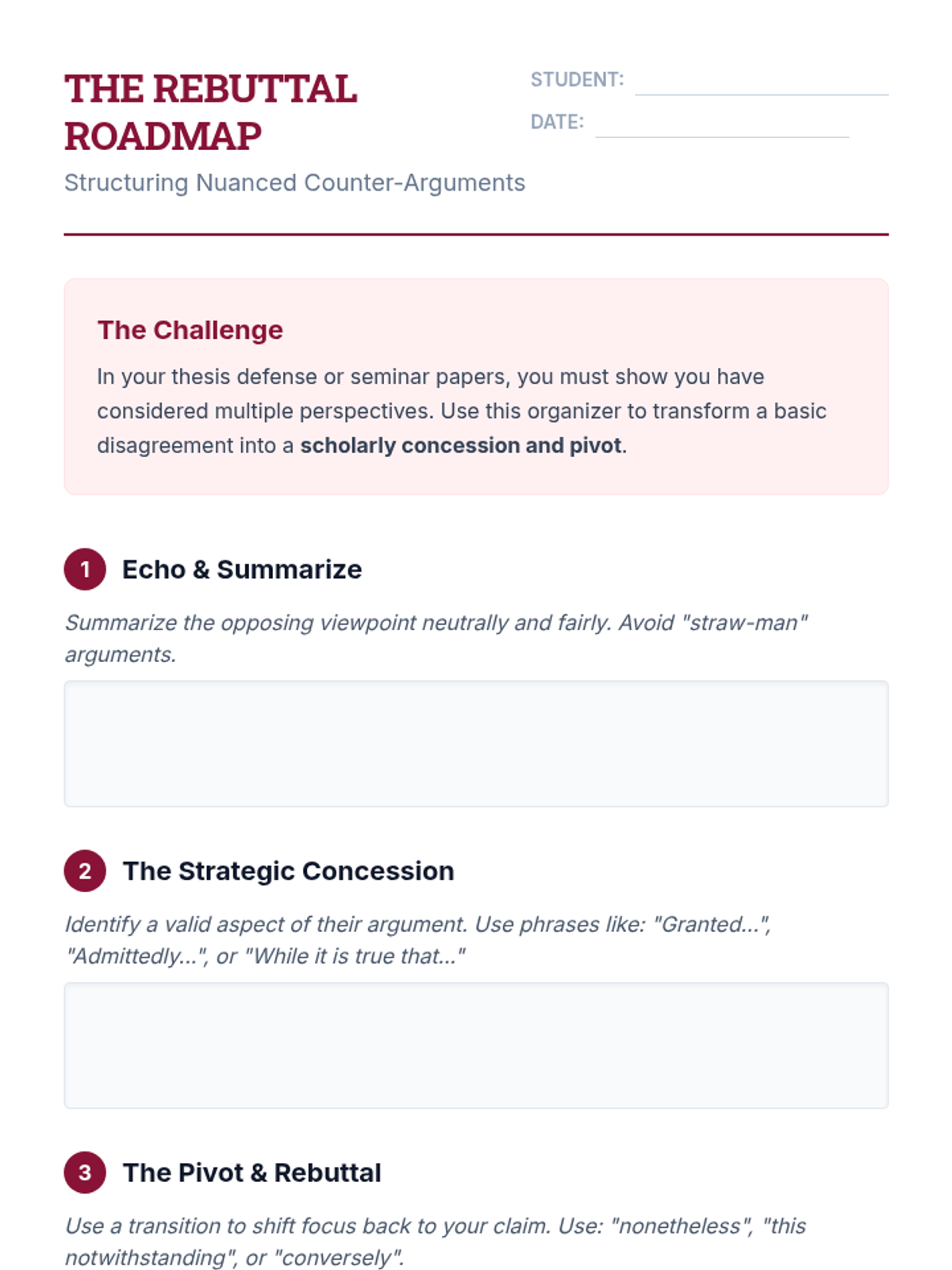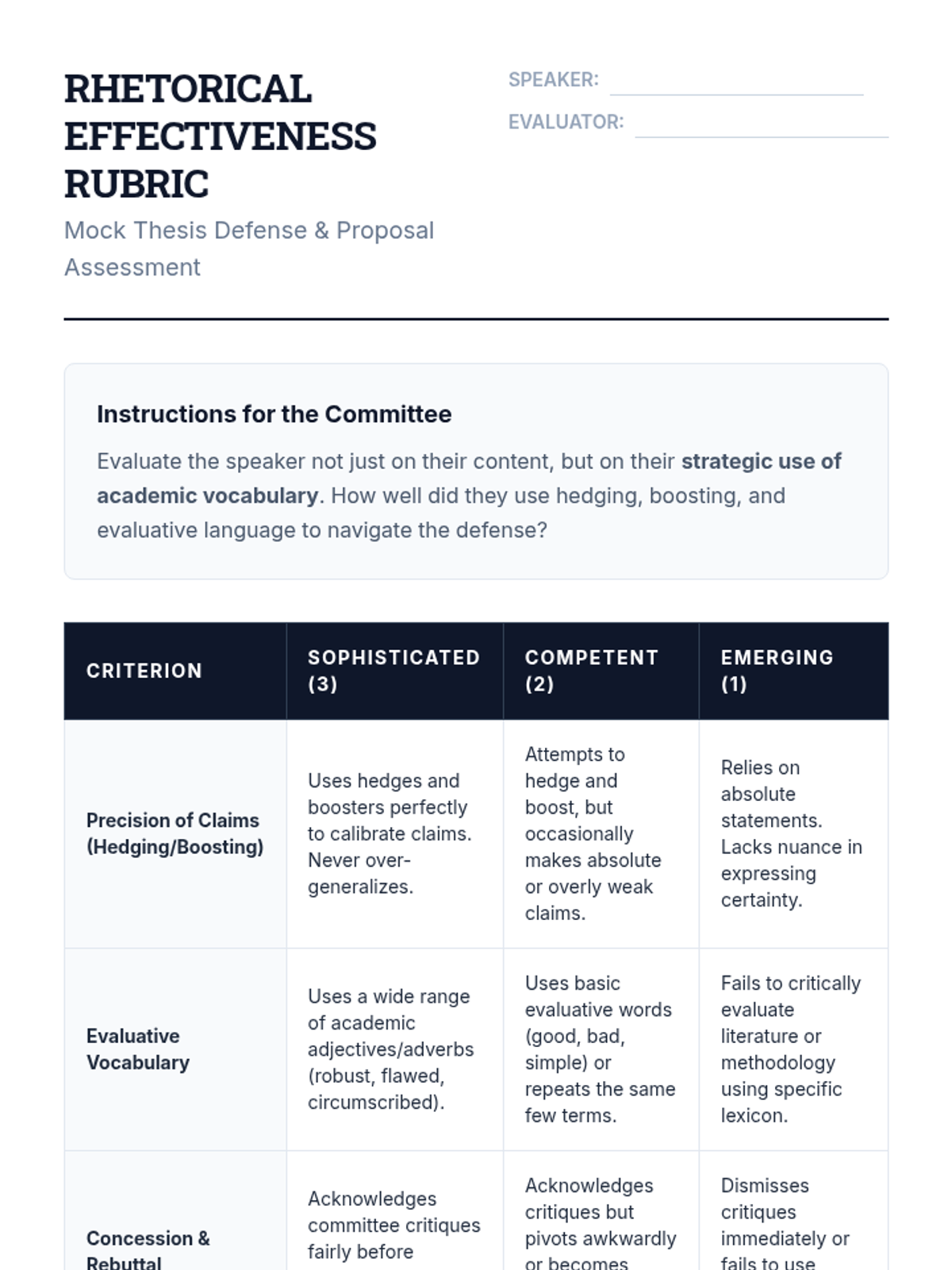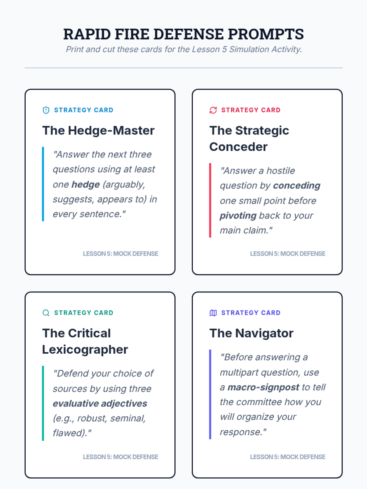 A comprehensive sequence for graduate students focusing on advanced academic vocabulary for critique, defense, and argumentation, moving from basic claims to sophisticated thesis-level discourse.